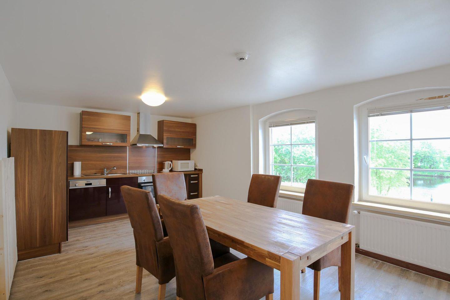 Außerdem gehören noch zwei Ferienwohnungen hinzu: „Buten und binnen“ ist die Ferienunterkunft für den gehobenen Anspruch mit zwei Schlafzimmern, Küche, Essbereich mit Kaminofen, 2 Bädern und einer großen Terrasse mit Blick auf die Eider.