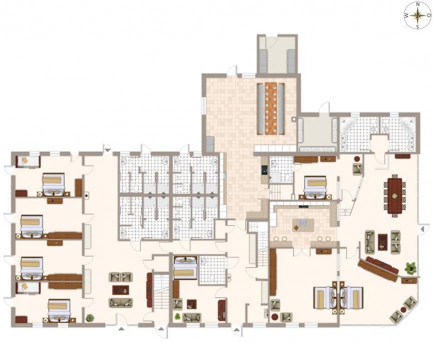 Unsere Lodge bietet Ihnen 10 Zimmer: sechs im Erdgeschoss mit Gemeinschaftsbädern (Männer und Frauen getrennt) und vier Zimmern mit Duschbad im Obergeschoss. In der Gemeinschaftsküche und dem Speiseraum können Sie sich selbst verpflegen. Der große Wohnraum mit Flachbild-TV vor den Zimmern im Erdgeschoss bietet auch größeren Gruppen genügend Freiraum.
