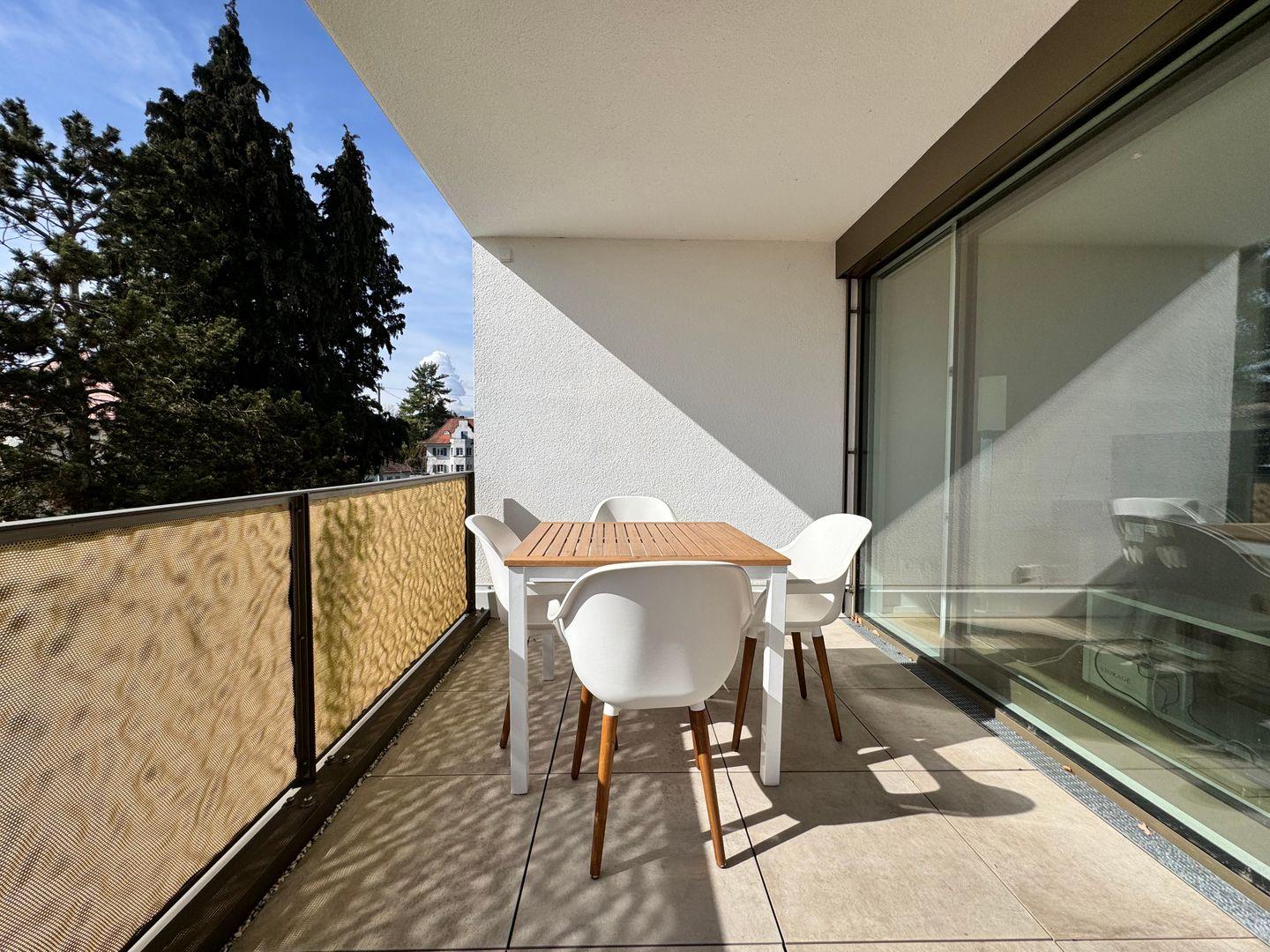 Willkommen in unserer traumhaften Ferienwohnung am Strandbad in Friedrichshafen! Diese moderne Unterkunft befindet sich nur etwa 200 Meter vom glitzernden Bodensee entfernt und bietet einen Teil-Seeblick direkt vom geräumigen Balkon aus.