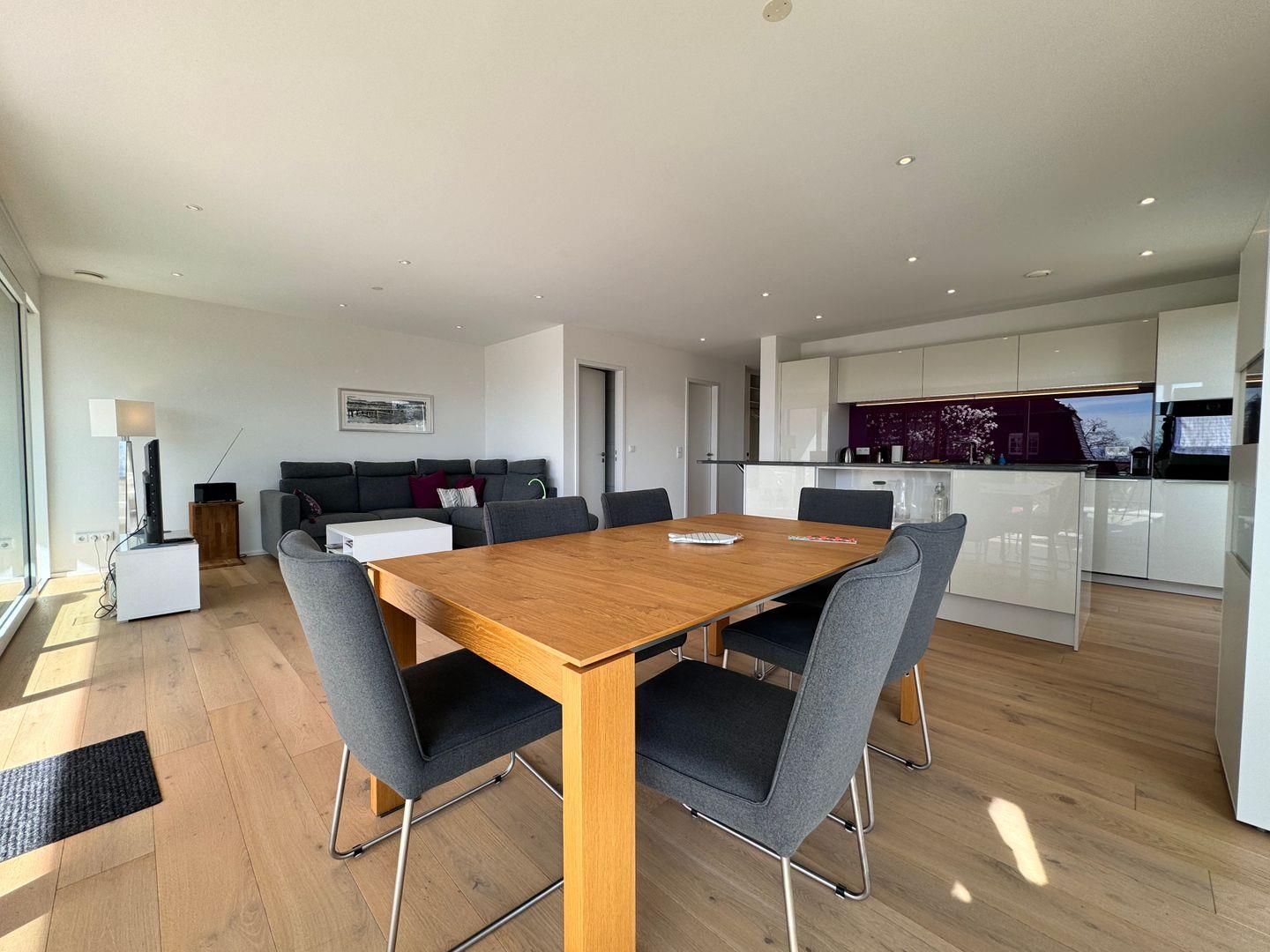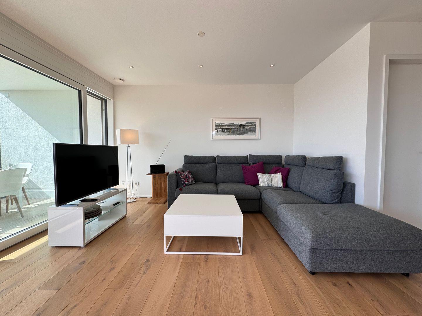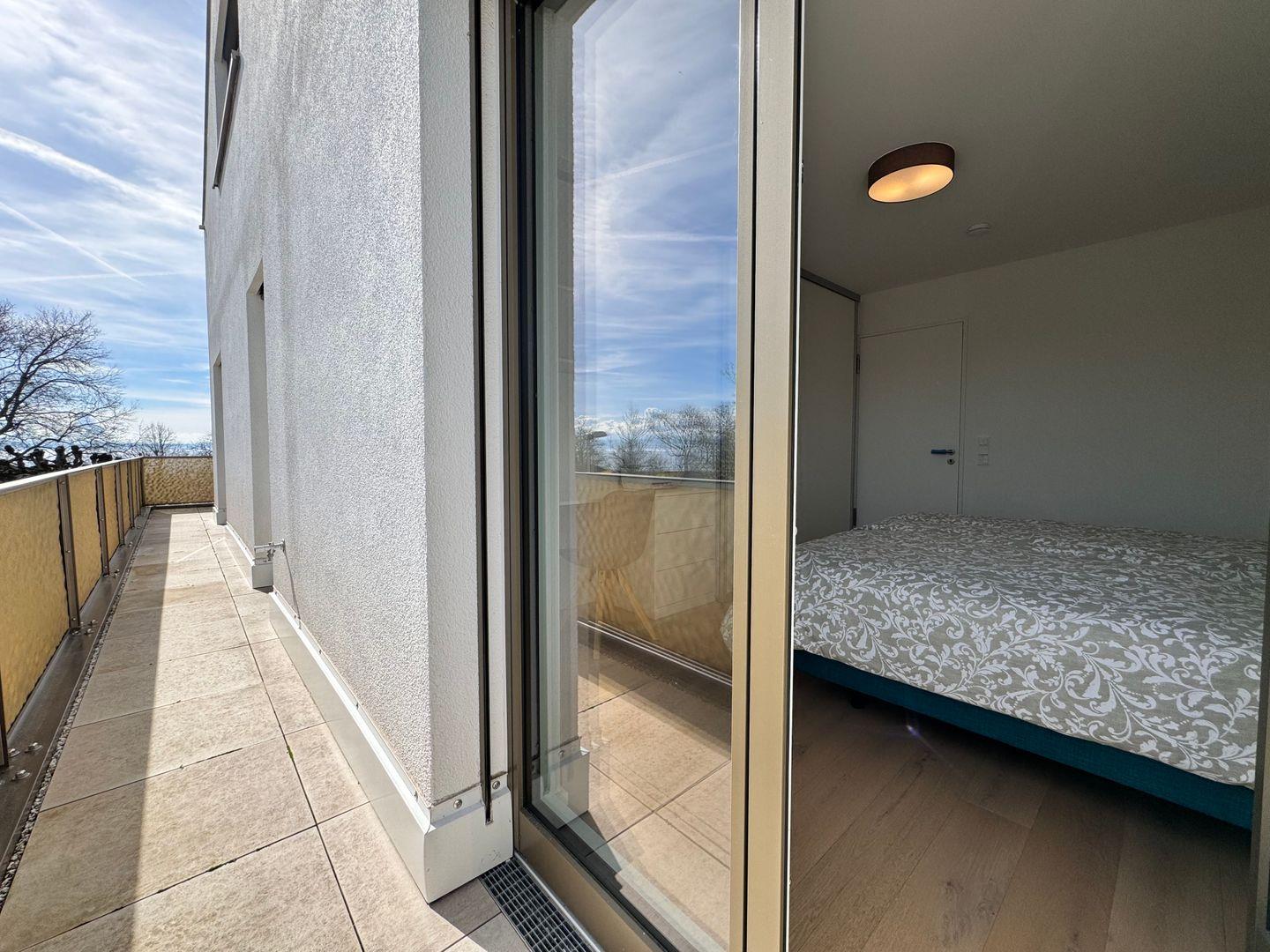 Willkommen in unserer traumhaften Ferienwohnung am Strandbad in Friedrichshafen! Diese moderne Unterkunft befindet sich nur etwa 200 Meter vom glitzernden Bodensee entfernt und bietet einen Teil-Seeblick direkt vom geräumigen Balkon aus. Mit zwei gemütlichen Schlafzimmern und ebenso vielen Badezimmern ist diese Wohnung perfekt für Familien oder Freunde, die Komfort und Privatsphäre schätzen. Die voll ausgestattete Küche lädt zum gemeinsamen Kochen ein, während der großzügige Wohnbereich mit seinem stilvollen Ambiente zum Entspannen und Genießen einlädt. Genießen Sie nicht nur die idyllische Lage am Strandbad in Friedrichshafen, sondern auch die Vielseitigkeit dieser Ferienwohnung, die sich perfekt für geschäftliche oder Familienaufenthalte eignet. Egal, ob Sie die Gegend erkunden oder sich einfach am Seeufer entspannen möchten, diese Unterkunft bietet Ihnen den idealen Ausgangspunkt für Ihre Unternehmungen. Freuen Sie sich auf eine stilvolle und komfortable Unterkunft, die sowohl Erholung als auch Produktivität ermöglicht und Ihnen unvergessliche Momente am Bodensee beschert.