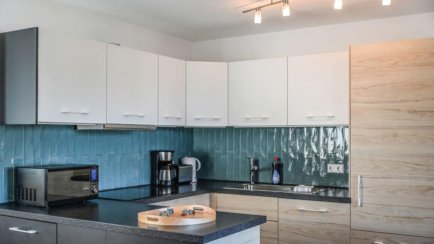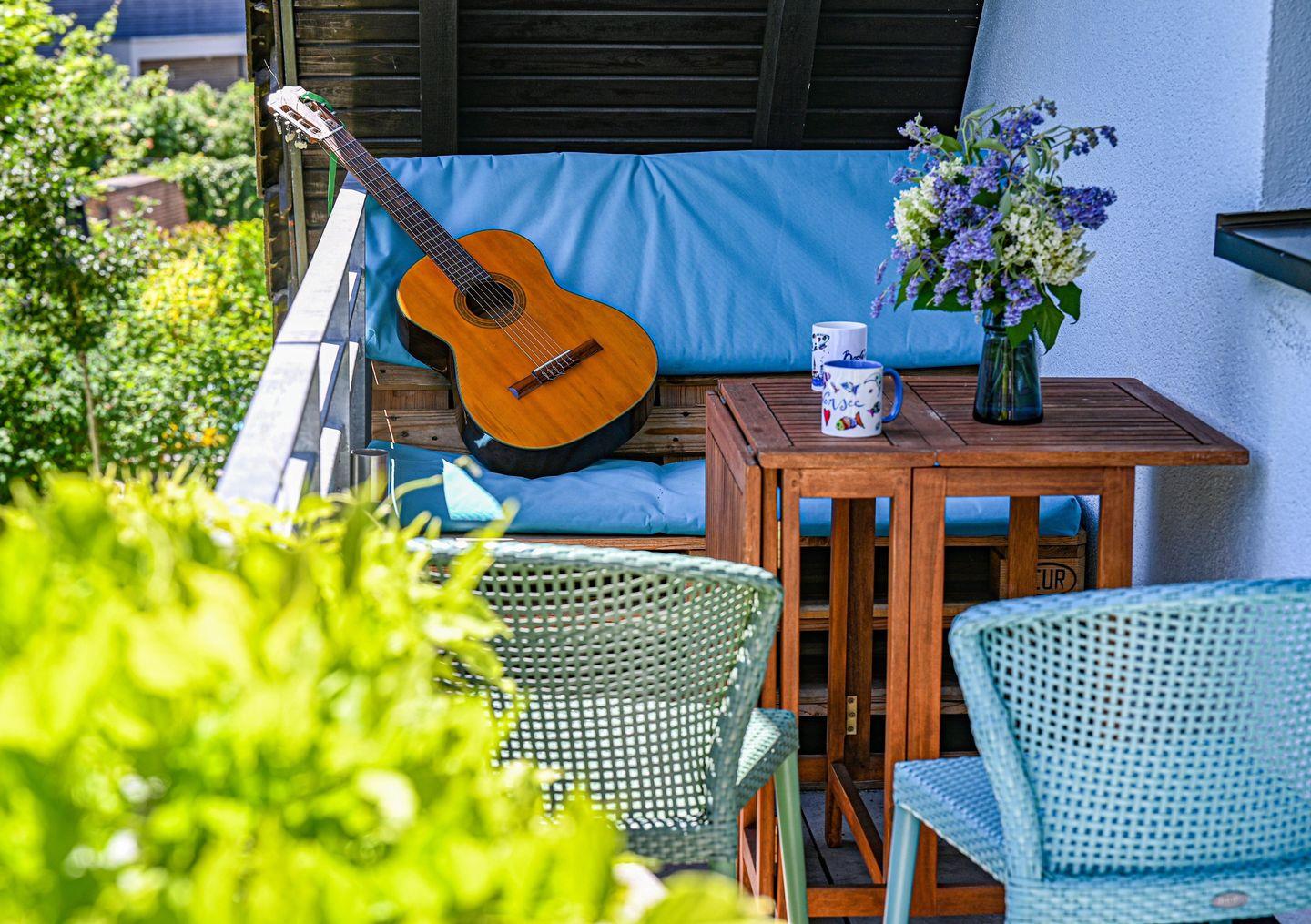Die modern eingerichtete Ferienwohnung für bis zu 8 Personen liegt im 1. OG und DG. Es gibt ein abgeschlossenes Schlafzimmer mit 180er Bett im OG, ein Schlafzimmer mit Doppelbett sowie ein weiteres mit