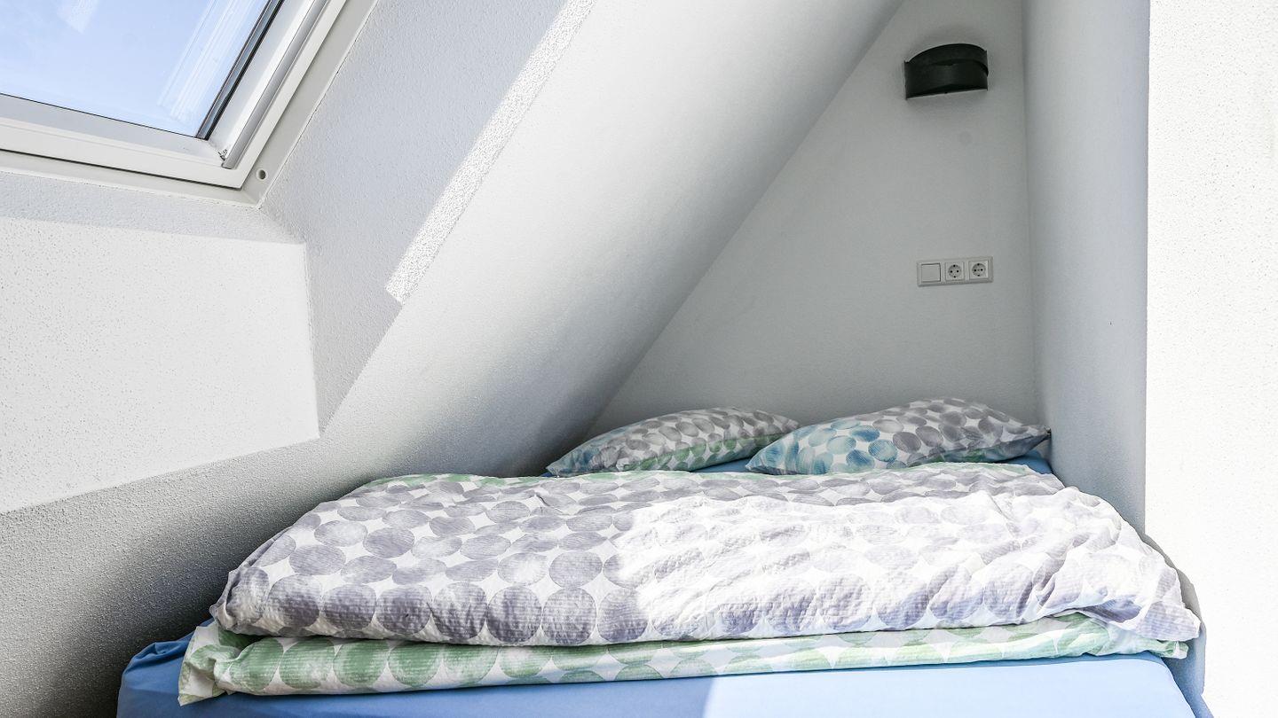 140er Galeriebett im DG. Ergänzend zum Bad, ist ein zustätzliches WC vorhanden.