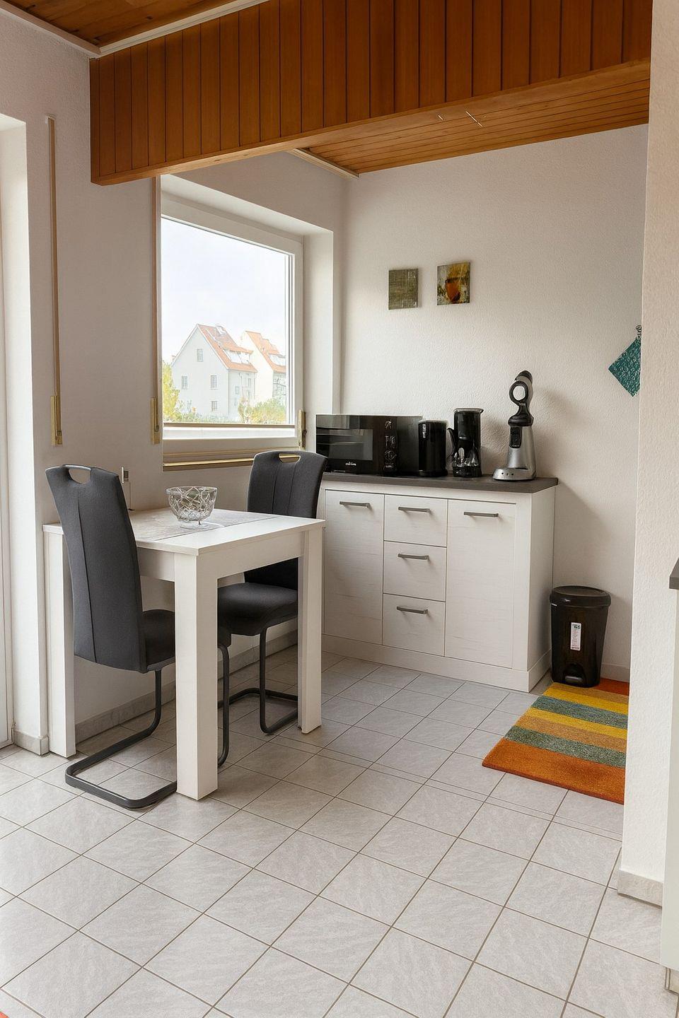 Willkommen in der Ferienwohnung 9 im Haus Naturzeit in Friedrichshafen-Manzell – nur wenige Gehminuten vom Bodensee entfernt. Die ca. 45 m² große Nichtraucherwohnung bietet einen hellen Wohn- und Essbereich mit TV und komplett ausgestatteter Küche. Das offene Schlafzimmer mit Doppelbett sorgt für gemütlichen Komfort, das moderne Bad verfügt über Dusche und WC.