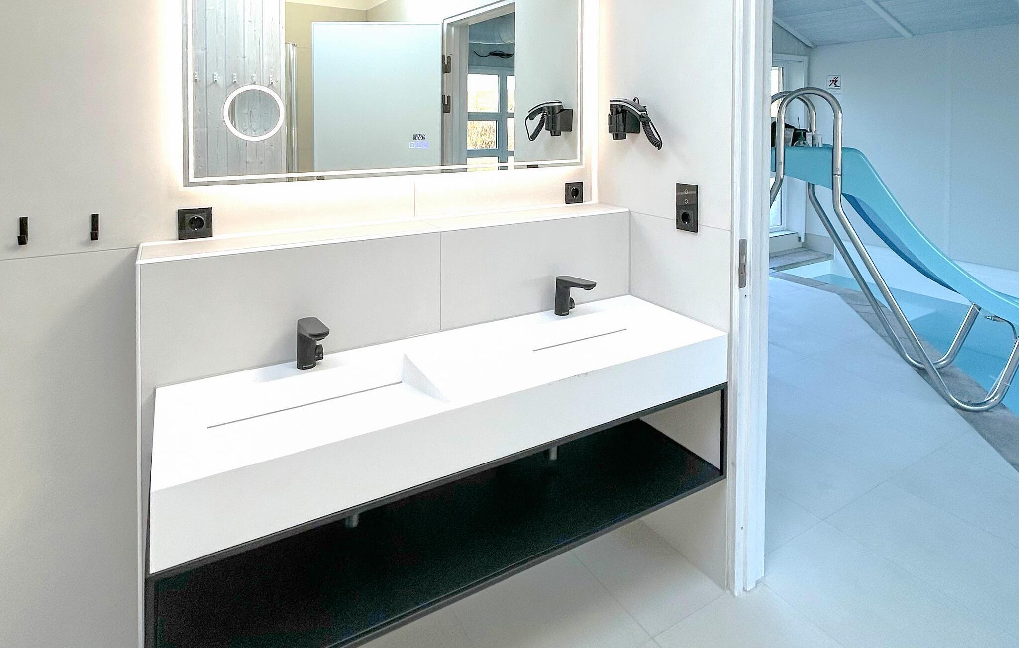 Erleben Sie Badevergnügen zu jeder Jahreszeit: Der große Pool mit Gegenstromanlage und Rutsche für die Kinder sorgen für Spaß für Groß und Klein. Der Wellnessbereich verfügt über eine Sauna und Dampfsauna. Per Knopfdruck können Sie verschiedene Badeformen genießen und Ihr persönliches Wohlfühlklima selbst bestimmen.