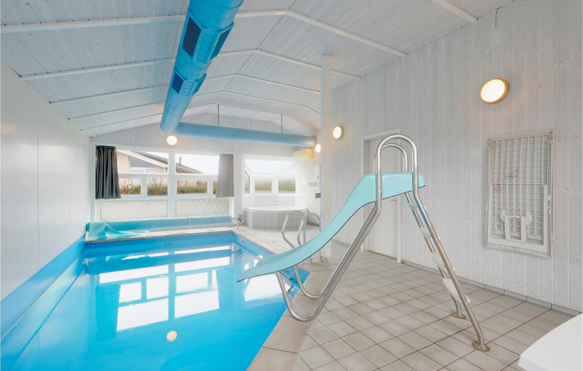 In diesem Ferienhaus können Sie etwas erleben! Hier wird Ihnen etwas geboten, wofür man sonst oft kilometerweit fahren muss: Ihr eigenes Schwimmbad! Und sie können es erreichen, ohne dass das Haus auch nur einen Schritt verlassen zu müssen. Vom Wohnzimmer aus sind es nur einige wenige Schritte bis zu Ihrem eigenen Badeparadies: der Pool verfügt sogar über eine eigene Wasserrutsche und einen kleinen, abgetrennten Kinderbereich. Da gibt's Badevergnügen bei jedem Wetter und zu jeder Jahreszeit. Es kann nach Herzenslaune geplanscht, gerutscht und geschwommen werden. Und wenn es dann doch entspannter zugehen soll, so wartet direkt neben dem Pool ein großzügiger Whirlpool, in dem 5-7 Personen Platz finden.
