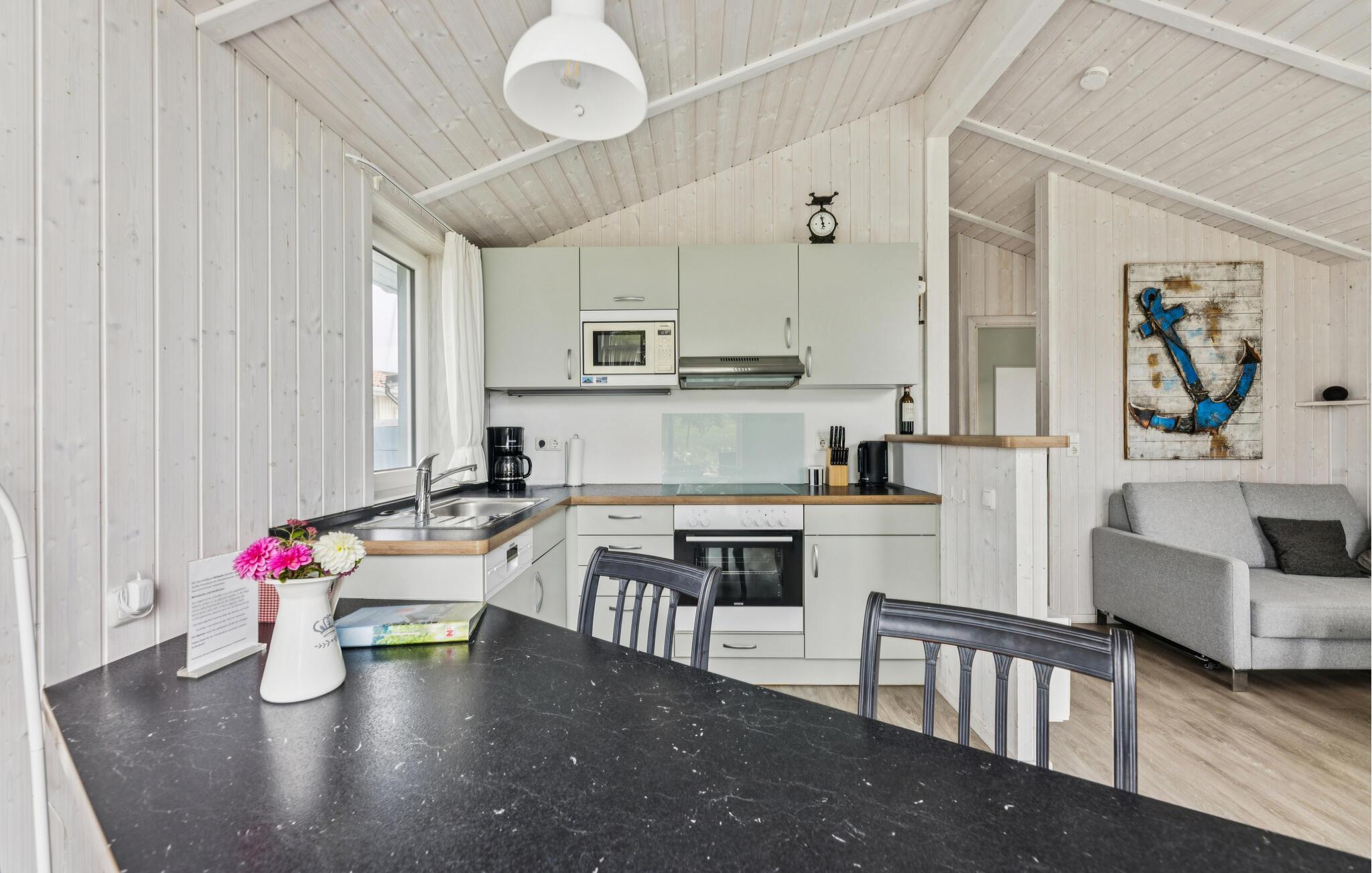 Die voll ausgestattete offene Küche ist ideal für gemütliche Kochrunden im Kreise Ihrer Lieben. Ihre eigene Terrasse lädt zu langen Sonnenbädern, Grillabenden oder einem ausgedehnten Frühstück mit duftenden Brötchen ein. Dank eines Schlafsofas im Wohnzimmer bietet das Haus Platz für bis zu sechs Personen. Auch an die allerkleinsten wurde gedacht, denn ein Kinderbett und ein Kinderstuhl stehen kostenlos zur Verfügung, außerdem gibt es einen Strandkorb.