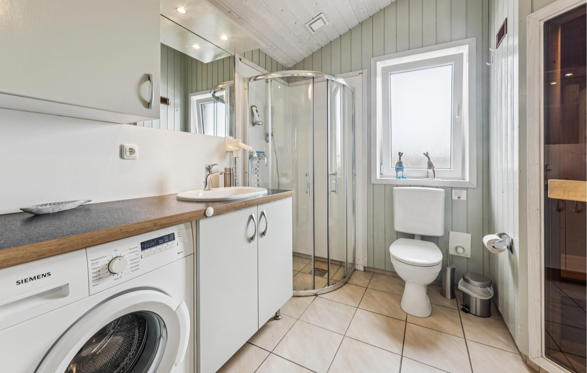 Gerade für die kältere Jahreszeit ist das Haus ideal, denn im Badezimmer erwartet Sie ihre ganz private Sauna, um sich nach einem Tag an der frischen Luft wieder richtig aufzuwärmen. Anschließend können Sie es sich auf dem Sofa gemütlich machen und den Feuerschein des Kamins im Wohnzimmer genießen.
