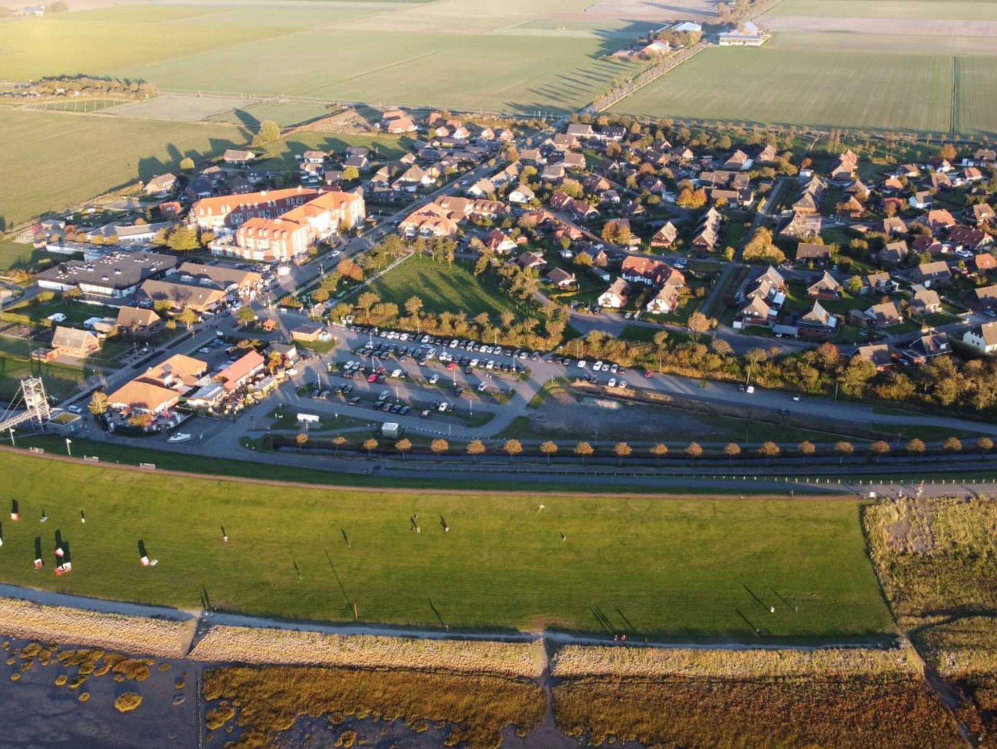 Diese Ferienwohnung liegt circa 300 Meter hinter dem Deichabschnitt des Hauptstrandes von Friedrichskoog-Spitze in einer Nebenstraße mit eigenem Parkplatz und Wiese.