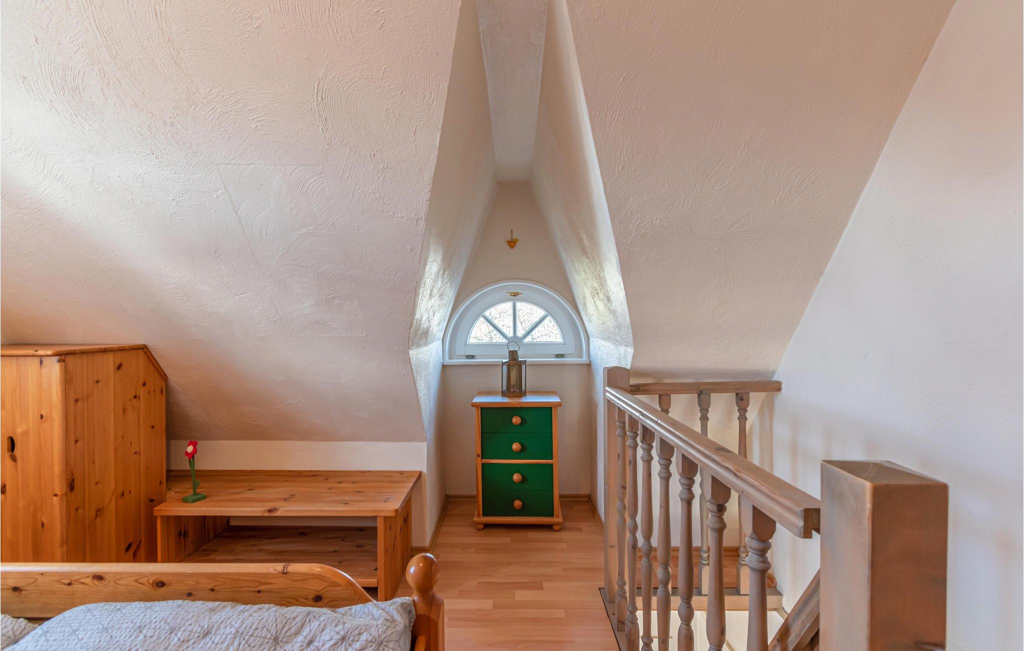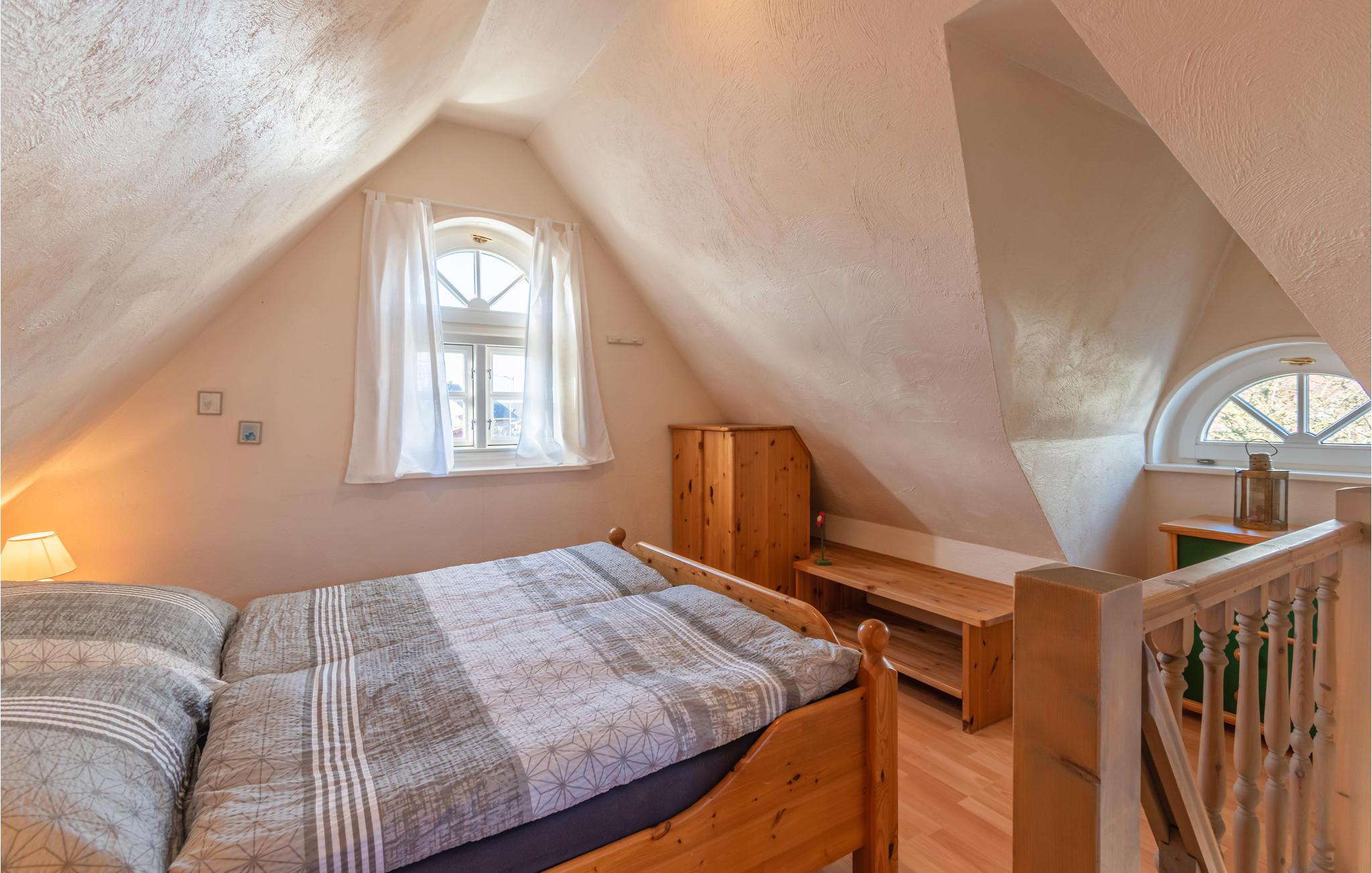 Im Inneren des Hauses erwartet Sie eine helle und moderne Einrichtung auf zwei Etagen. Im Erdgeschoss befinden sich der Essbereich, die Küche und das Wohnzimmer. In der gemütlichen Sofaecke des Wohnzimmers können Sie abends vor dem Fernseher oder dem Heizofen entspannen. Über eine steile Treppe gelangen Sie in das Obergeschoss, wo sich die Schlafzimmer befinden. Bitte beachten Sie, dass das Kinderschlafzimmer Zugang über das Elternschlafzimmer hat.