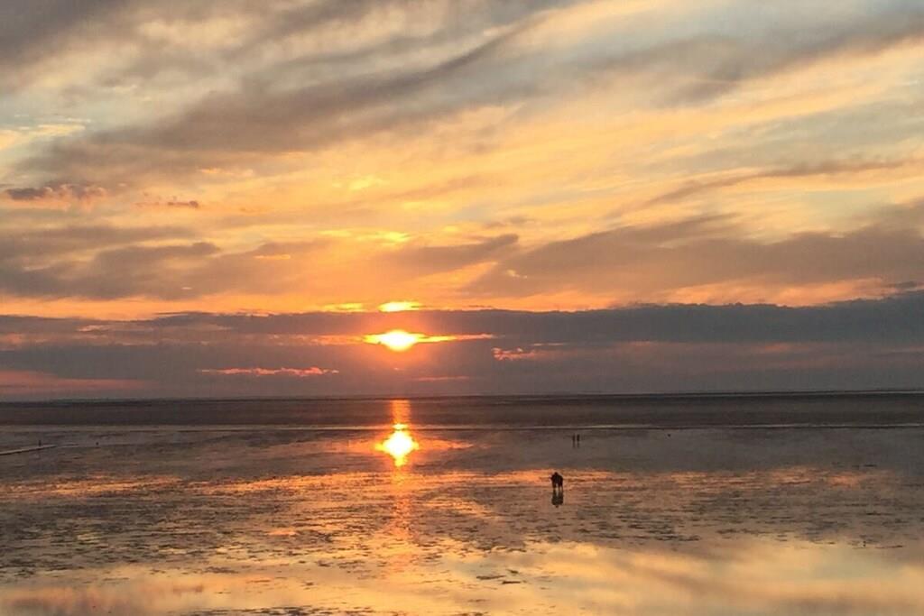 Komfortable Ferienwohnung Buschsand Lee in Friedrichskoog-Spitze, nur 200 m vom Strand entfernt mit moderner Ausstattung und Terrasse.