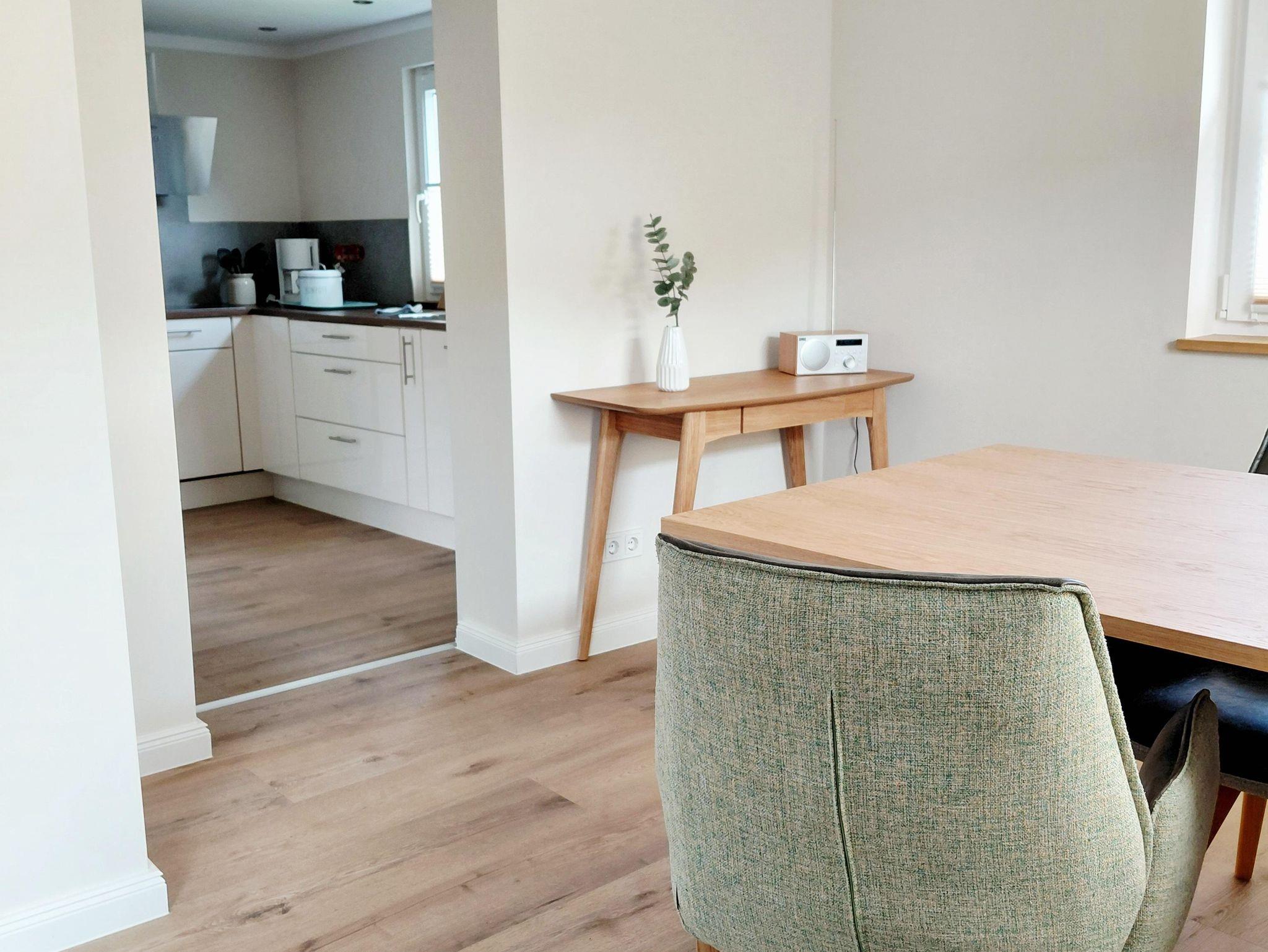• Hochwertig ausgestattete Küche mit Induktionskochfeld, Backofen & Dampfgarer.
