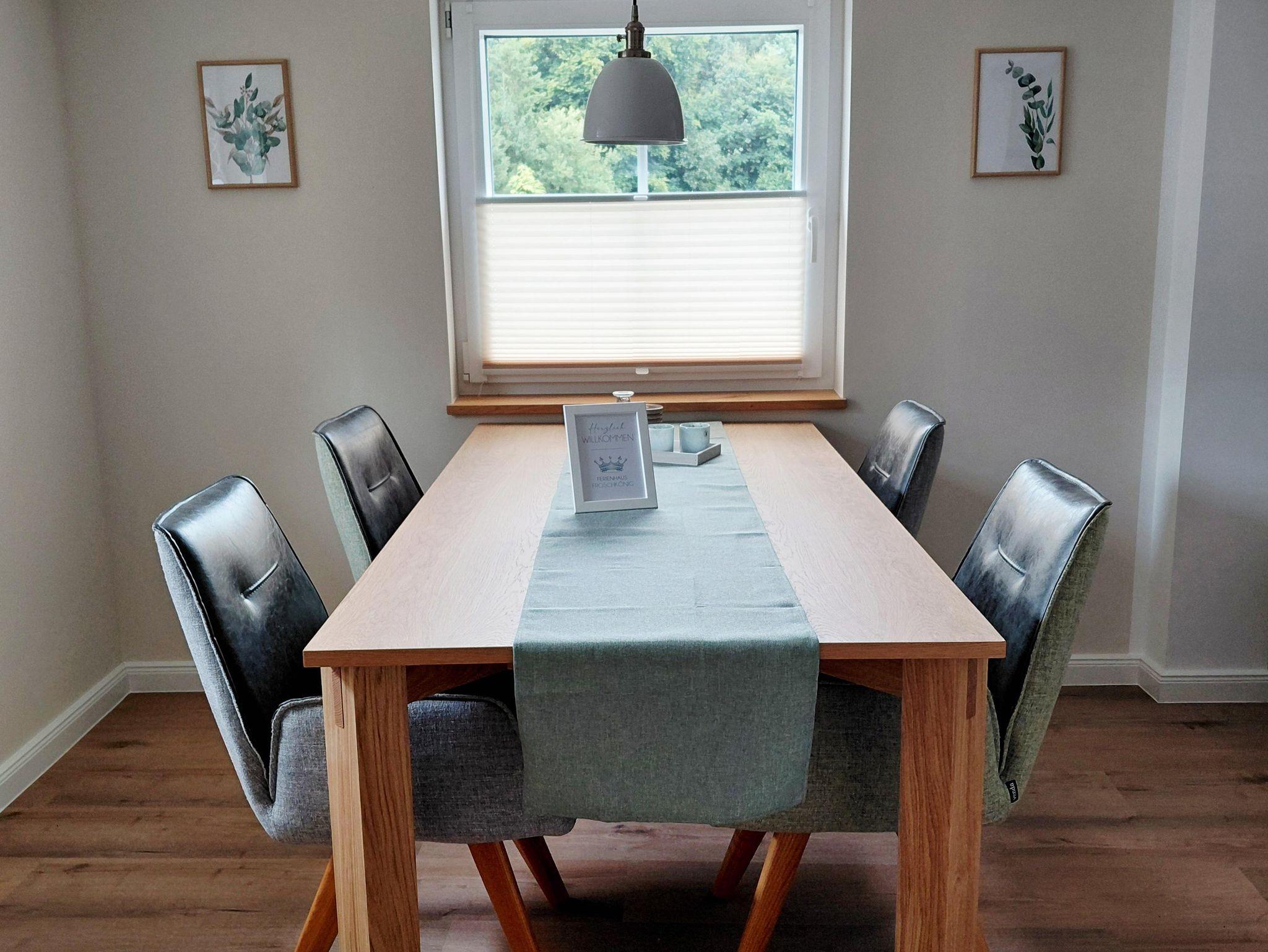 Herzlich willkommen im Ferienhaus Froschkönig, eurer persönlichen Ruheoase im sagenhaft ruhigen Wildenburger Land. Auf 80 m² erlebt ihr Natur pur – eingebettet in sanfte Hügel, dichte Wälder und weite Wiesen. Ob ihr zu zweit, mit Freunden oder der Familie kommt – hier findet ihr Raum zum Entspannen, Zusammensein oder für eure Outdoor-Abenteuer. Im Erdgeschoss erwartet euch ein gemütlicher Wohnbereich mit Couch, Pelletofen und Sat-TV. Der offene Essbereich schließt an eine moderne, voll ausgestattete Küche an – ideal für genussvolle Abende am Esstisch. Außerdem gibt es ein Gäste-WC. Im Obergeschoss befinden sich zwei Schlafzimmer: eines mit Doppelbett und eines mit zwei Einzelbetten. Das Badezimmer ist mit Dusche, Waschbecken und WC ausgestattet.