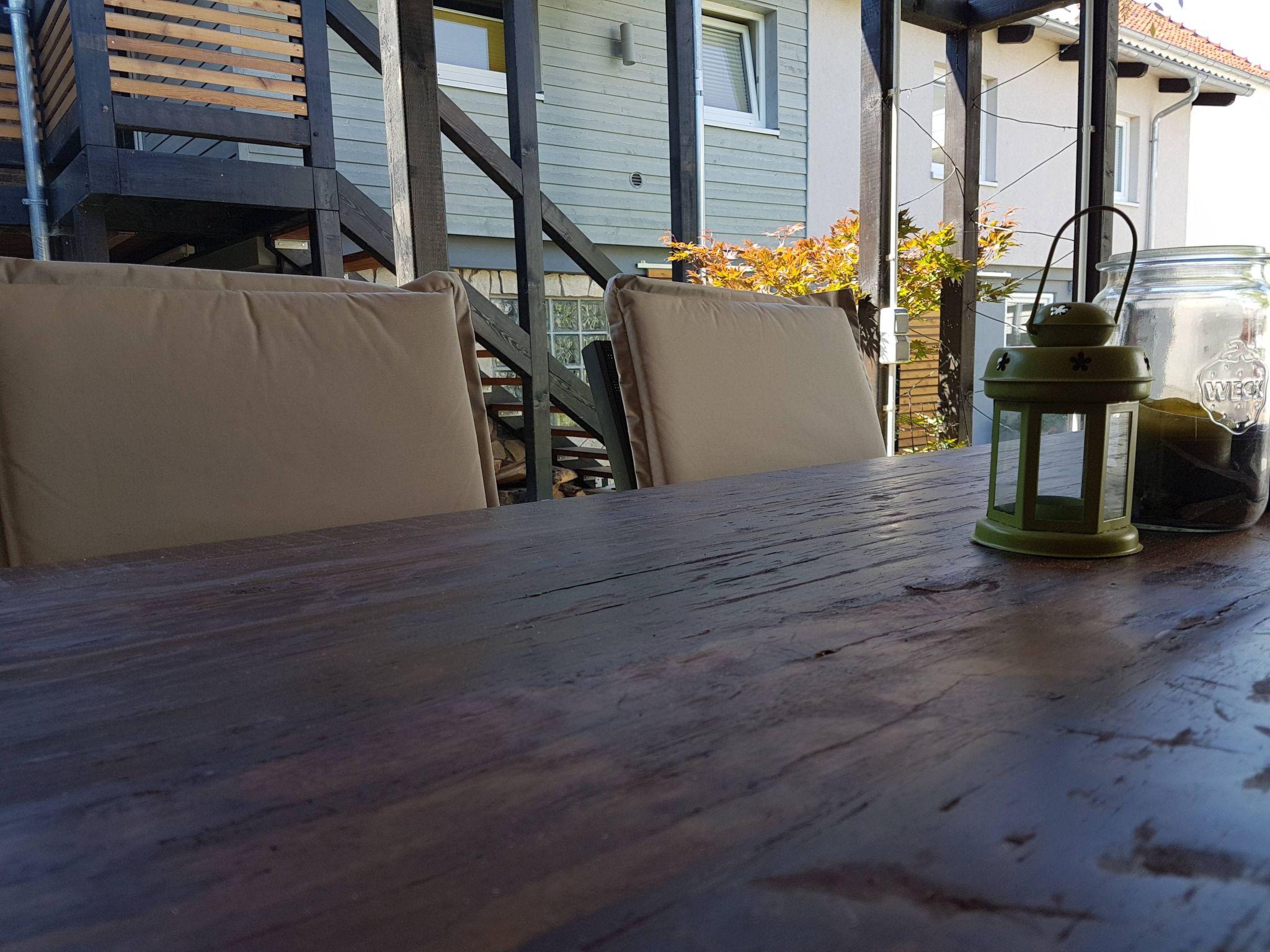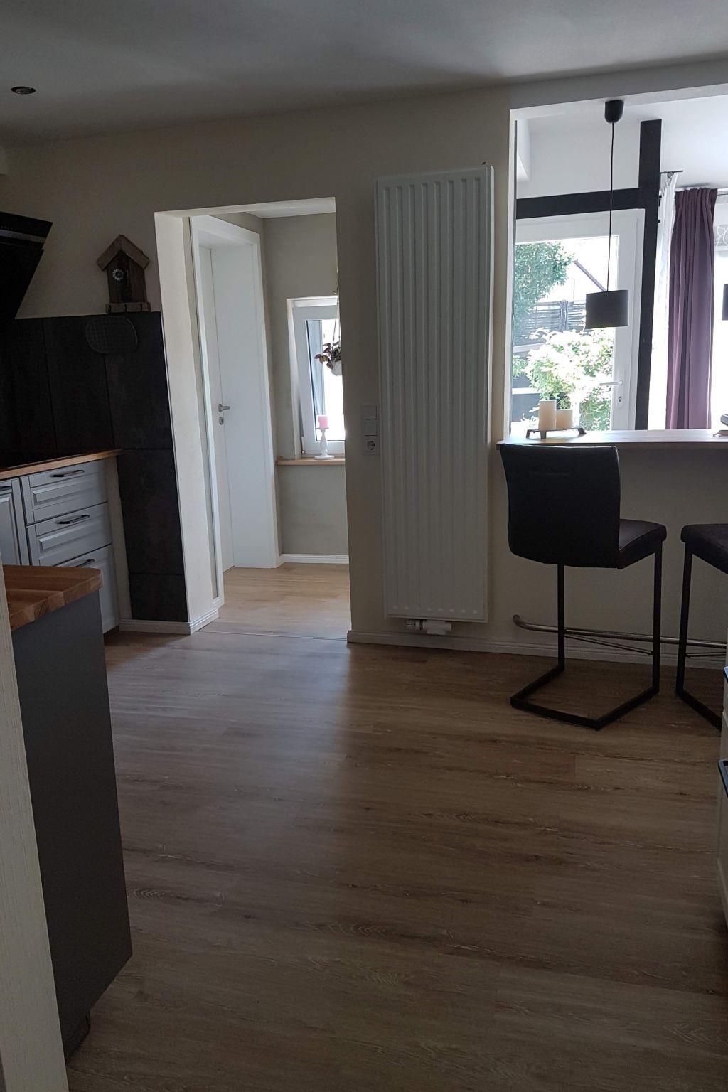 Das Apartment befindet sich in einem Zweifamilienhaus, ein wunderschöner Wintergarten der sich über die Küche und das Wohnzimmer erstreckt. Der Blick aus dem Wintergarten öffnet einen wunderschönen Innenhof, in mitten ein junger Amberahorn, der im Herbst eine traumhafte Rot-Gelb-Lila Färbung stellt. Ehemals war dies ein kleiner Bauernhof mit einem Dachdeckerbetrieb, welcher von uns seit Jahren aufwendig saniert und teilweise neu aufgebaut wurde. Im Innenhof ist ein bedachter Freisitz für 6 Personen, der jederzeit auch bei schlechtem Wetter genutzt werden kann, ein Grill steht hier auch zu Verfügung. Das Apartment befindet sich im Erdgeschoss und ist nur über eine Treppe erreichbar. An der Unterkunft stehen acht PKW Stellplätze und zahlreiche Unterstellmöglichkeiten für Fahrräder bereit.