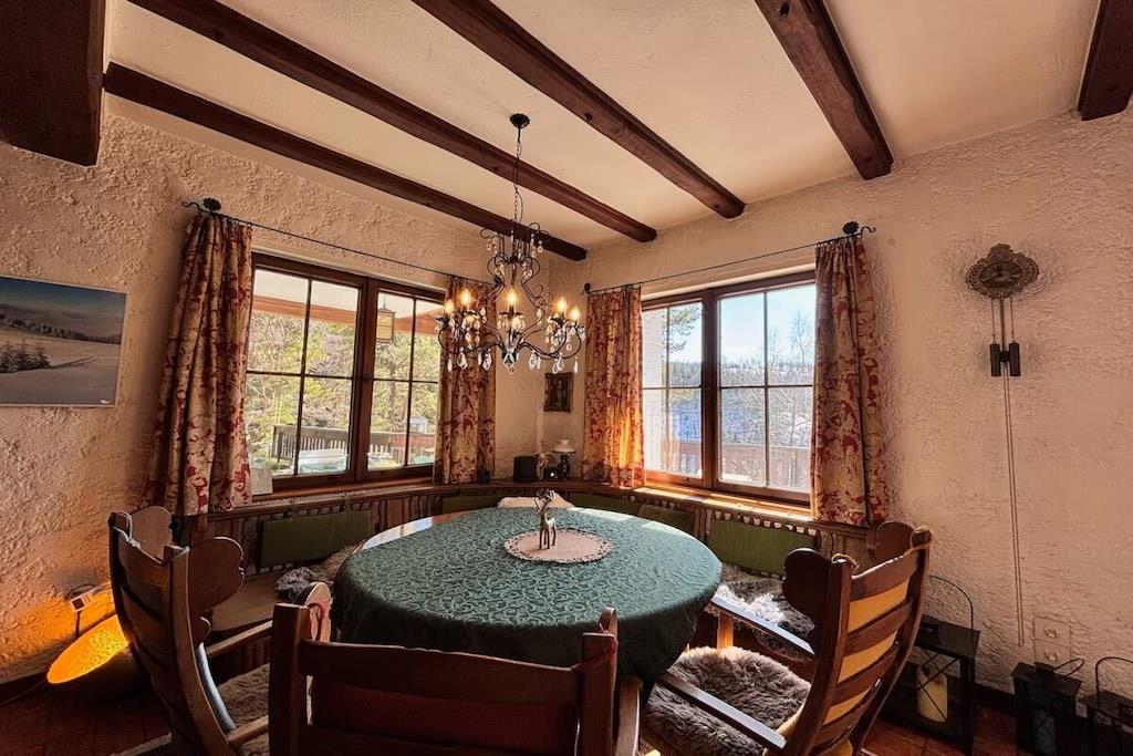 Absolute Alleinlage mitten im Wald mit Platz für bis zu 10 Personen, mit eingezäuntem Garten und frischem Quellwasser, Offenem Kamin und Kachelofen, WLAN und E-Ladestation. Riesige, zur Hälfte überdachte Süd-Terrasse mit Ausblick ins sagenumwobene Wagnerstal und die Kajetankapelle. Voll ausgestattete Küche mit Herd, Backofen, Geschirrspüler, Thermomix, Airfryer, Toaster. 5 Schlafzimmer mit bequemen Betten jeweils mit Waschbecken. Bettwäsche, Dusch- und Handtücher inbegriffen. Badezimmerausstattung: 1 Badezimmer mit Dusche 1 Bad mit Dusche und WC separat am "Patrone"-Zimmer - NEU 2026 1 Gäste WC im Obergeschoss 1 Gäste WC im Untergeschoss