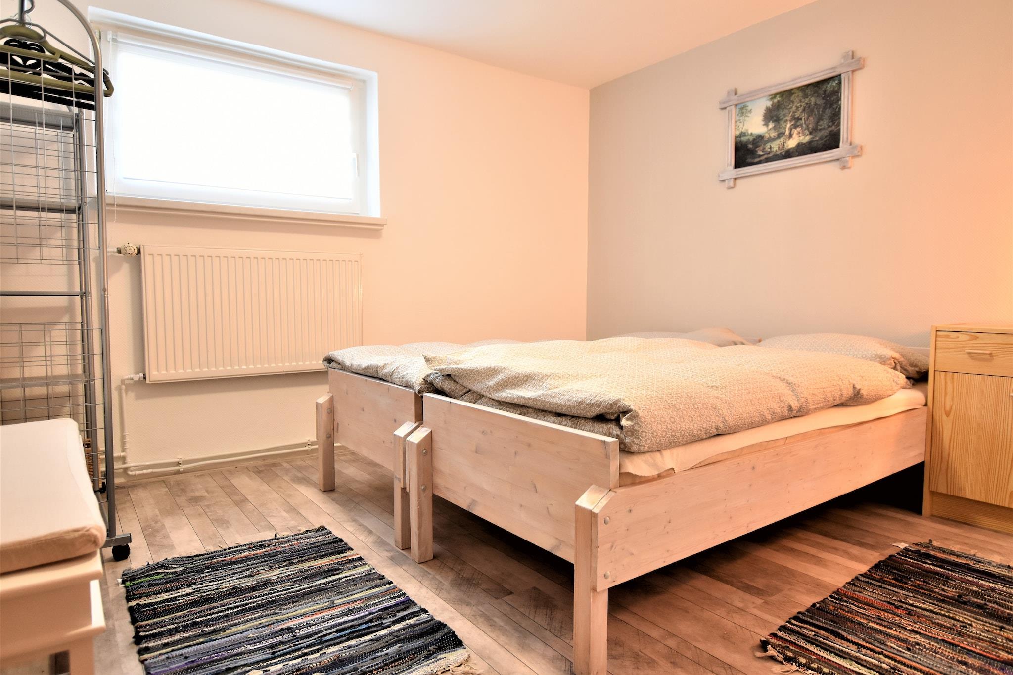 Souterrain: (Wohnzimmer(TV(Satellit), Sitzecke), offene Küche(Kochplatte(2 Kochplatten, elektrisch), Wasserkocher, Toaster, Kaffeemaschine, Mikrowelle, Kühlschrank), Schlafzimmer(Doppelbett), Schlafzimmer(Etagenbett(80 x 170 cm), Sitzecke, Radio, Waschbecken), Badezimmer(Dusche(ebenerdige Dusche), Waschbecken, Toilette), Flur) Carport, Terrasse, Garten(umzäunt), Gartenmöbel, Grill, Parkplatz, Spielgeräte