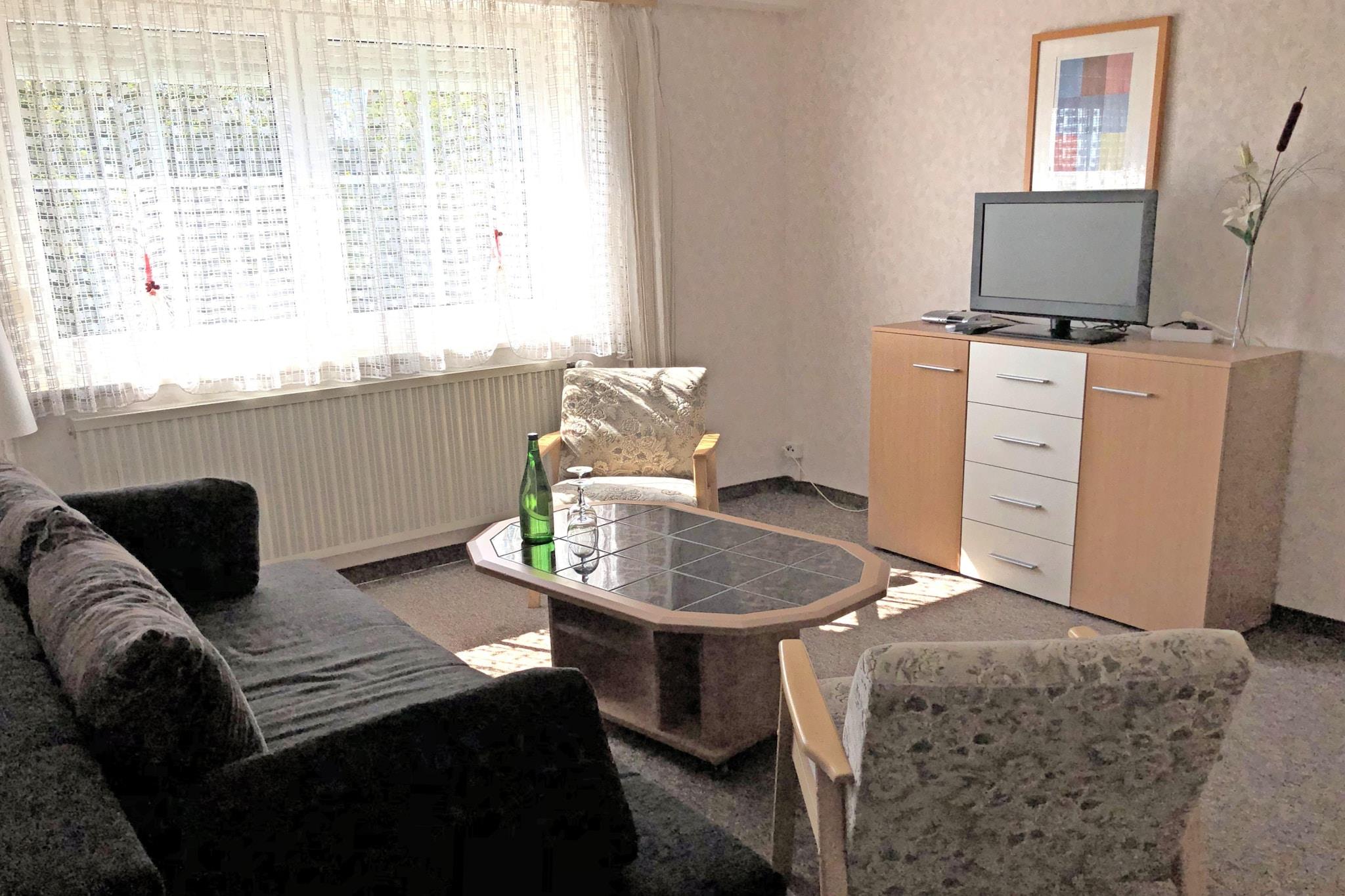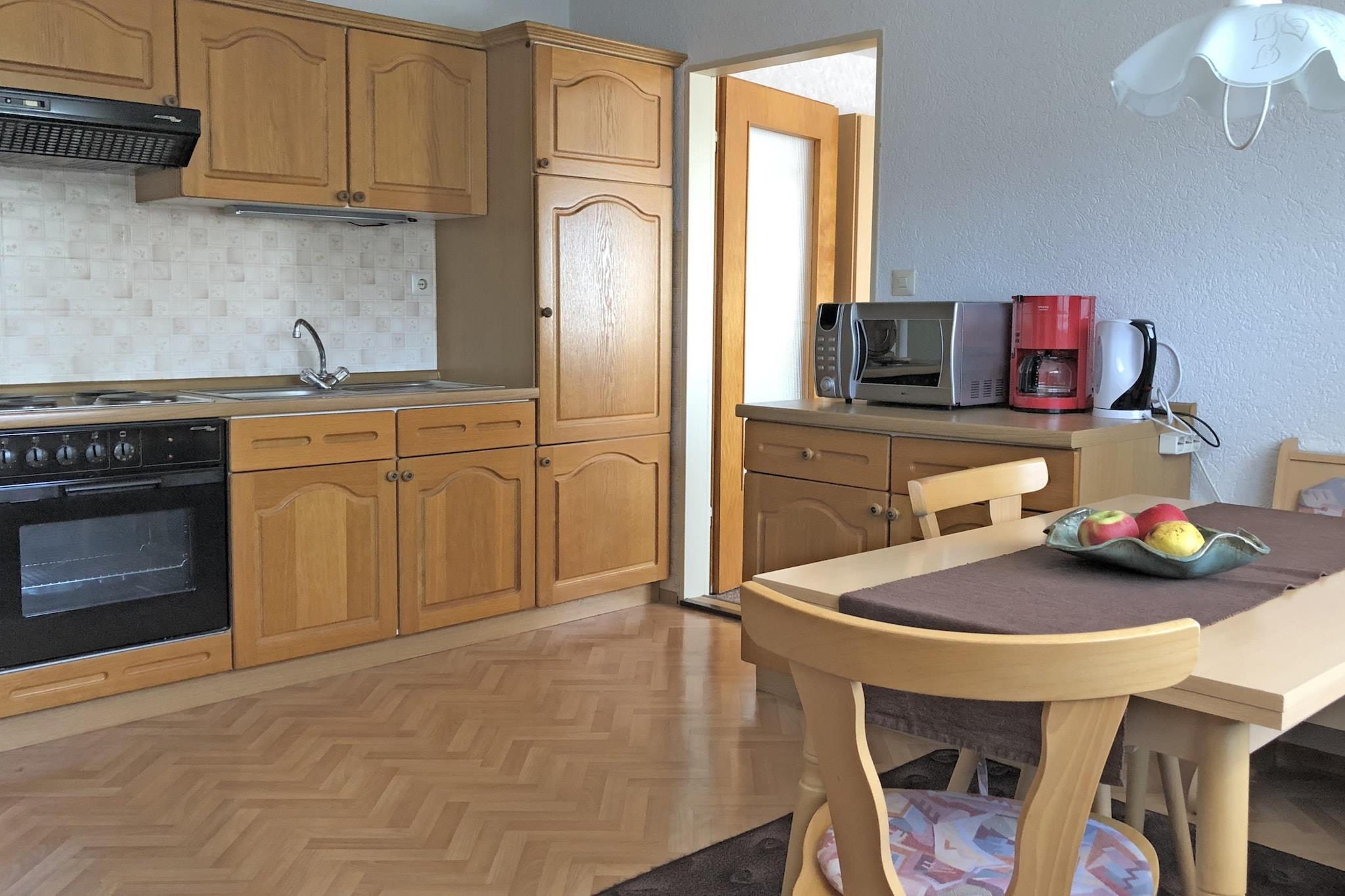 Diese haustierfreundliche Erdgeschosswohnung in Gößweinstein bietet Paaren oder kleinen Familien einen gemütlichen und praktischen Aufenthalt. Sie verfügt über ein geräumiges Schlafzimmer mit Doppel- und Einzelbett, ein helles Wohnzimmer mit Doppelschlafcouch, Sat-TV und Radio sowie eine große Küche mit Kaffeemaschine, Backofen, Mikrowelle und Gefrierschrank. Das Badezimmer ist mit einer Badewanne mit Dusche ausgestattet, und der private Garten mit Liegestühlen und Elektrogrill lädt zum Entspannen im Freien ein. Gästen stehen Zentralheizung, ein Hochstuhl, Sonnenschutz und zwei Parkplätze zur Verfügung. Die funktionale und familienfreundliche Raumaufteilung ist ideal für kurze und längere Aufenthalte. Besuchen Sie in der Nähe die majestätische Basilika Gößweinstein, erkunden Sie das mittelalterliche Leben auf der Burg Gößweinstein oder wandern Sie zur malerischen Ruine Burgstall Wichsenstein. Zum Essen empfehlen wir Ihnen das Holzwurm WIRTSHAUS&BAR für herzhafte fränkische Küche, den Gasthof Fränkische Schweiz für regionale Spezialitäten oder die Pizzeria Toni für lässige italienische Spezialitäten. Mit Waldwegen nur 20 Meter entfernt ist diese Wohnung der perfekte Ausgangspunkt für Ihr fränkisches Abenteuer.