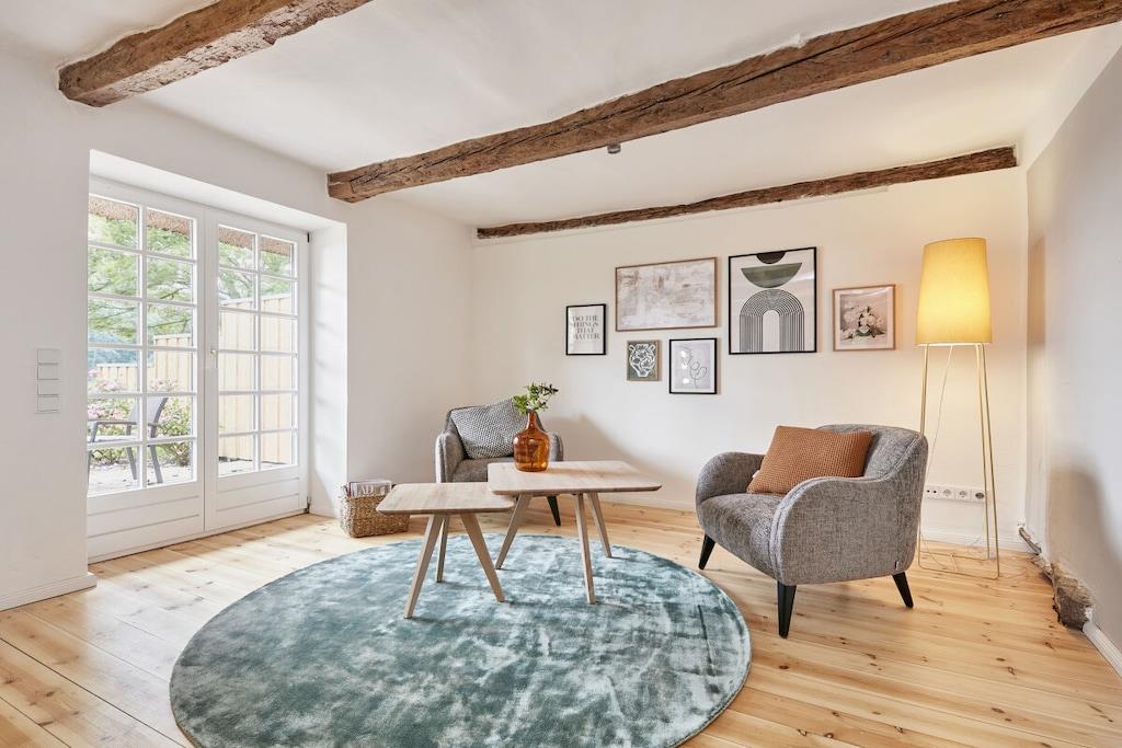 Diese Reetdachkaten- Haushälfte mit rund 120 m² finden Sie ein paar Kilometer von Oldenburg in Holstein entfernt und doch in voller Natur! Diese hat eine große Diele, ein geräumiges Wohnzimmer und eine gemütliche Küche und mit kleinerem Duschbad im EG. Im Obergeschoss finden Sie drei Schlafzimmer ( eines als Durchgangszimmer), eine gemütliche Galerie zum Sitzen und Seele baumeln lassen als auch ein Bad mit komfortabler Dusche. Die Küche unserer Reetdachkate ist sehr gut ausgestattet, es gibt eine Gartenliege, einen Gasgrill für draußen und WLan. Im Garten blühen im Sommer die Rosen, ein paar Hühner laufen vorbei und der Blick auf das freie Feld lässt gleich Ruhe einkehren. Genießen Sie eine schöne Zeit in unserem liebevoll hergerichteteten Ferienhaus!