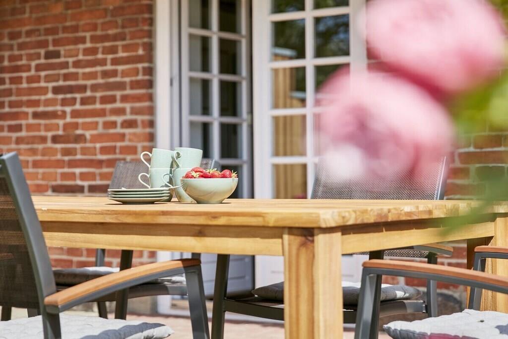 Gemütliches Reetdachferienhaus in Göhl mit großem Garten und WLAN, ideal zum Entspannen in der Natur.