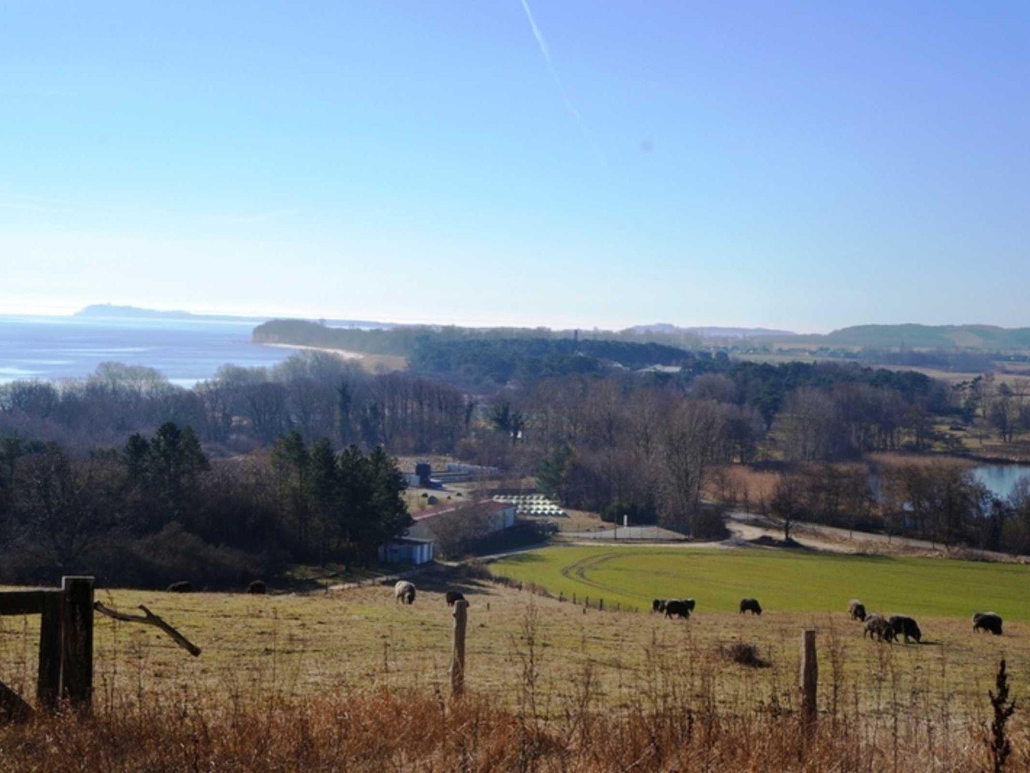 Vom Wohnzimmer haben Sie direkten (unverbauten) Blick auf den Südstrand und das Mönchguter Land.