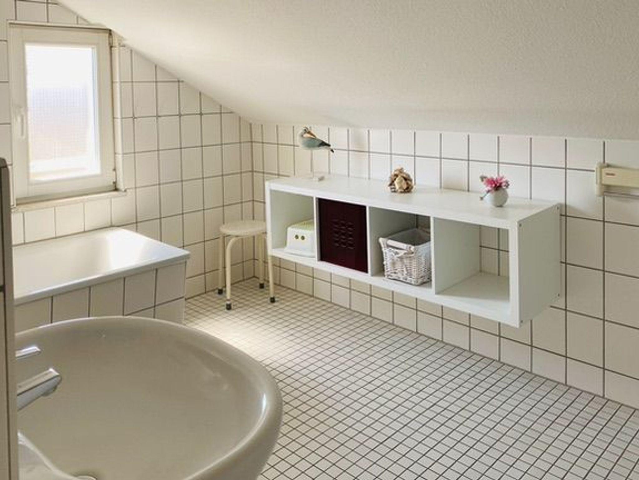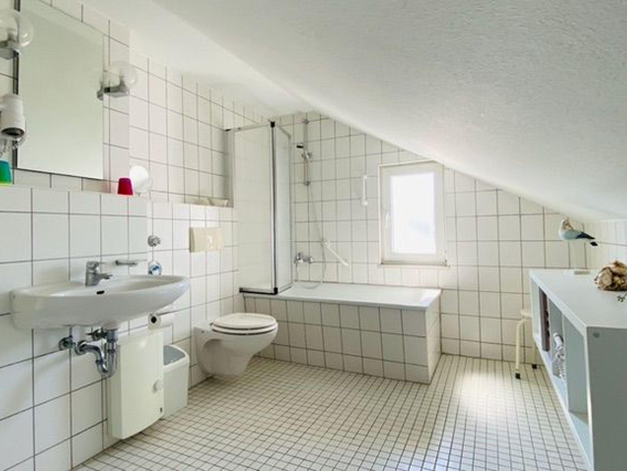 Bad mit Wanne und Dusche, Fön, Schminkspiegel und großem Schrank