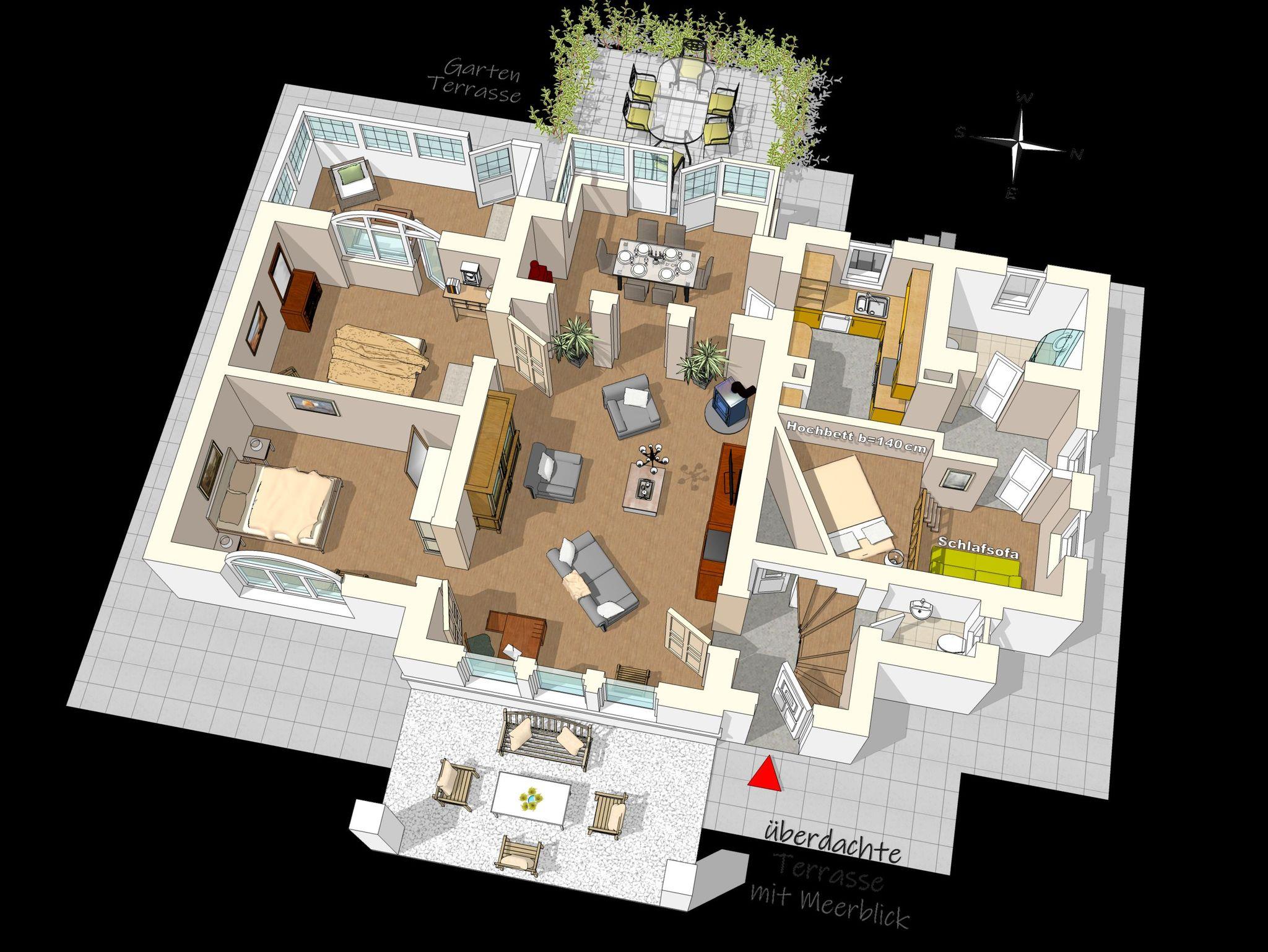Die Fewo Kapitän Wilhelm ist eine komfortable 5 Zimmer Wohnung für bis zu 6 Erwachsene und 2 Kinder im Erdgeschoss,ebenerdig, ca. 125 m²