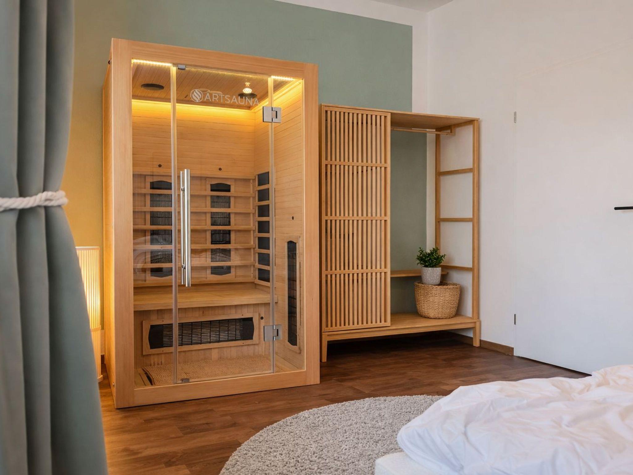 Das Herzstück dieser Unterkunft: Ihre eigene Sauna, exklusiv für Sie. Ob nach einem langen Strandspaziergang entlang der Kreideküste oder einem aktiven Tag auf Rügen entspannen Sie nach Belieben, ganz ohne Reservierung, ganz ohne Kompromisse. Ein Privileg, das Sterne-Niveau in Ihre Ferienwohnung bringt.