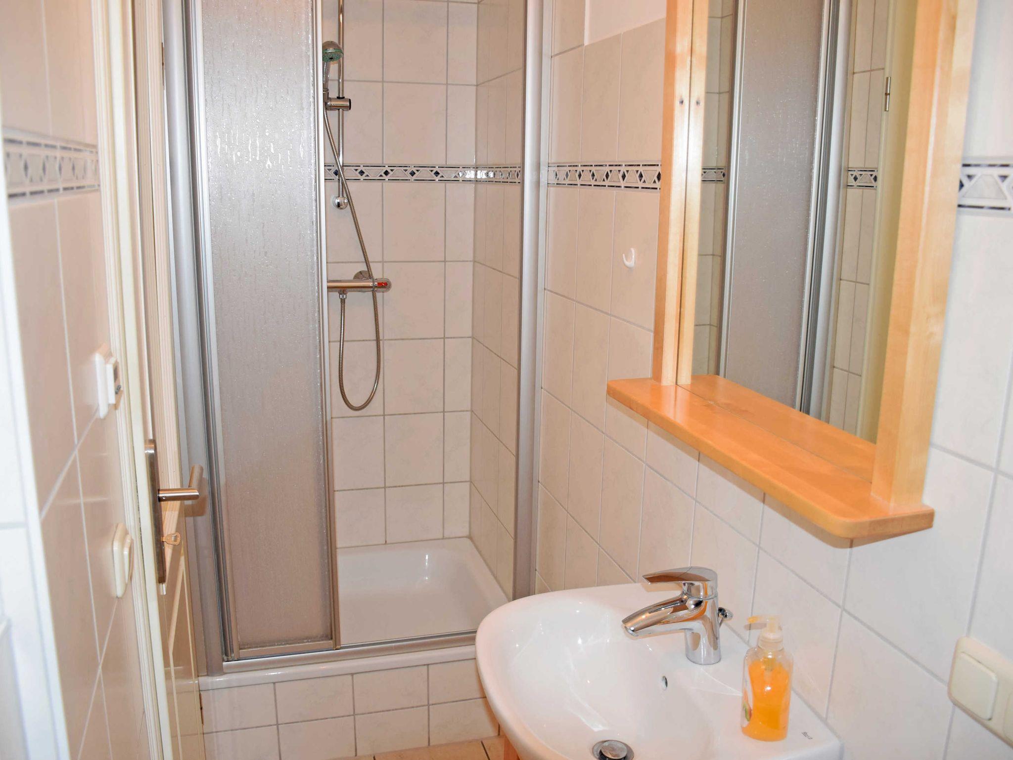 1 Bad mit Dusche, WC und Fön sowie Fußbodenheizung.