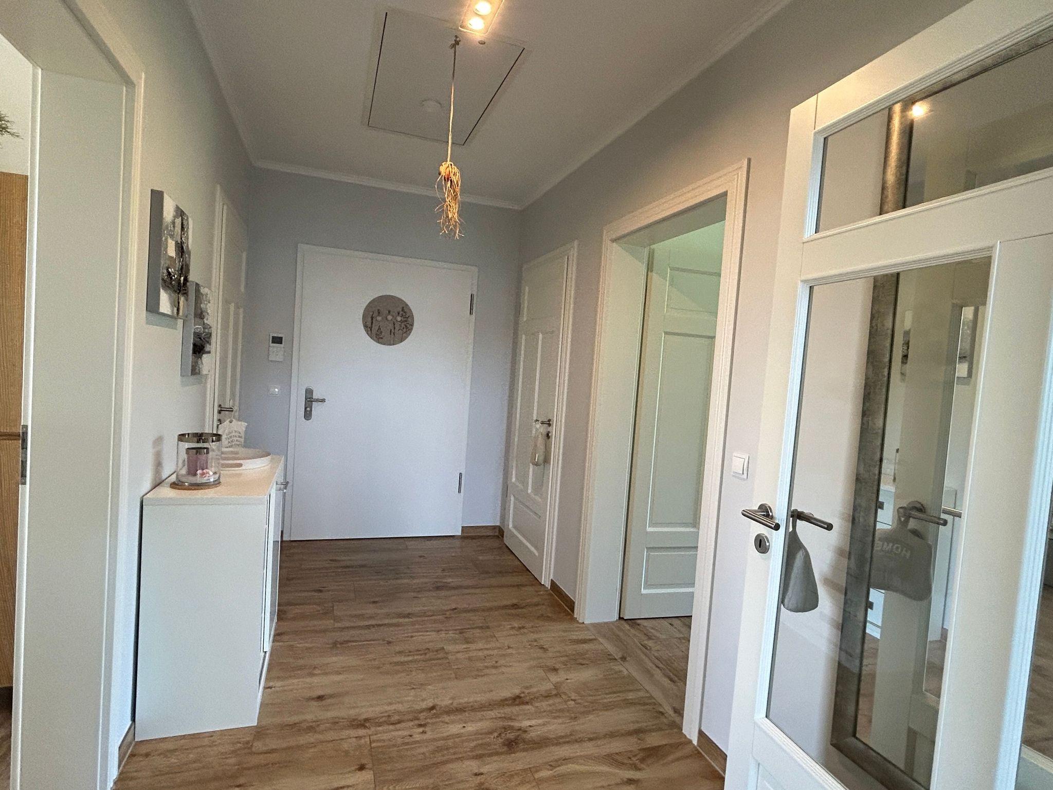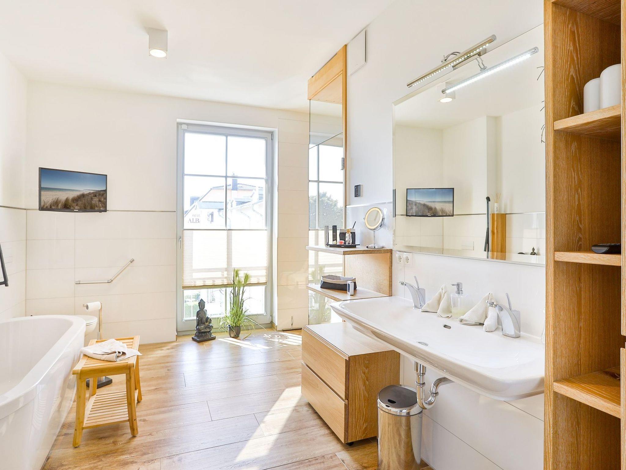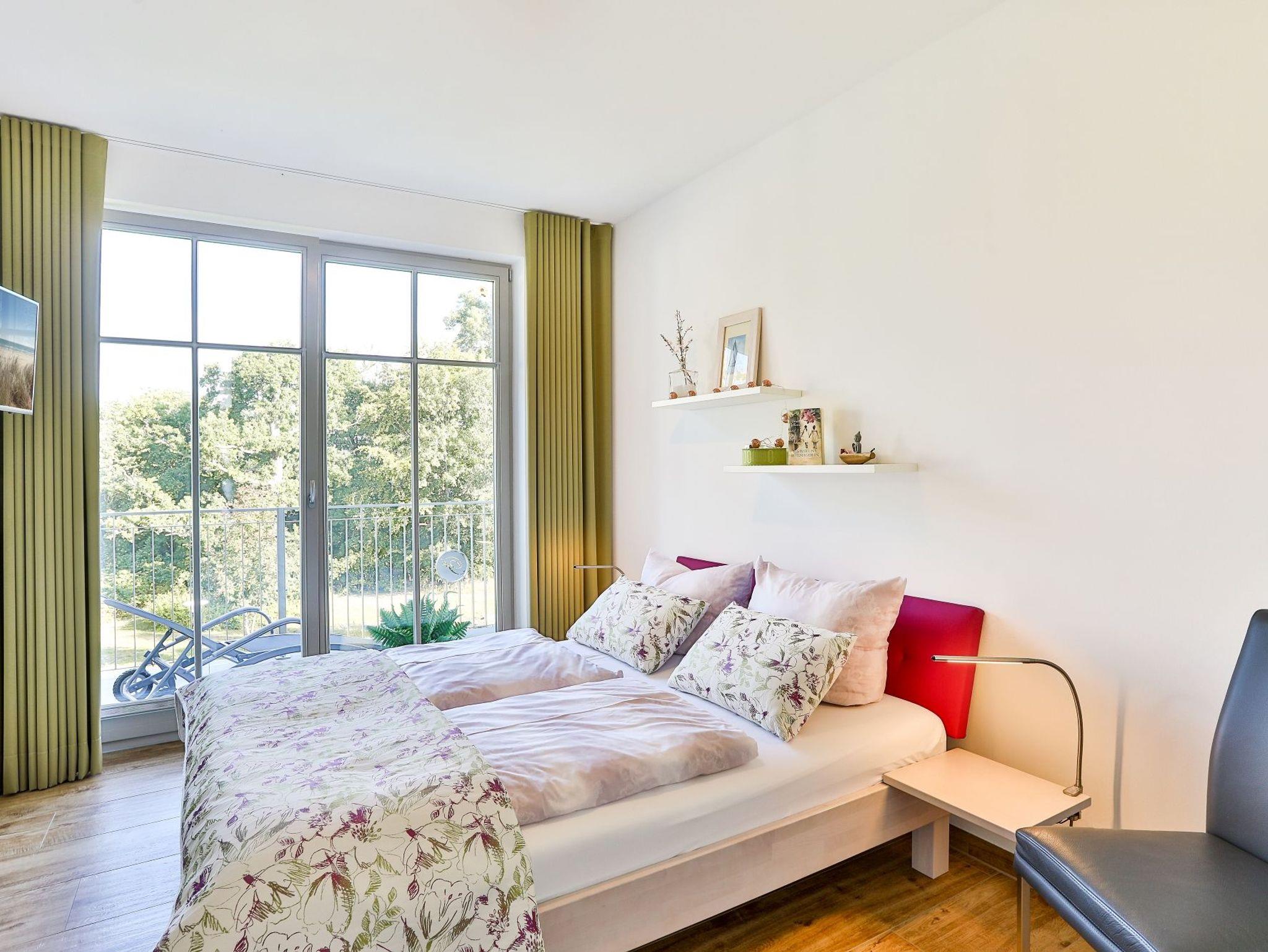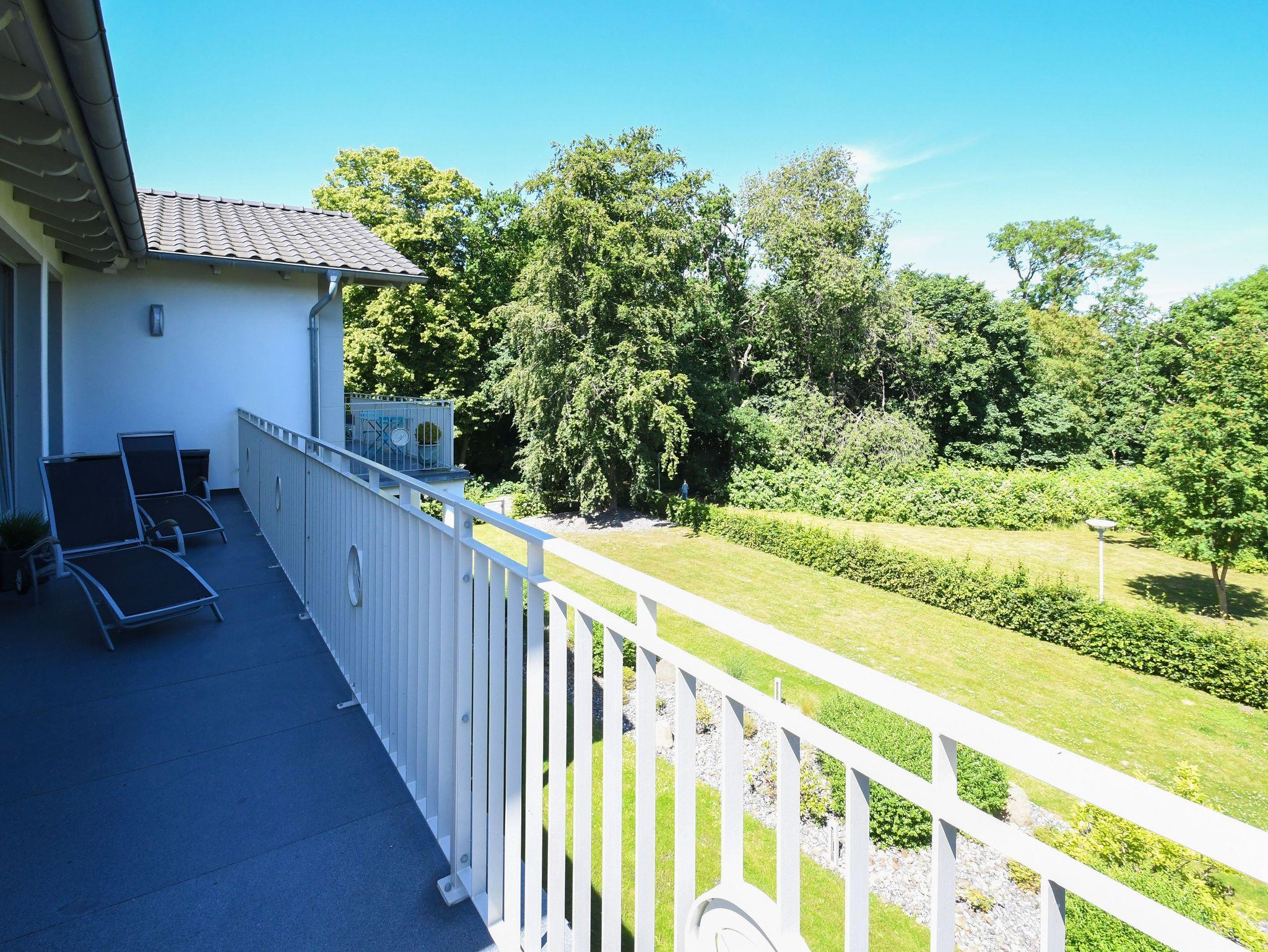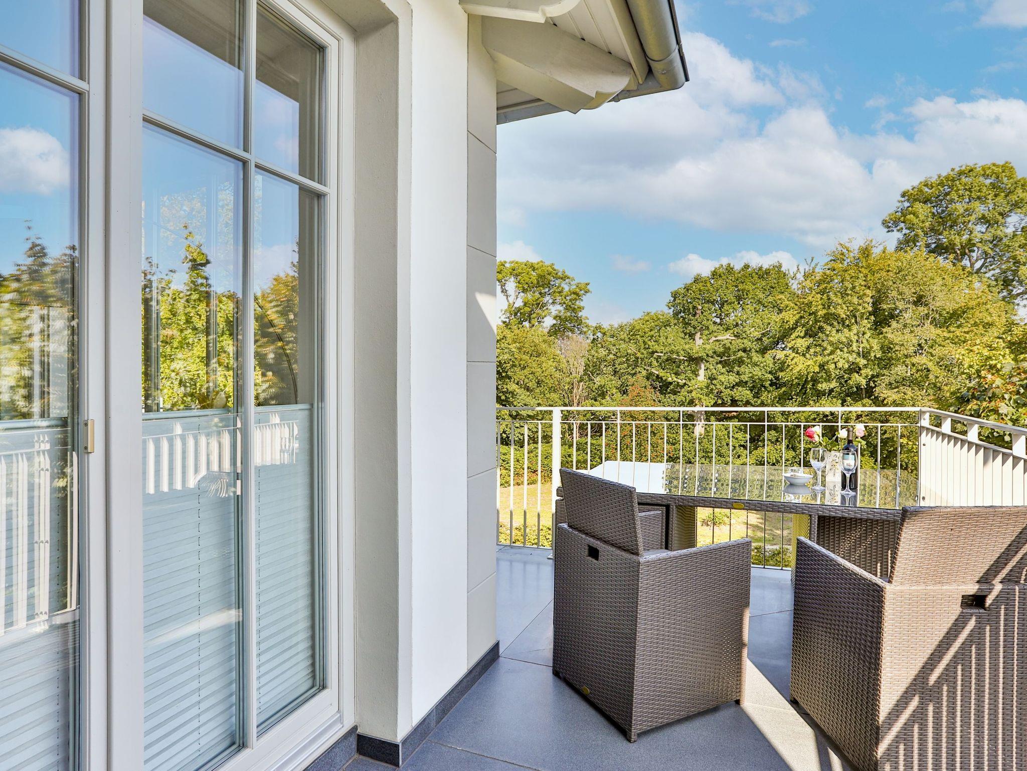 Genießen Sie Ihren Morgenkaffee auf dem möblierten Balkon mit Blick auf die malerische Landschaft und die Ostsee je nach Jahreszeit mit Meeresrauschen inklusive. Im Anschluss können Sie sich im Wellnessbad mit der hauseigenen Sauna entspannen oder einen Spaziergang am nahegelegenen Strand unternehmen. Die zwei Balkone sind sowohl vom Wohnraum als auch von den Schlafzimmern aus begehbar.
