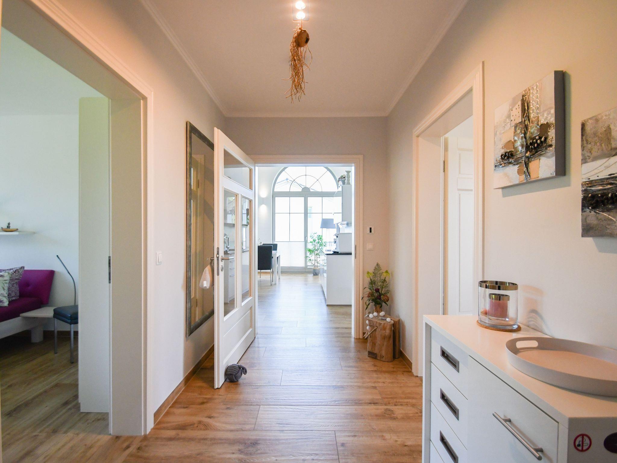 Die Wohnung besticht durch ihren hochwertigen, modernen und gemütlichen hellen Wohnraum, der durch einen Kamin für eine wohlige Atmosphäre sorgt. Die voll ausgestattete Markenküche mit Geschirrspüler, Mikrowelle, Backofen, Cerankochfeld, Kühl-und Gefrierkombination, Wasserkocher und Kaffeevollautomat lässt keine Wünsche offen. Auch hier befindet sich ein großer LED-Smart TV mit einem Blu Ray-Player und für vollendeten Musikgenuss eine Bose Sound Touch. Anlage