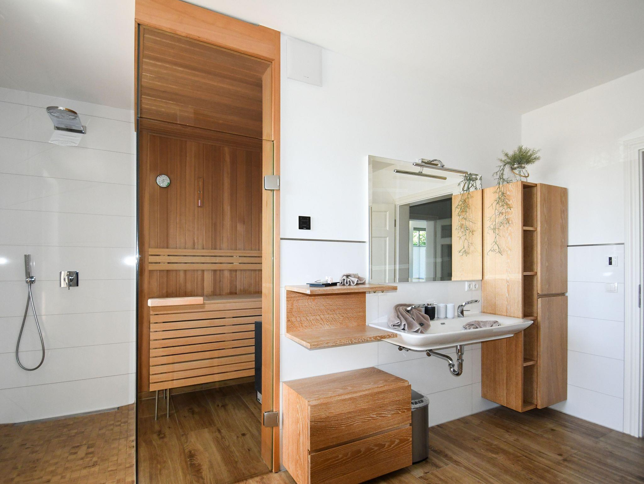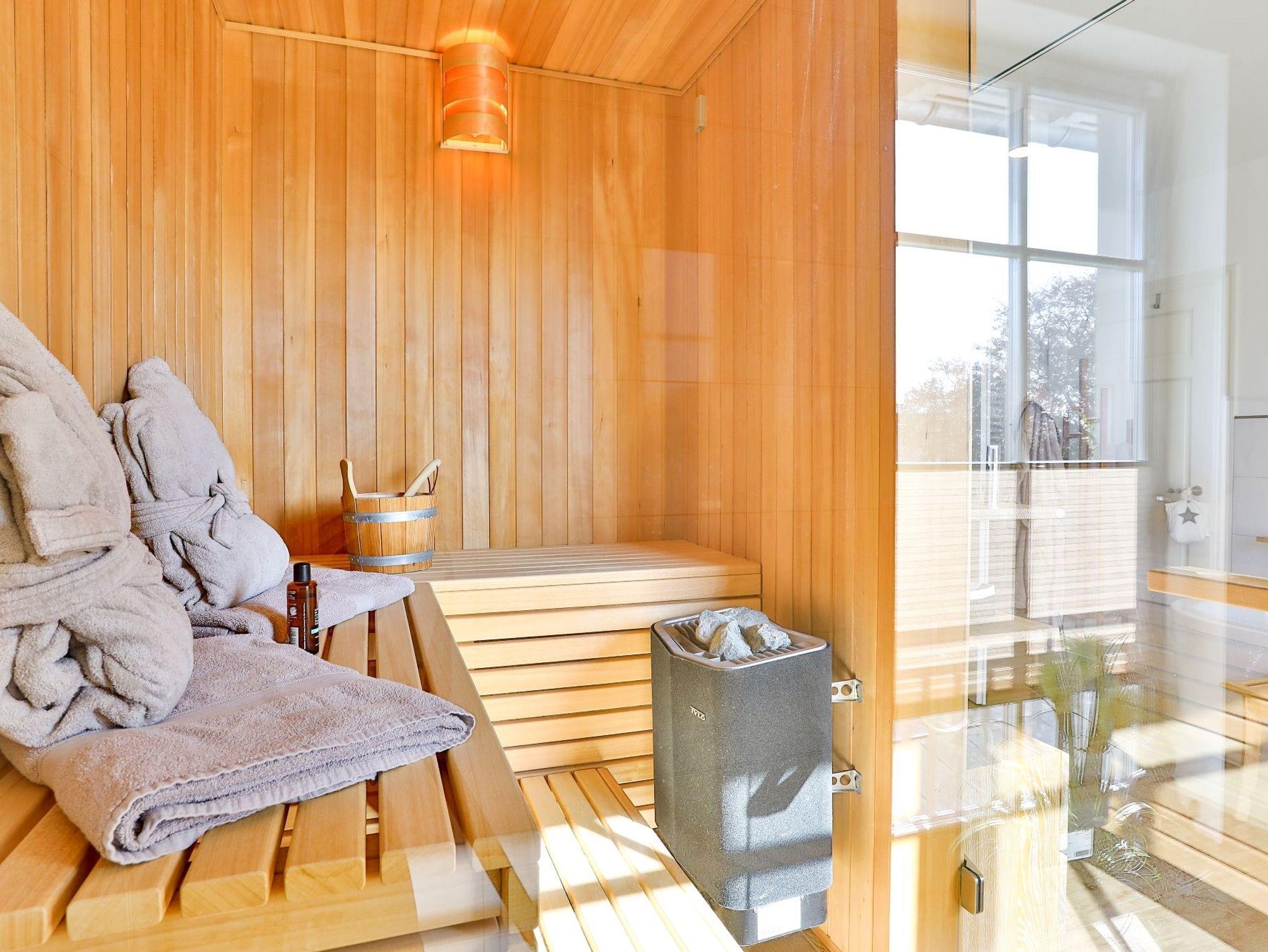 Weiterhin überzeugt die Ferienwohnung mit einer privaten finnischen Sauna im Wellnessbad!