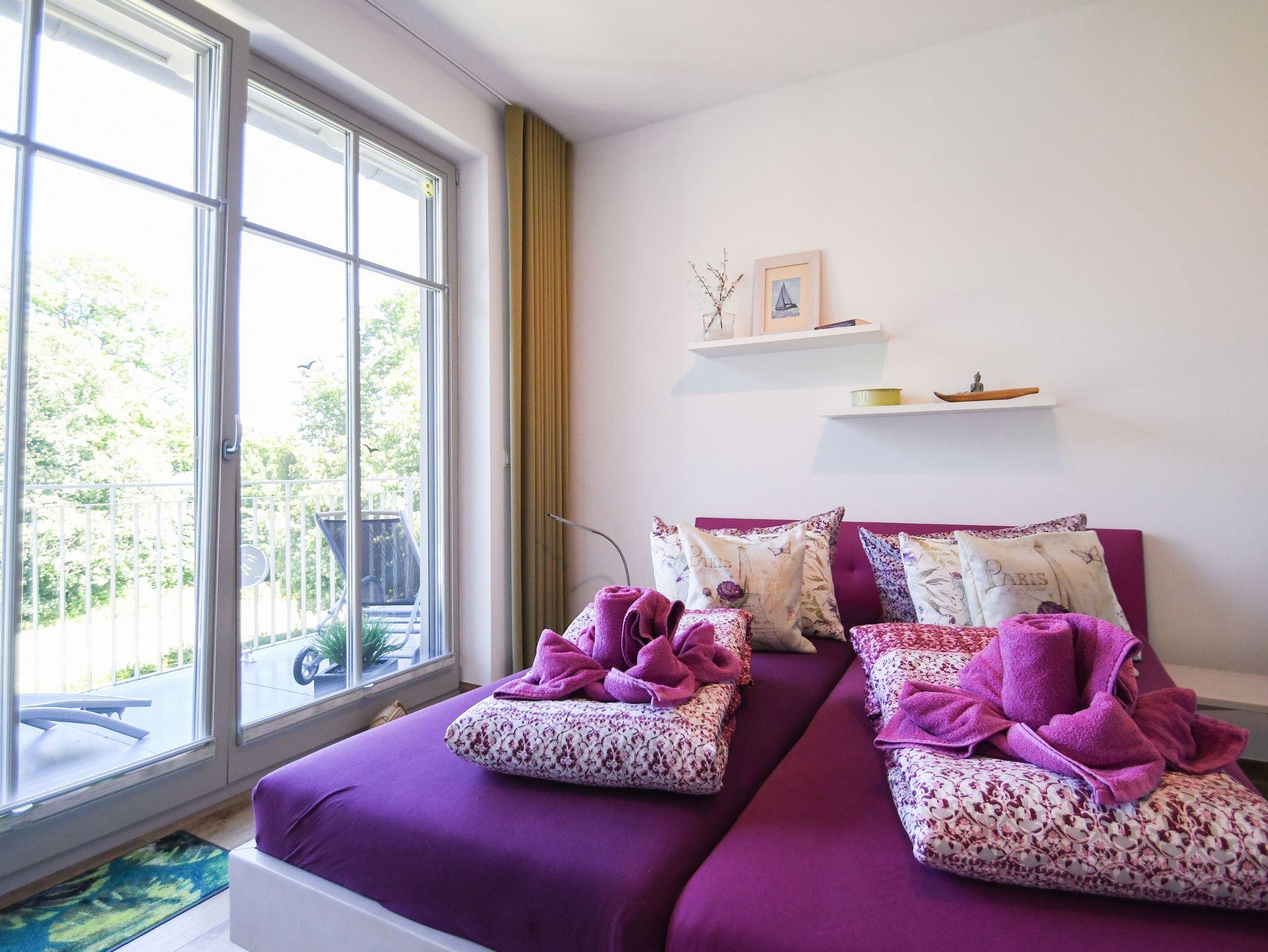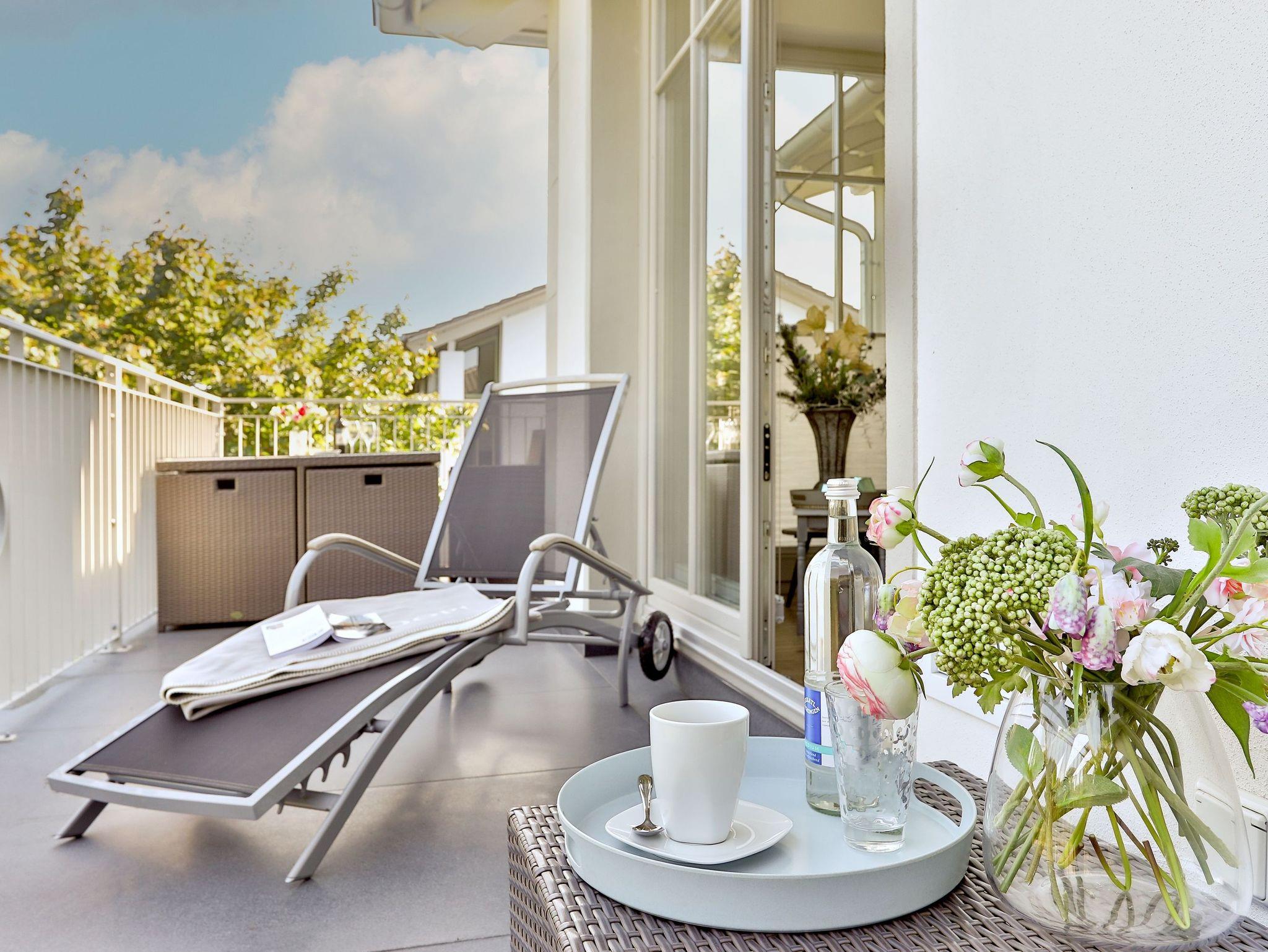 Genießen Sie Ihren Rügen Urlaub in dieser wunderschönen, exklusiv eingerichteten Nichtraucher Penthouse-Ferienwohnung. Freuen Sie sich auf einen L- förmigen großen Balkon zur Meerseite, der mit 2 Relaxliegen und Sitzgelegenheiten zu einem entspannten Frühstück einlädt und einem kleinen Balkon. Beide sind von fast allen Zimmern begehbar.