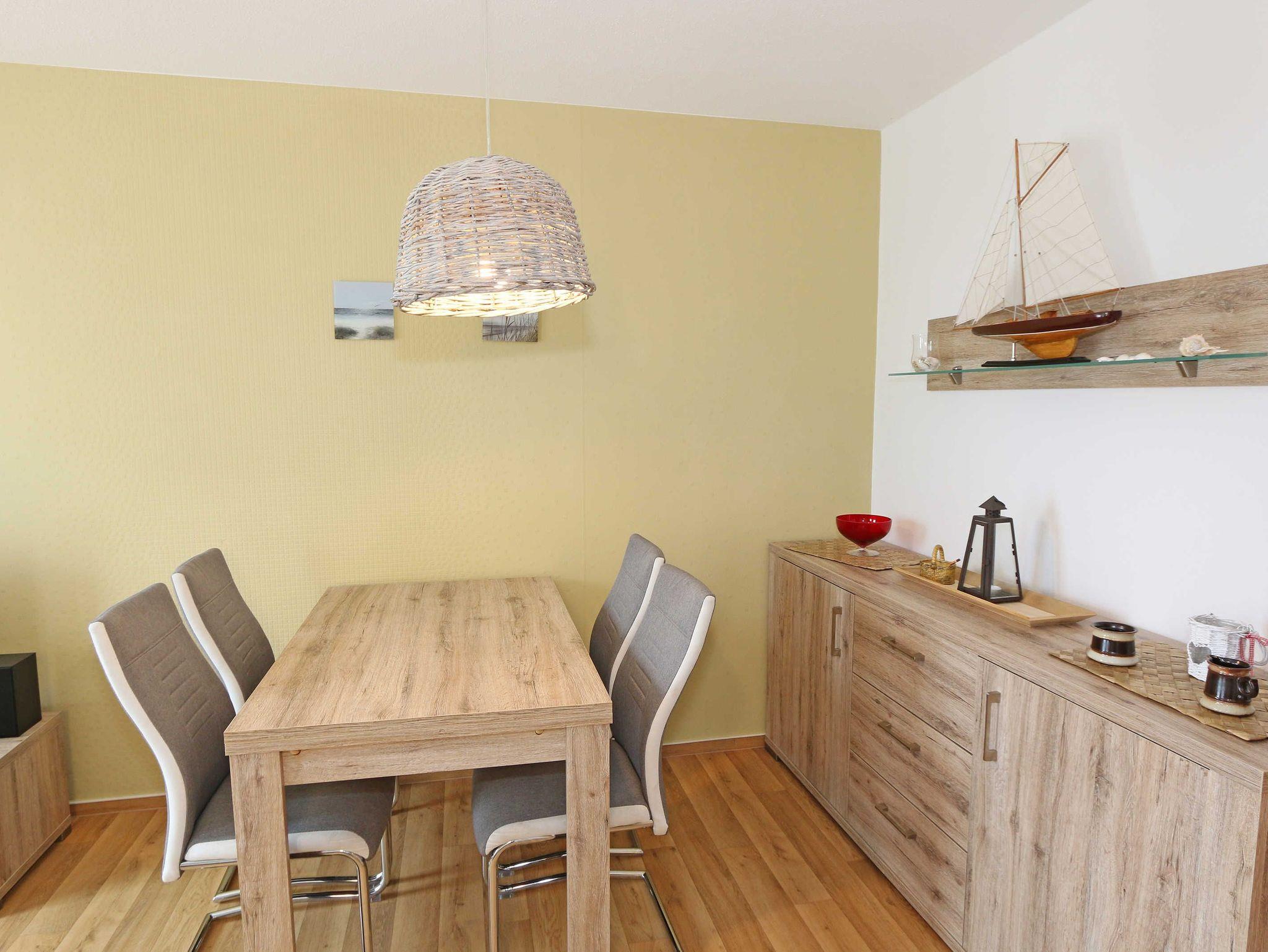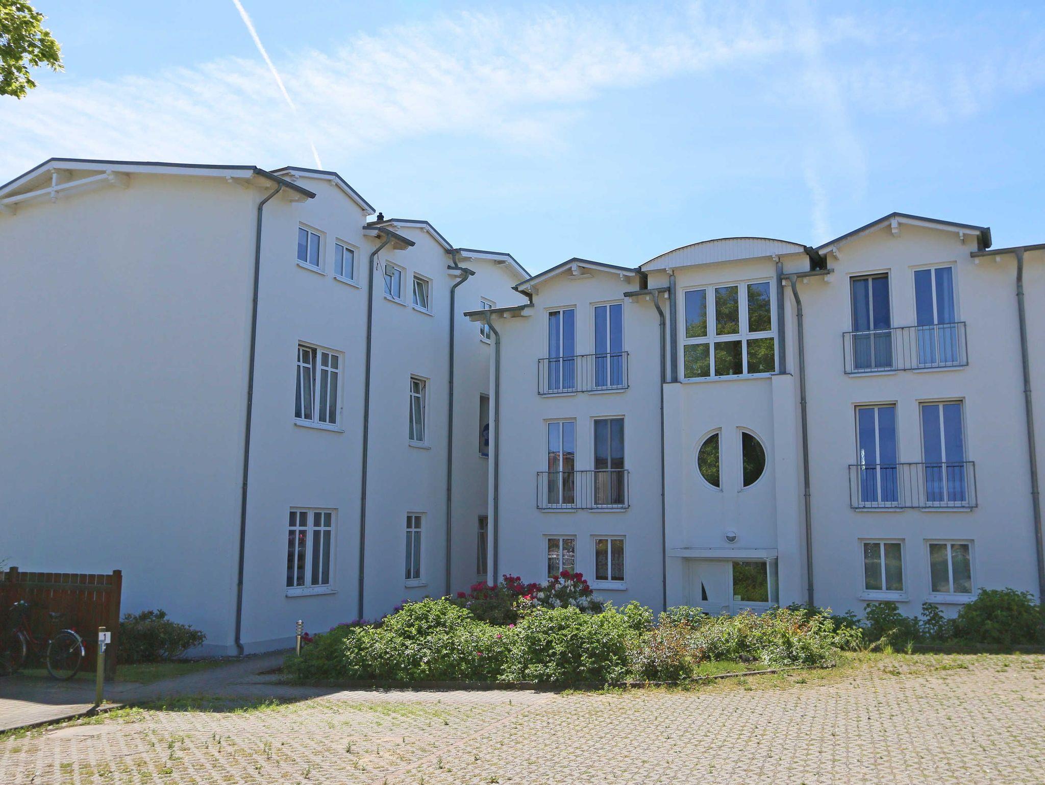 Die gemütliche 2-Zimmerwohnung (Nichtraucher) befindet sich im modernen Anbau der Villa Vineta im 1. Obergeschoss. Die Wohnung ist mit einem Bodenbelag in Holzoptik sowie hellen Wohnzimmermöbeln ausgestattet. Mit ihren ca. 56 qm bietet Ihnen die Wohnung ausreichend Platz für 2 bis 4 Personen. Der Wohnbereich wird durch eine hochwertige Schlafcouch (1,60 m x 2,00 m, Aufbettungsmöglichkeit für 3./4. Person) mit Couchtisch, Leselampe, kleinem Sideboard mit Smart-TV mit Sky (Auswahl von Sport, Film, Dokumentation), Blu-Ray-Player und einer Mini-Stereo-Anlage mit CD-Player und DAB-Radio abgerundet. Auf einen Internetzugang (WLAN) brauchen Sie nicht zu verzichten. Dieser ist inklusive für Sie. Der gemütliche Essplatz mit 4 Stühlen passt sich dem Wohnbereich an. Von hier aus erreichen Sie den teilüberdachten und bestuhlten Südbalkon, von dem Sie einen Meerblick in Richtung Südstrand und der Halbinsel Mönchgut haben. Die separate neu renovierte Küche ist komplett mit Backofen, Induktionsfeld, Mikrowelle, Geschirrspüler, Kühlschrank mit Gefrierschrank, Kaffeemaschine, Toaster, Wasserkocher und diversen Küchenutensilien ausgestattet. Das ruhig nach Norden gelegene Schlafzimmer verfügt über ein Doppelbett (1,80 m x 2,00 m) mit verstellbaren Lattenrosten, Nachttischkonsolen sowie einem Kleiderschrank und ein Smart-TV (nur Internet TV möglich). Ein Kinderreisebett kann hier aufgestellt werden. Das Schlafzimmer und der Wohnbereich sind mit Verdunklungsplissees versehen. Das geflieste Tageslichtbad ist mit einem Waschtisch, Kosmetikspiegel, Fön, WC und Dusche ausgestattet. Ein PKW-Stellplatz (Nr. 12) gehört zur Wohnung und befindet sich hinter dem Haus. 1x Hochstuhl und 1x Kinderreisebett (ohne Zusatzmatratze, ohne Bettinlett) sind für unsere kleinen Gäste inklusive. Für Ihre geliehenen oder auch mitgebrachten Fahrräder stehen Ihnen ein Fahrradständer sowie ein Fahrradkeller zur Verfügung. 1 Haustier ist gegen eine Gebühr ein gern gesehener Gast. Die Erstausstattung eines Wäschepaketes (komplette Bettwäsche, 1 Duschhandtuch, 2 kleine Handtücher) können Sie bis 14 Tage vor Anreise gegen einen Aufpreis dazu buchen oder durch eigene ergänzen. Ab 2 gebuchten Paketen erhalten Sie einmalig 1 Geschirrhandtuch und 1 Duschvorleger hinzu.