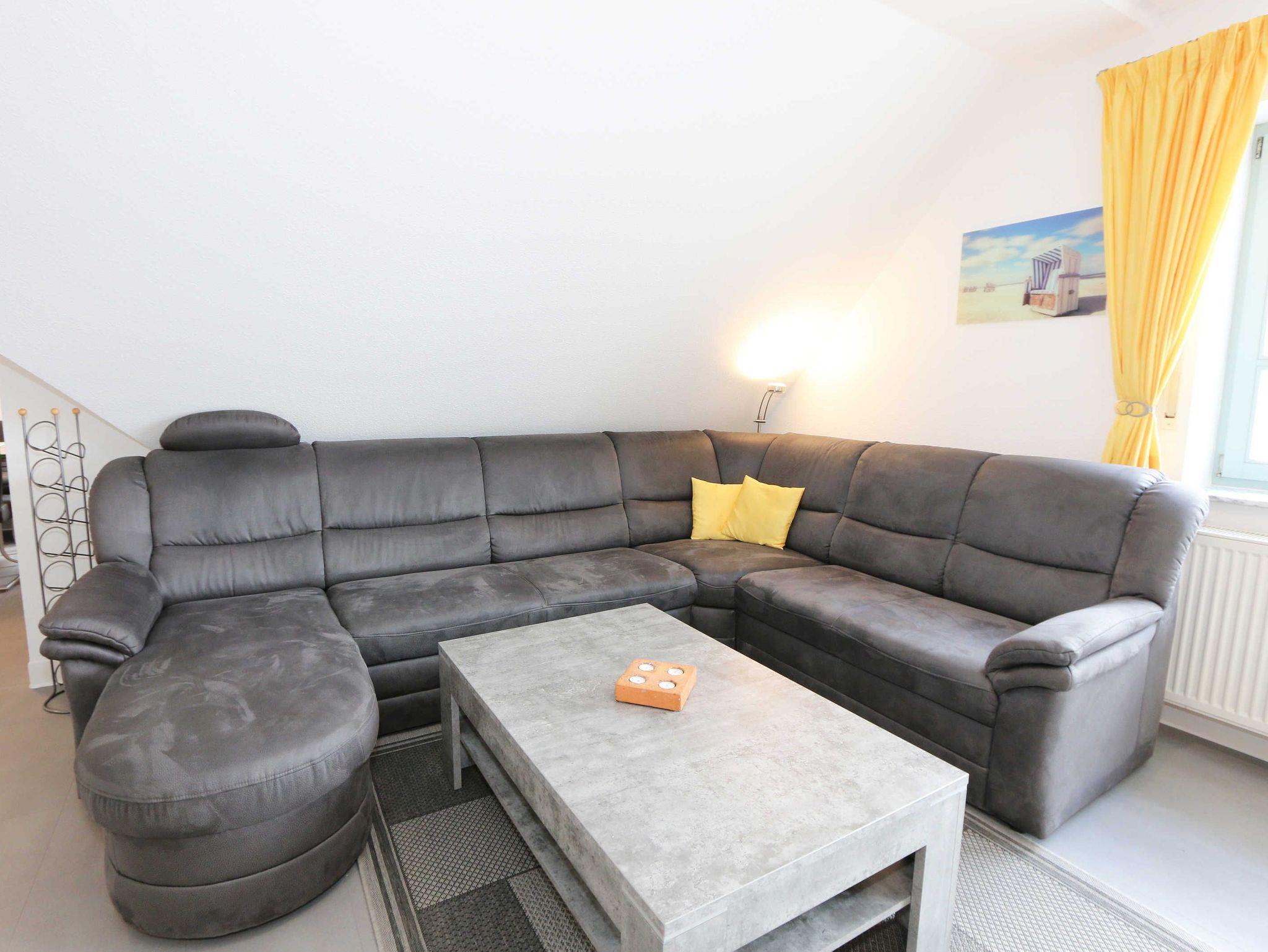 Die lichtdurchflutete, komfortable Nichtraucherwohnung verläuft auf über 70 qm und ist ideal für 2 bis 4 Personen geeignet. Ein Kleinkind (bis 3 Jahre) kann im Kinderreisebett als Aufbettung (5. Person) untergebracht werden. Der vom Wohn- und Schlafbereich zu erreichende Balkon in Richtung Süden lädt zum Verweilen ein und erlaubt es Ihnen die Sonne sowie den Blick auf das Meer zu genießen. Im Rahmen der Renovierung im Februar 2020 wurde in der ganzen Wohnung ein neuer Vinylboden verlegt und eine neue, moderne Küche wurde eingebaut. Die Küchenzeile beinhaltet ein 4-Zonen-Ceranfeld, Backofen, Mikrowelle, Geschirrspüler, Kühlschrank mit Gefrierfach, Kaffeemaschine, Toaster, Wasserkocher sowie diverse Küchenutensilien. Der dazugehörige Essbereich wurde ebenfalls mit neuen Möbeln ausgestattet, hierzu gehören zwei Stühle, ein Glastisch sowie eine Sitzecke. Der Wohnbereich mit einer Couchecke (in wenigen Handgriffen zur 2. Schlafstätte für 2 Personen hergerichtet, 1,20m x 2,00m), ein Couchtisch, eine Leselampe, ein Flachbild-TV mit DVD-Player und CD-Stereoanlage runden das Ganze ab. Das großzügige Schlafzimmer ist mit einem Doppelbett (1,80 m x 2,00 m/HG 2), 2 Nachtschränken, 1 Einzelbett und einem großen Kleiderschrank mit Ganzkörperspiegel ausgestattet. 1 Kinderreisebett (ohne Matratze und Bett Inlett) und 1 Kinderhochstuhl sind für einen kleinen Gast inklusive. Das neu renovierte Bad ist mit einer komfortablen Dusche (1,20m x 0,80m) mit Glasschiebetür, WC sowie Waschtisch mit Unter- und Spiegelschrank ausgestattet. Ein Kosmetikspiegel sowie ein Fön befinden sich ebenso hier. Auch im Urlaub brauchen Sie auf einen Internetzugang (WLAN) in Ihrer Wohnung nicht zu verzichten. Dieser ist inklusive. Ein Parkplatz (Nr.06) gehört zu jeder Wohnung. Ihre Fahrräder können Sie auf dem Areal unter einem überdachten Fahrradständer abstellen. Im Untergeschoss des Hauses befindet sich zum Entspannen eine Sauna (gegen Gebühr) sowie für die sportliche Betätigung ein Tischtennisraum. Waschmaschine und Trockner können Sie gegen Gebühr nutzen. Die Erstausstattung eines Wäschepaketes (komplette Bettwäsche, 1 Duschhandtuch, 2 kleine Handtücher) können Sie bis 14 Tage vor Anreise gegen einen Aufpreis dazu buchen oder jedoch Ihre eigenen mitbringen. Ab 2 gebuchten Paketen erhalten Sie einmalig 1 Geschirrhandtuch und 1 Duschvorleger hinzu. Für Ihre Sicherheit in der Wohnung sorgen regelmäßig gewarteten Rauchmelder. Für einen angenehmen Schlaf im Dunkeln sorgen die vorhandenen Rollläden.