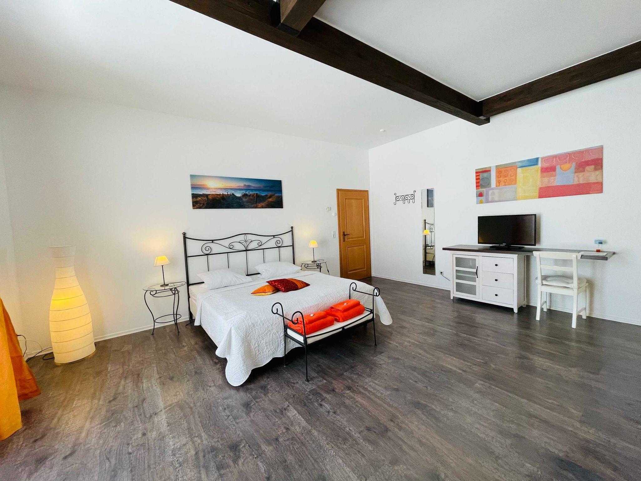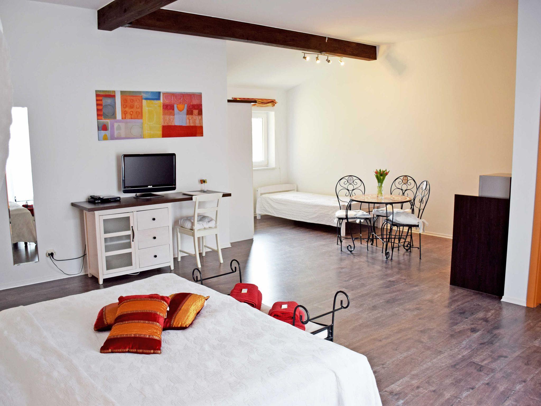 Es erwarten Sie sechs geräumige und stilvoll eingerichtete Appartements für je zwei Personen (Apartment 6 für 3 Personen).