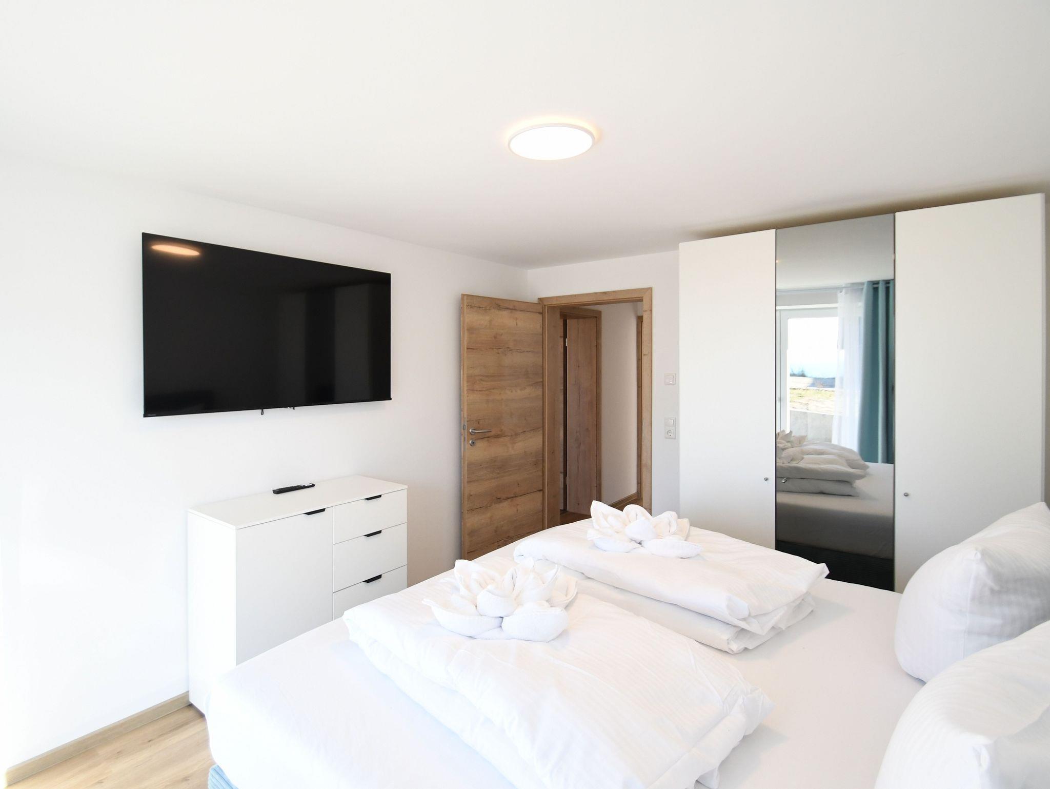 Die Schlafmöglichkeiten befinden sich im Schlafzimmer auf eine Doppelbett sowie einem Beistellbett. Desweiteren auf einer Ausziehcouch im Wohnzimmer.
