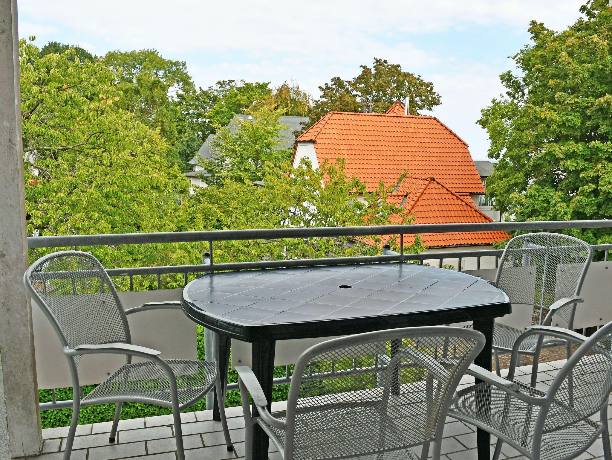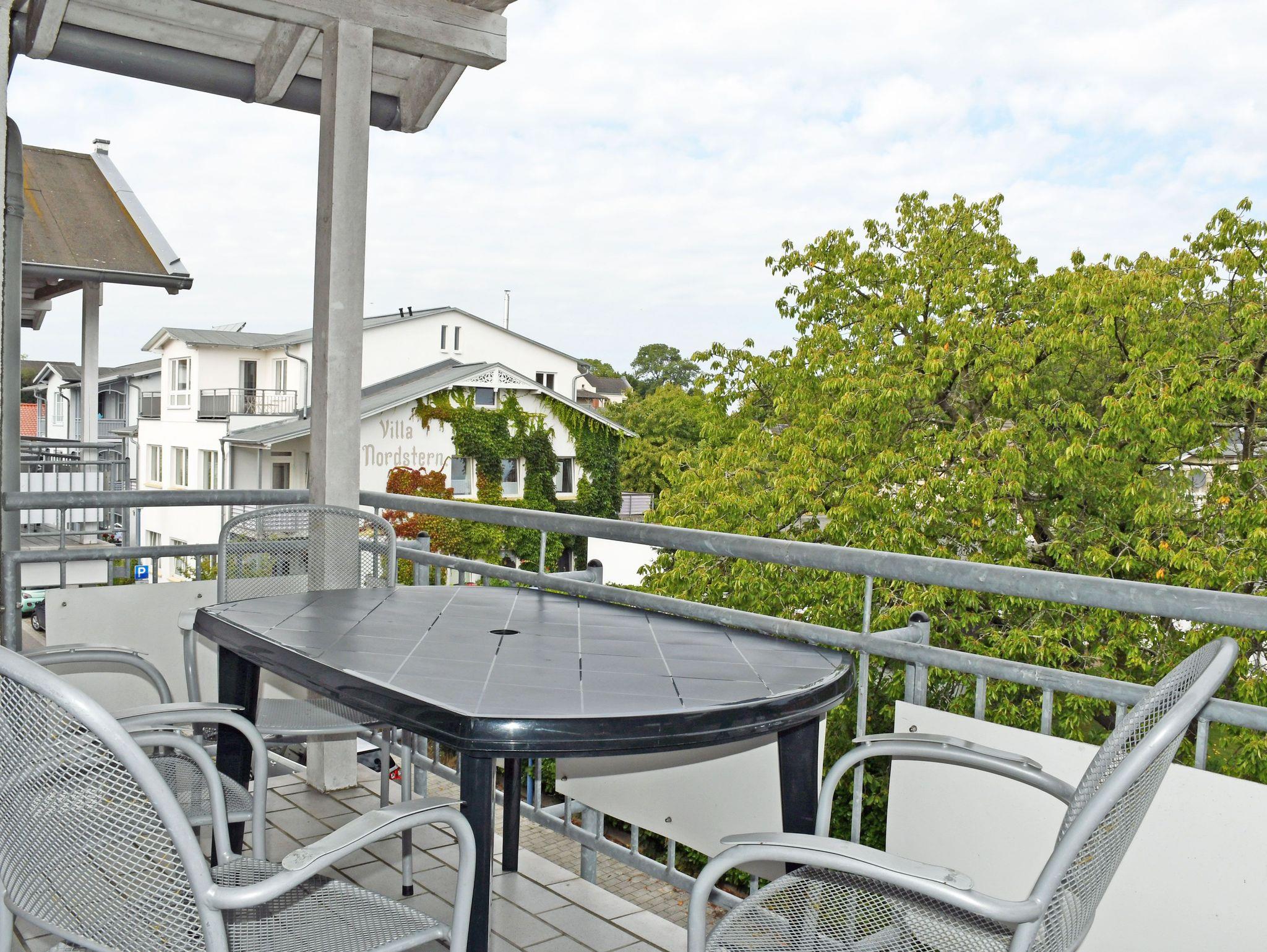 Der schöne Balkon mit Gartenmöbeln lädt zu gemütlichen Stunden ein. Hier können Sie die Abende bei einem Glas Wein ausklingen lassen und jederzeit die gute Ostseeluft und Sonne auf Rügen genießen.