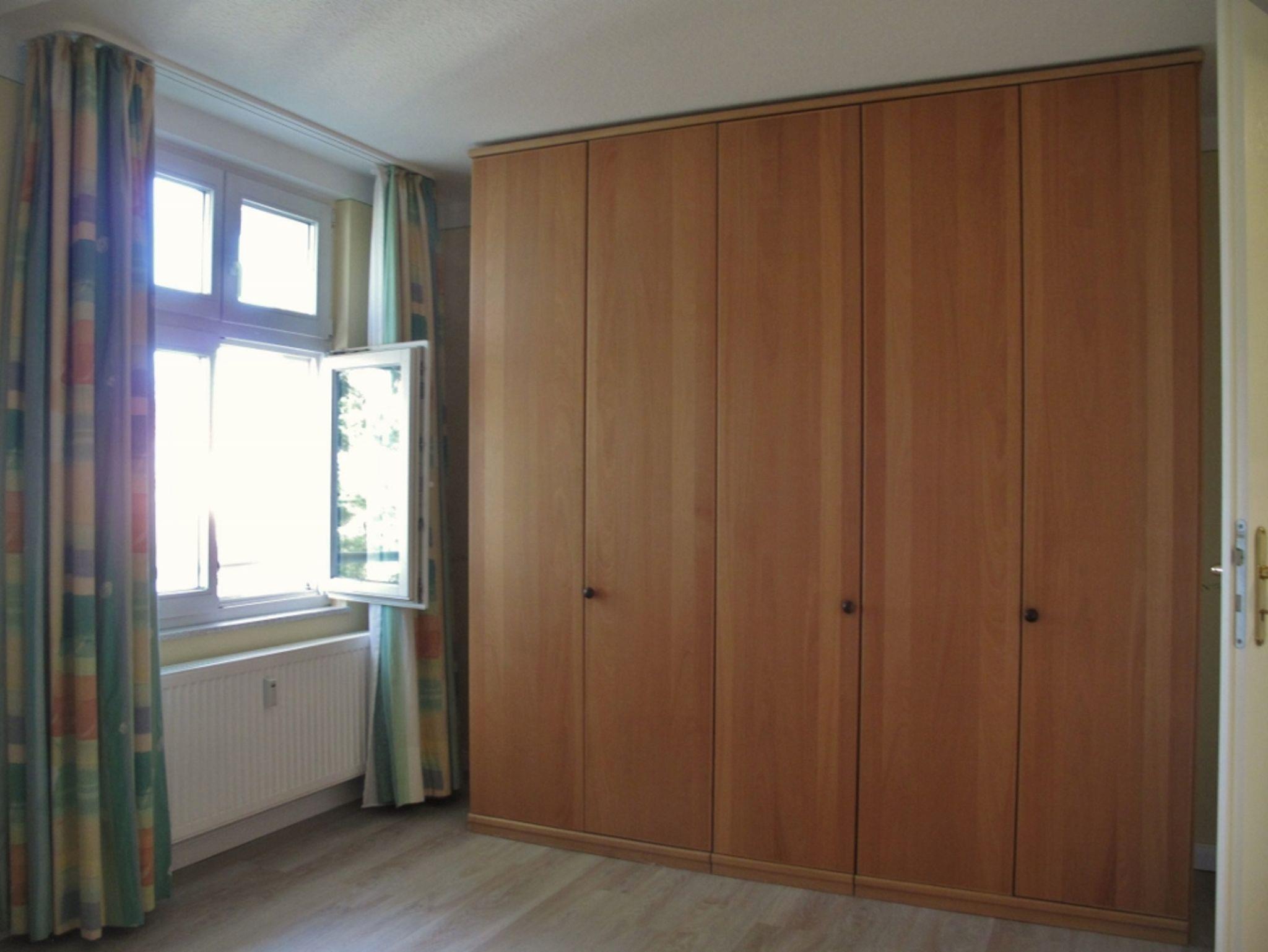 * das separate Schlafzimmer mit geräumigen Kleiderschrank und großem Doppelbett mit verstellbaren Lattenrosten.
