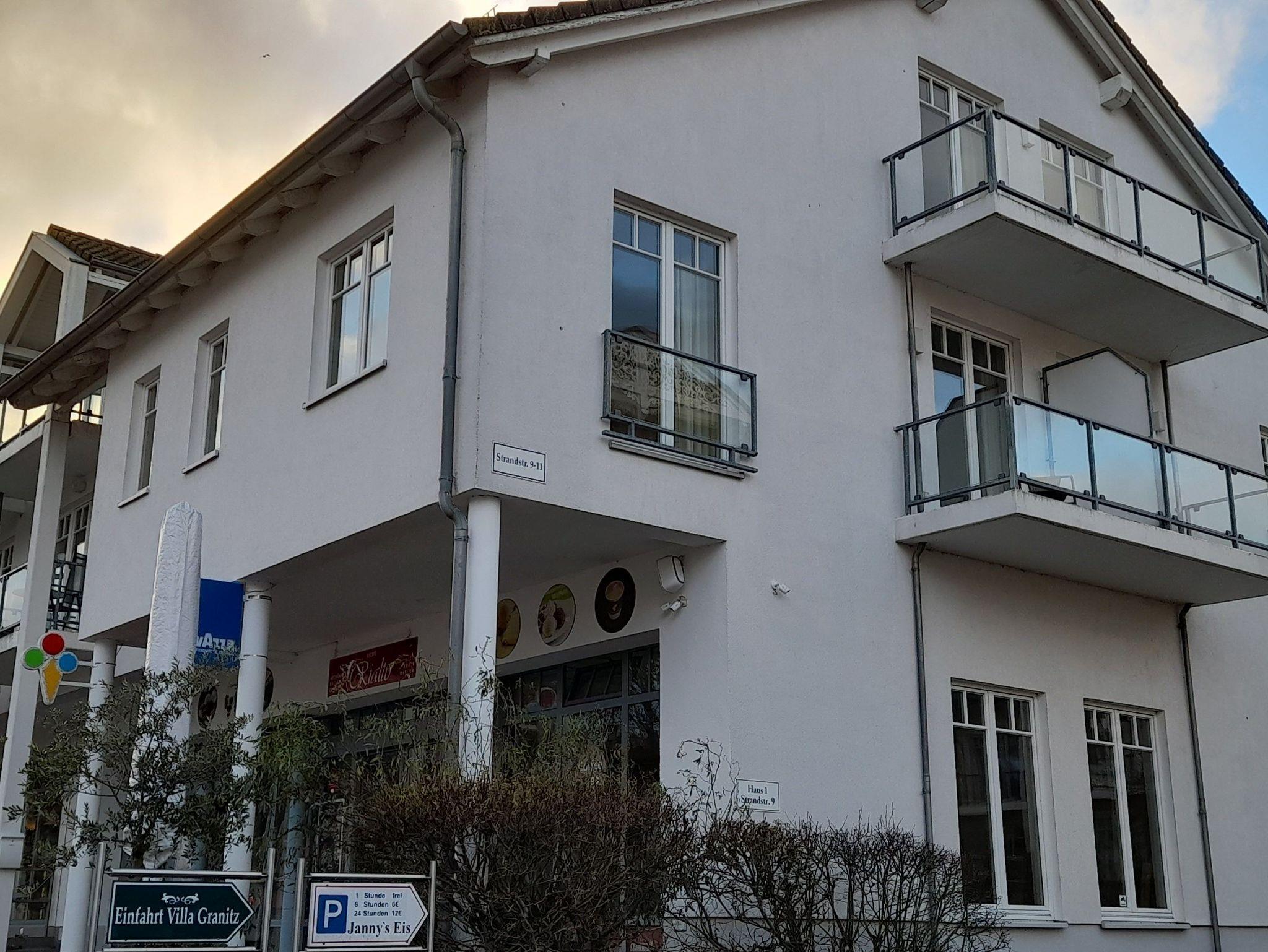 Die Appartementanlage Granitz besteht aus verschiedenen Gebäuden und liegt ruhig in Top-Lage zum Nordstrand und zur Waldpromenade, am Anfang der Strandstraße in Göhren. Eine Treppe im Garten führt vom Grundstück direkt zum Strandabgang. Erste Reihe zum Strand und zur Waldpromenade.