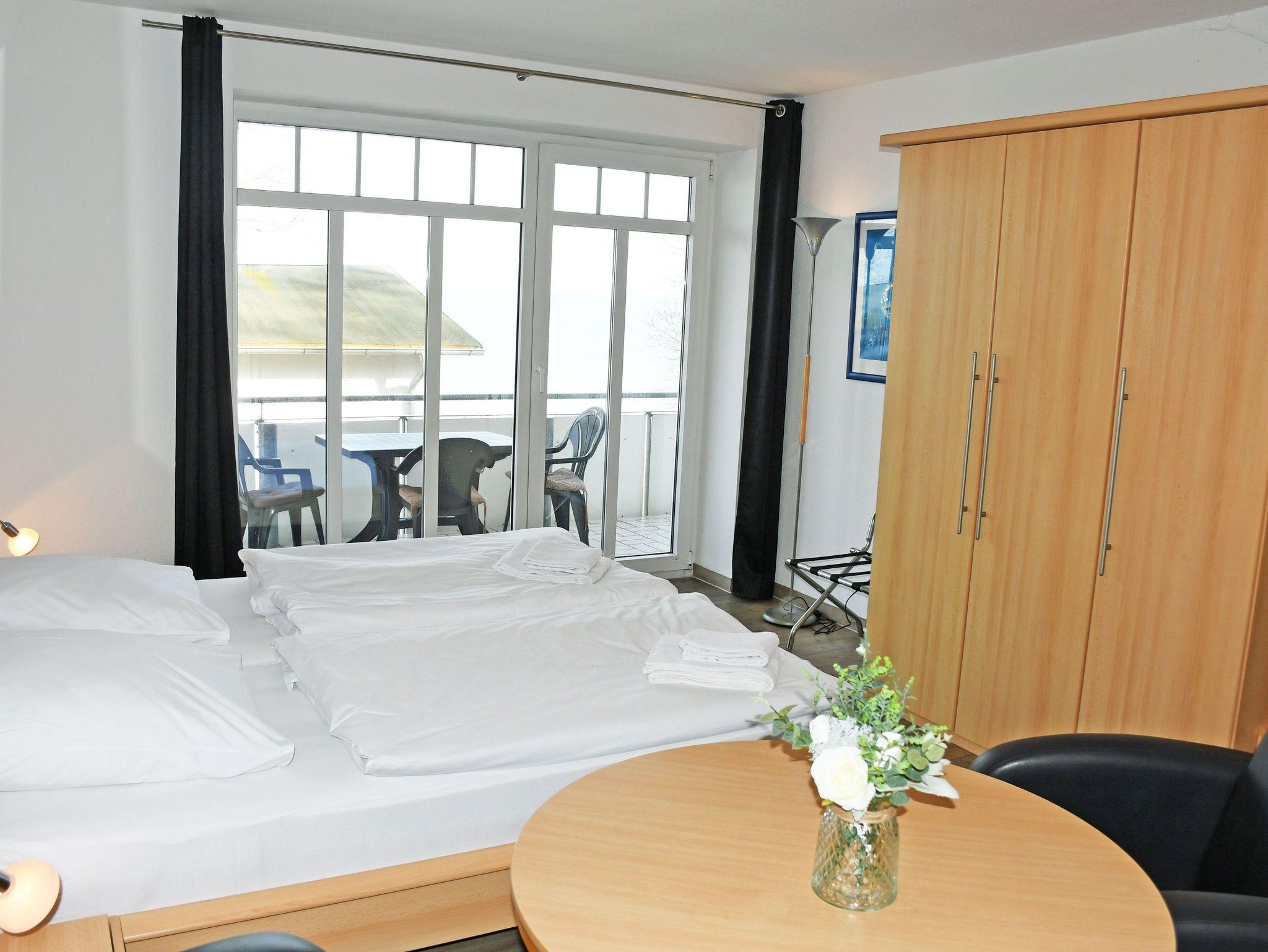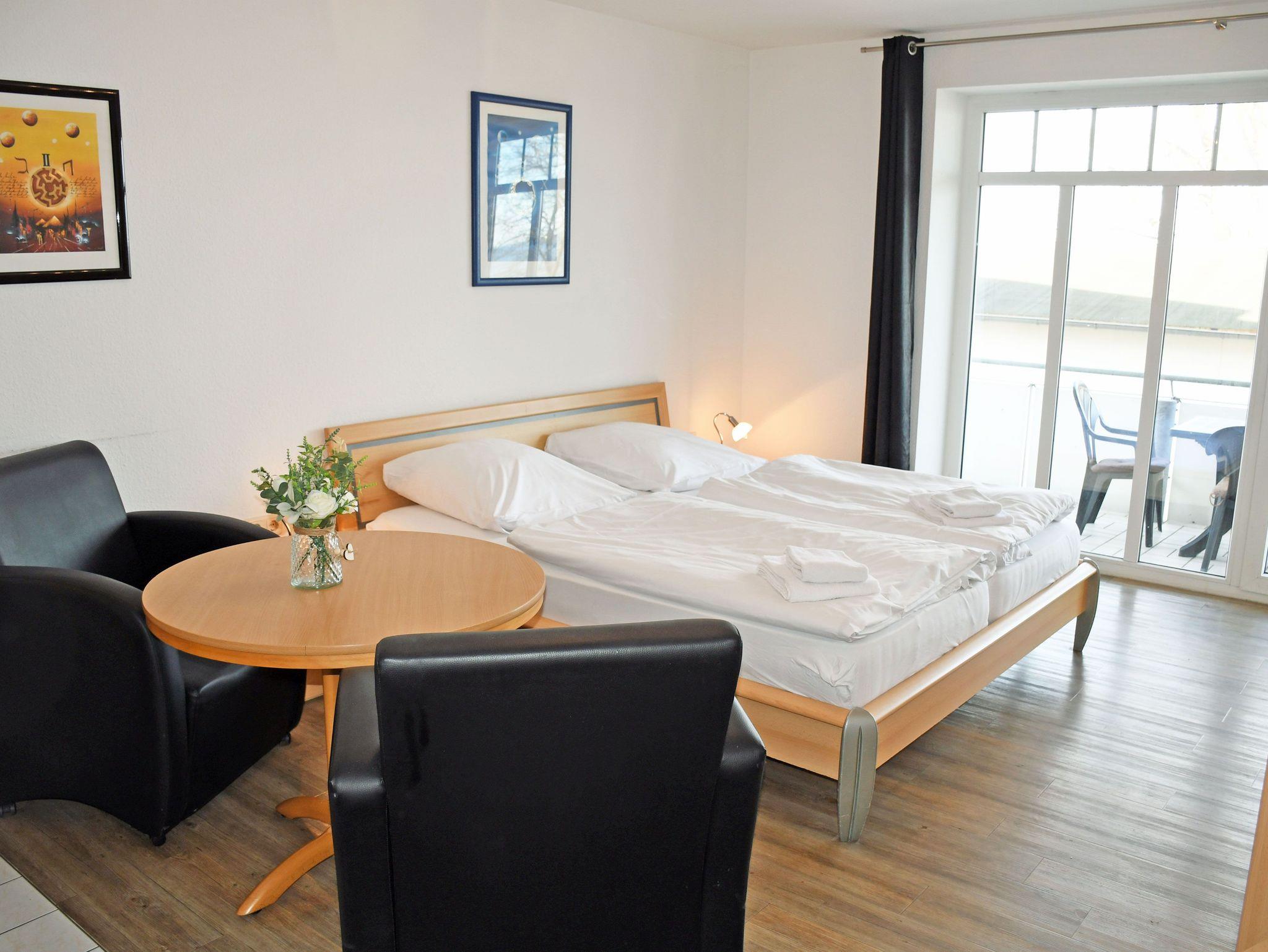 Modern eingerichtete 1-Raum-Ferienwohnung mit Balkon, Strandnähe und teils Meerblick in Göhren.