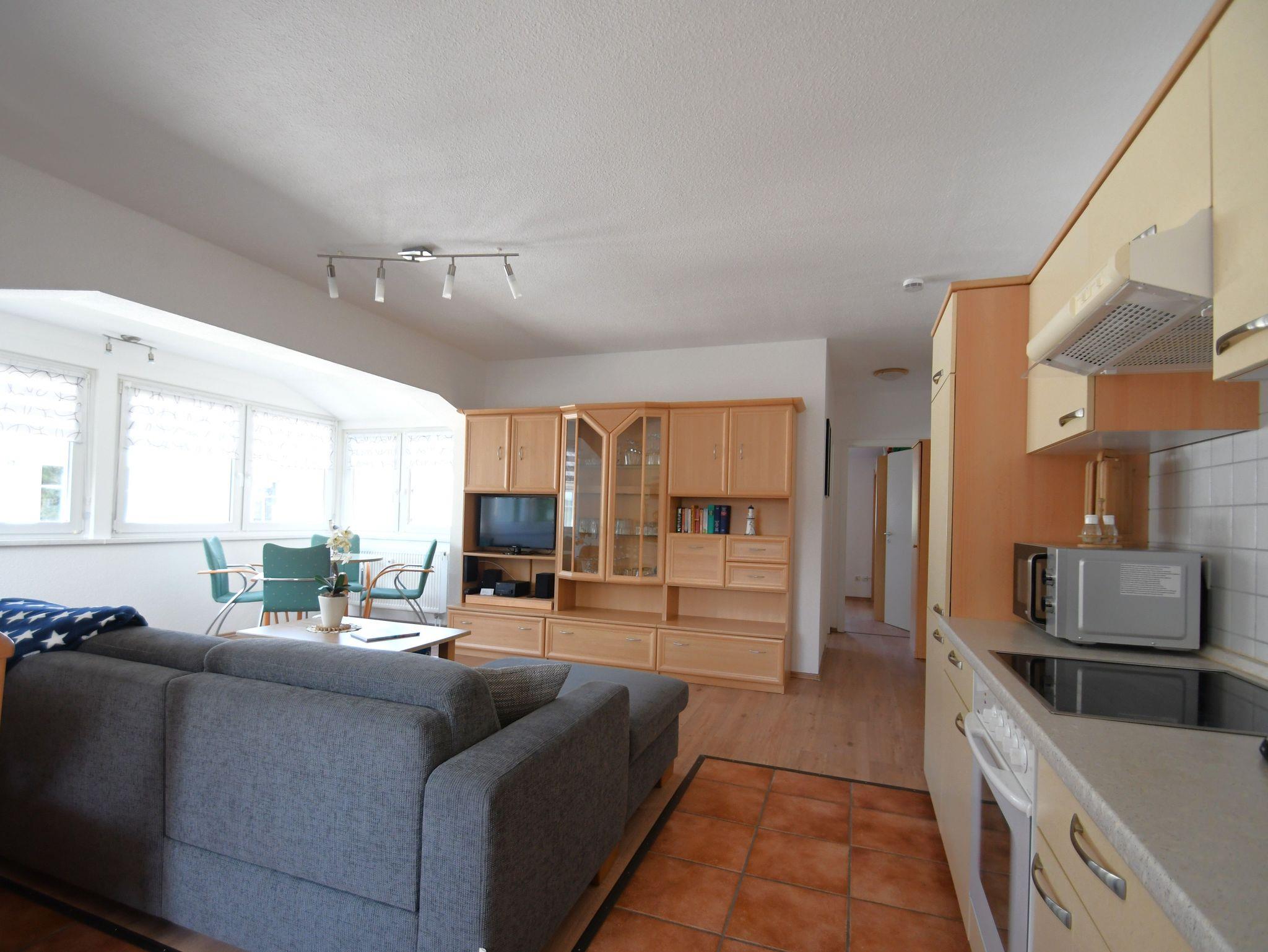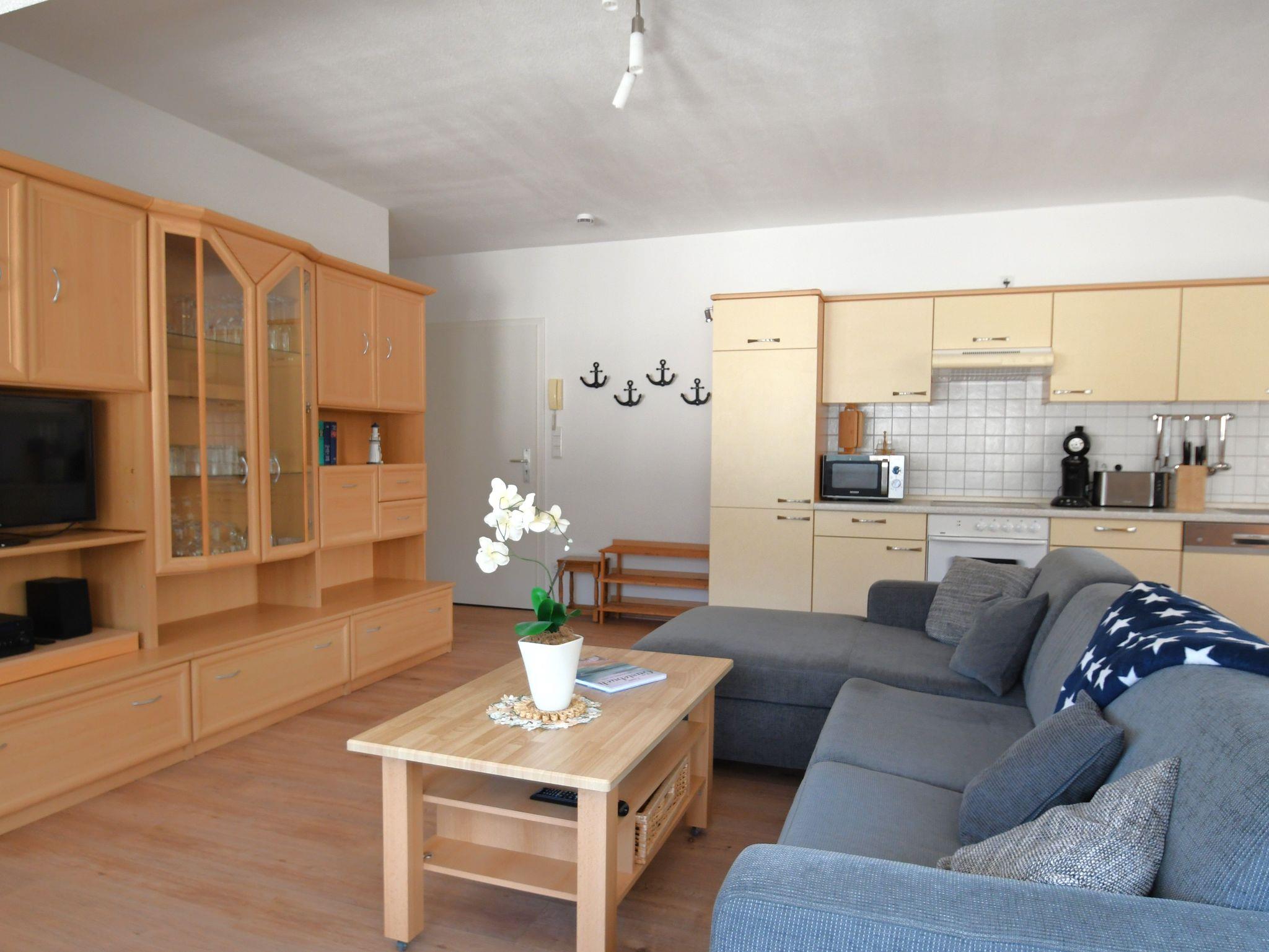 Diese helle und freundliche 2-Zimmer-Ferienwohnung bietet auf ca. 50 m² Komfort für 2 bis 4 Personen. Ideal gelegen im 1. Obergeschoss, besticht sie durch einen offenen, kombinierten Wohn-, Koch- und Essbereich.
