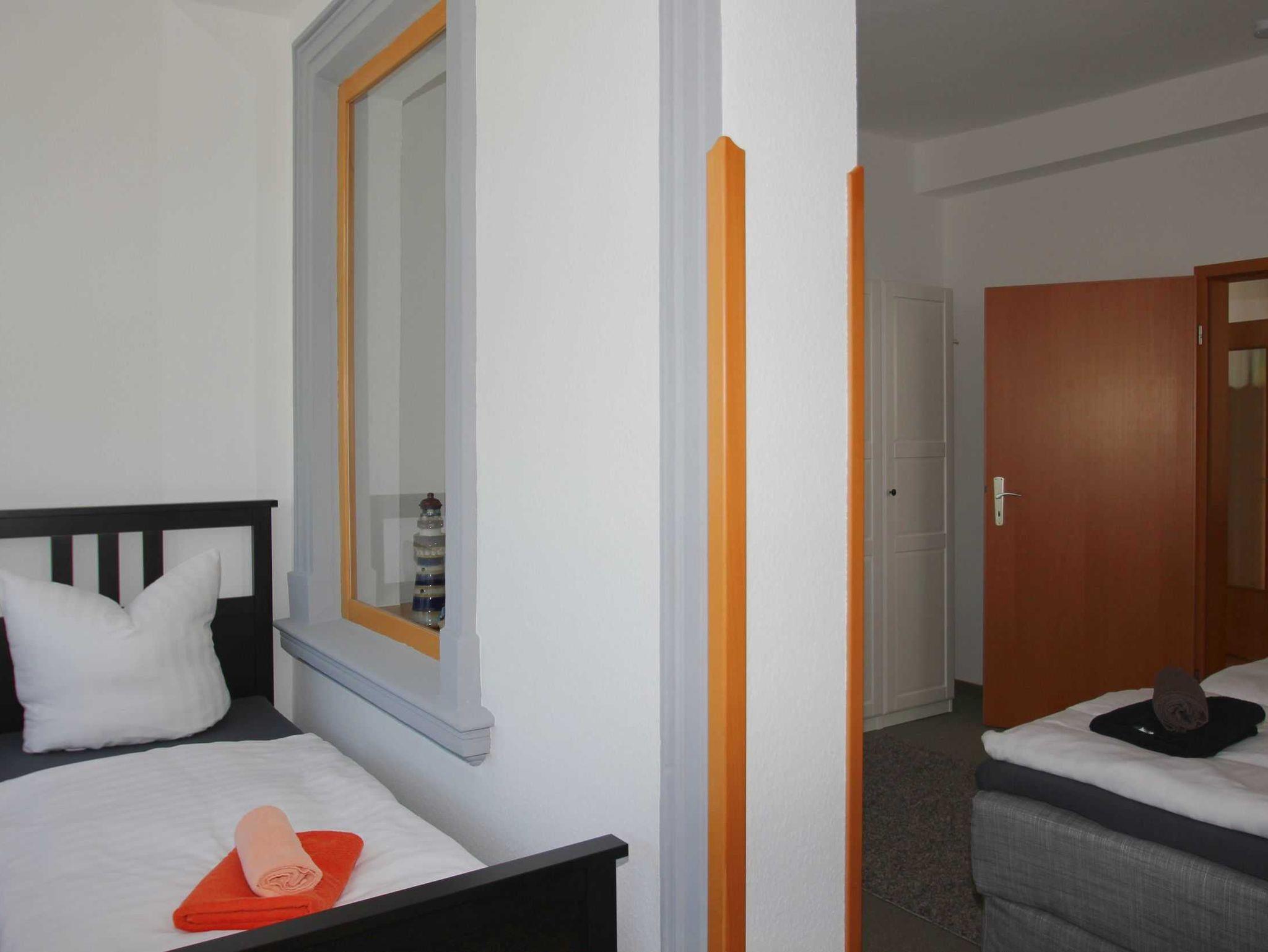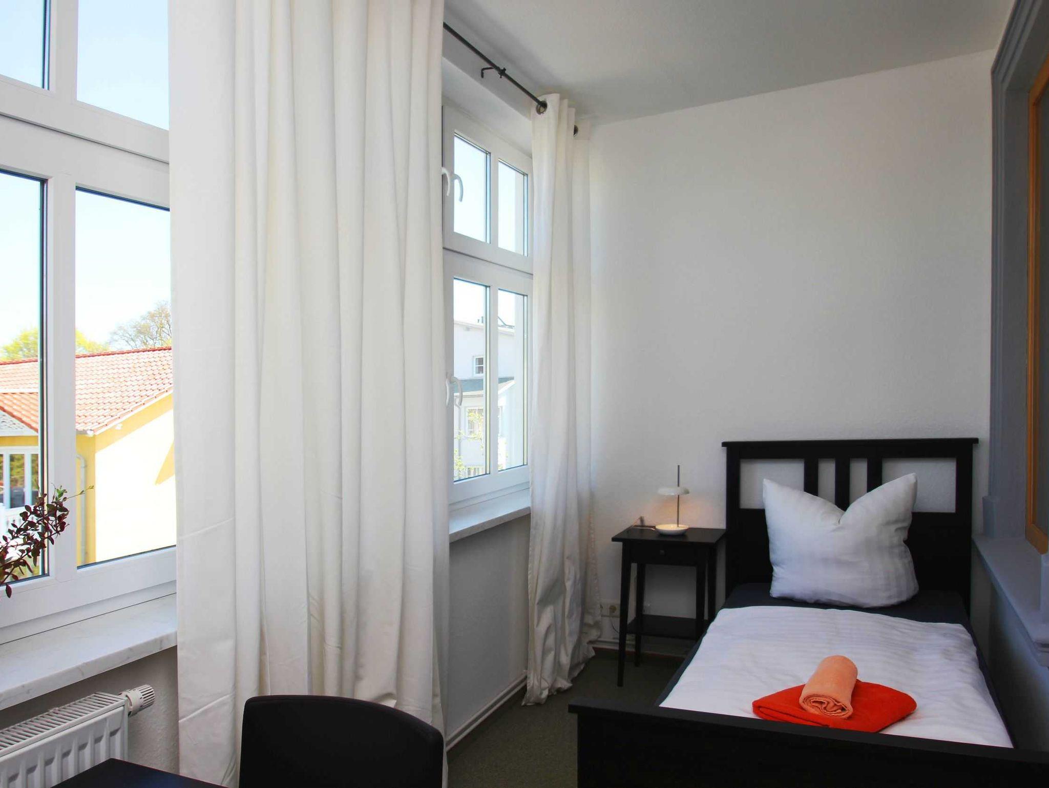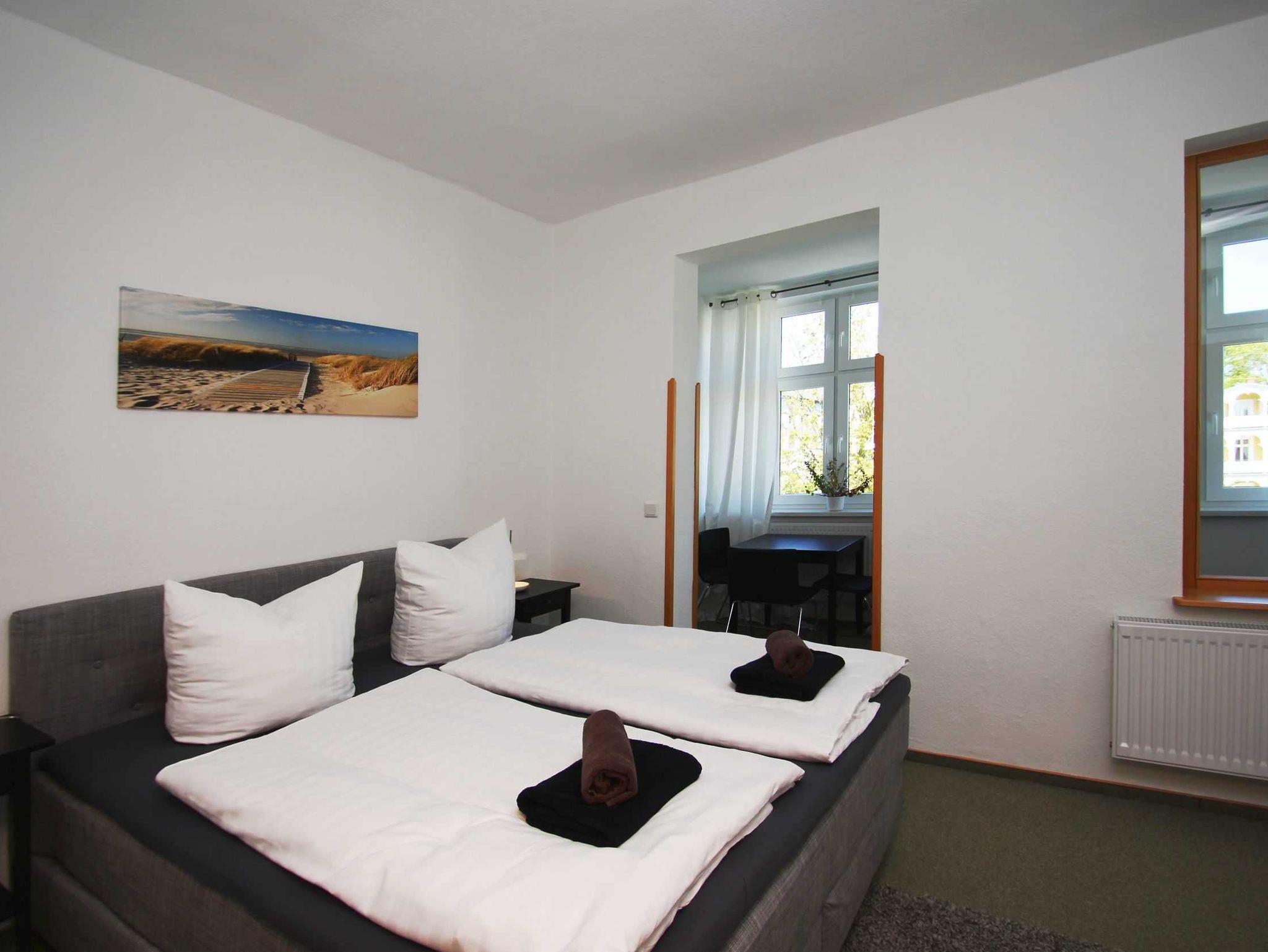 Die große 3-Raum Ferienwohnung in der Villa Elise bietet auf ca. 88 m² ausreichend Platz für 6 Gäste. Durch ihre 2 Schlafzimmer mit jeweils einem Boxspringbett und einem Einzelbett ist die Wohnung auch ideal für 2 Familien geeignet.