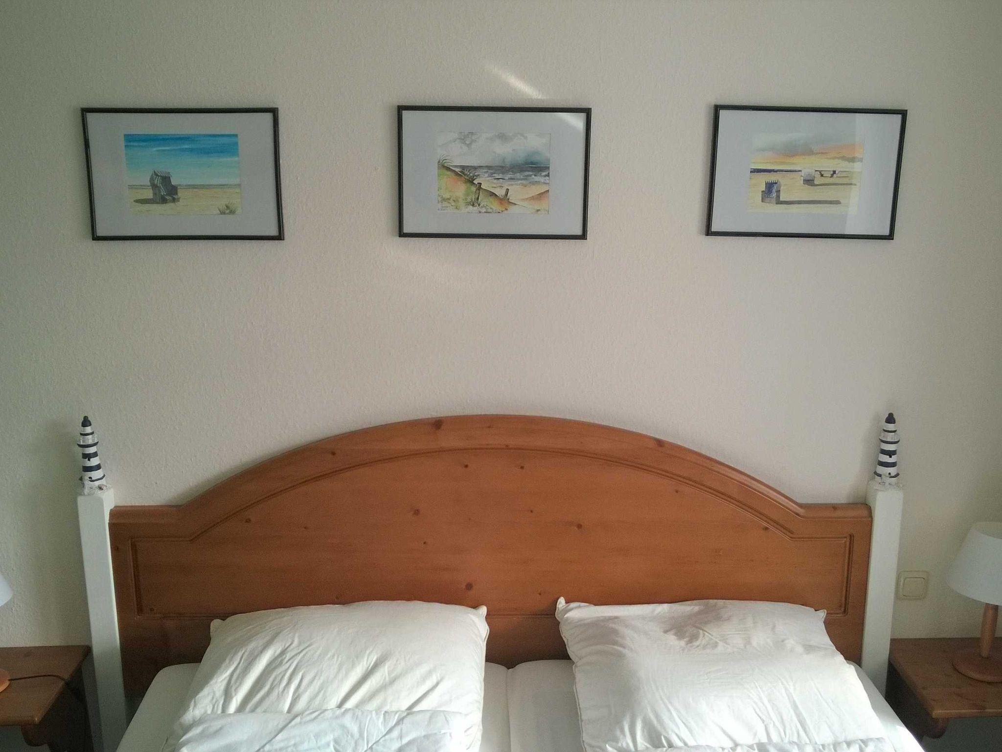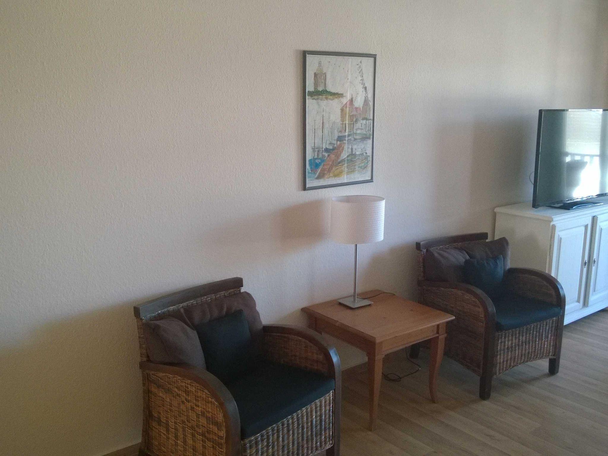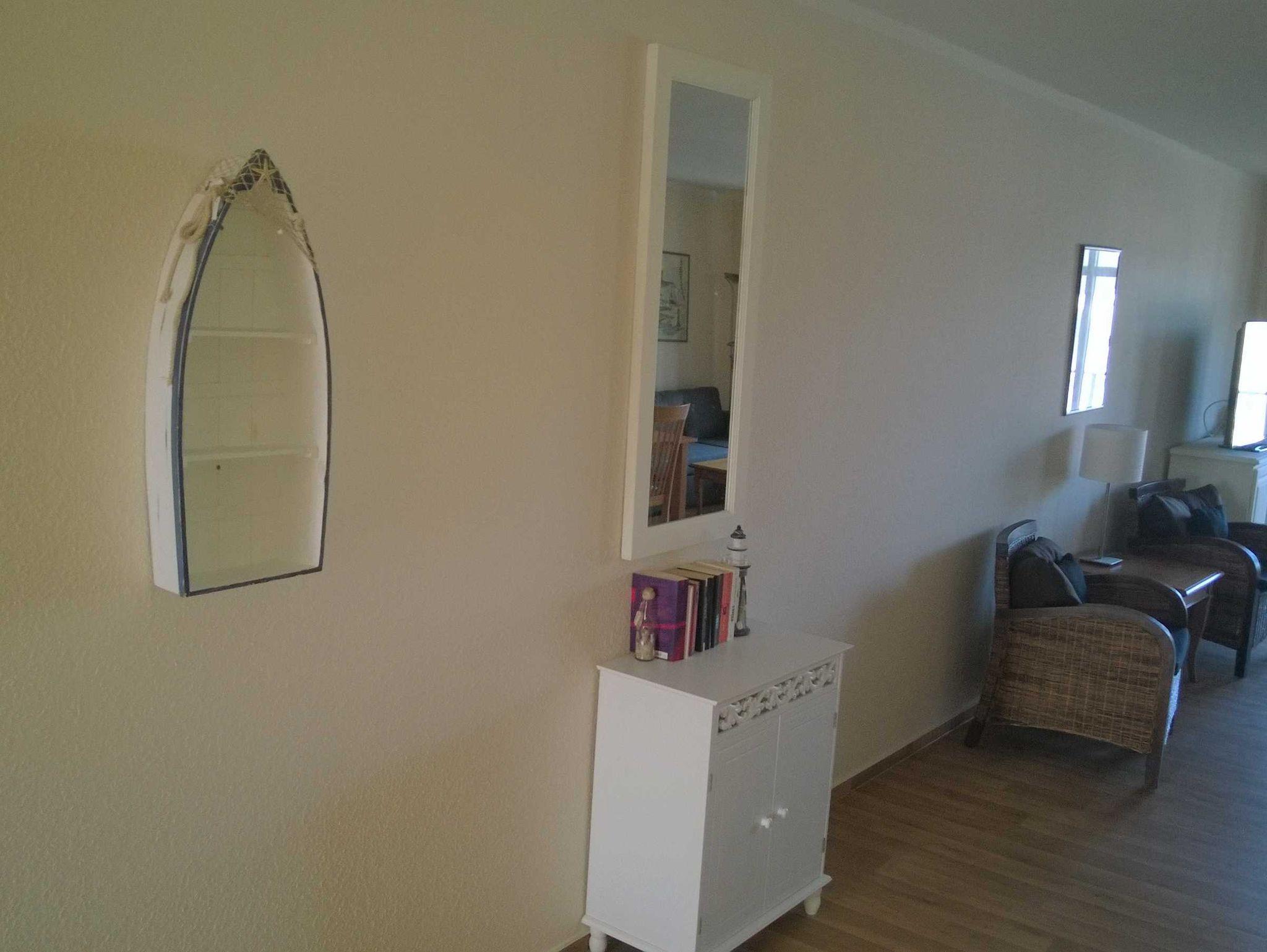 Auf einer Grundfläche von ca. 65 qm können sich vier Erwachsene bequem aufhalten und sich wohlfühlen. Neben dem großen Wohnzimmer mit Essbereich gibt es ein Schlafzimmer mit Doppelbett, sowie ein Bad und eine umfangreich ausgestattete offene Küche. Im Wohnzimmer lädt eine gemütliche Sofalandschaft, die mit wenigen Handgriffen zu einer Schlafmöglichkeit für 2 Personen wird, zum Erholen nach einem langen Strandtag, einer Wanderung zu Fuß oder per Rad oder einem anderen Ausflug ein. Zur technischen Ausstattung gehört ein 50-Zoll Flachbildfernseher, CD/DVD-Player und eine Musikanlage. Ein W-LAN-Zugang zur kostenlosen Nutzung ist selbstverständlich vorhanden. Der grosse Balkon lädt zum Verweilen zwischen den Ausflügen oder einem Strandtag ein. Er ist auch gross genug um dort z.B. zu Frühstücken. In der komplett ausgestatteten offenen Küche finden Sie ein Cerankochfeld, einen Backofen, einen Geschirrspüler, Kühlschrank mit Eisfach, Toaster, Kaffeemaschine, Wasserkocher und umfangfreiche Küchenutensilien. Das Schlafzimmer mit Doppelbett (2x 0,90 m x 2,00m) ist zusätzlich mit einem 32 Zoll Flachbildfernseher ausgestattet. Nachtischablagen und Kleiderschränke sind selbstverständlich. Wohn- und Schlafzimmer sind mit einem Laminat-Fußboden ausgelegt. Die Ausstattung des Bades besteht aus einer Duschkabine, Waschbecken und WC. Mitgebrachte Fahrräder können im Keller abgestellt werden.