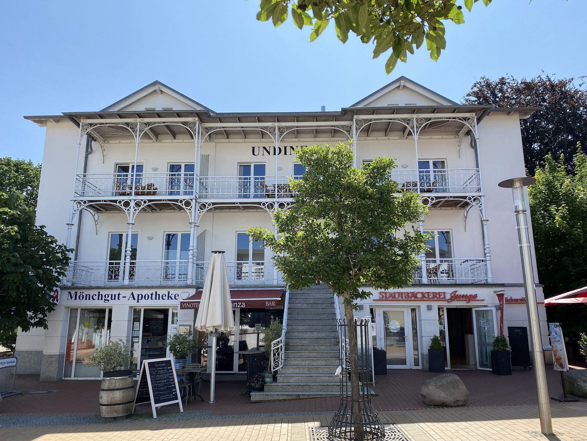 Das Haus Undine ist ein Appartementhaus mit historischer Bäderstilfassade. Es befindet sich im Ortskern von Göhren und bietet einen idealen Ausgangspunkt für Ausflugsziele jeder Art. Von hier aus sind es nur drei Gehminuten über die Flaniermeile bis zum feinen Sandstrand. Eine Apotheke und eine allgemeinmedizinische Arztpraxis für Ihr Wohlbefinden befindet sich im Haus. Eine kleine, aber feine Vinothek wartet auf Ihren Besuch. Die gemütlichen Wohnungen sind mit Fußbodenheizung ausgestattet und verfügen über einen eigenen Stellplatz am Haus. Ein Fahrradverleih befindet sich direkt nebenan.