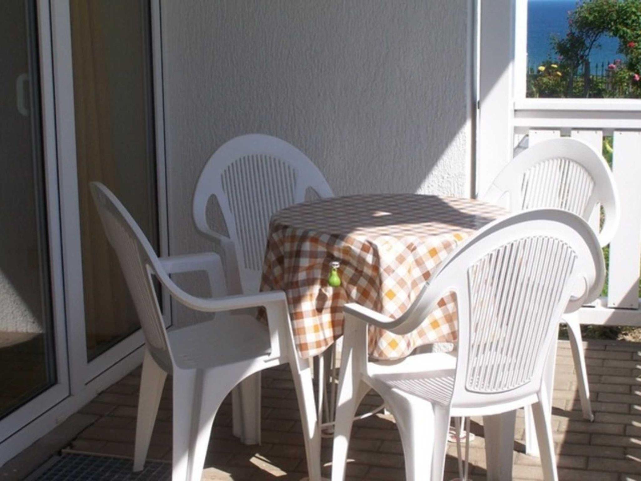 Der Blick von der Ferienwohnung auf die Ostsee und vorbei an Villa Hanni lässt einen verzaubern. Ebenerdiger Balkon lädt zum Frühstück bei Morgensonne und Blick zur Stubbenkammer ein.
