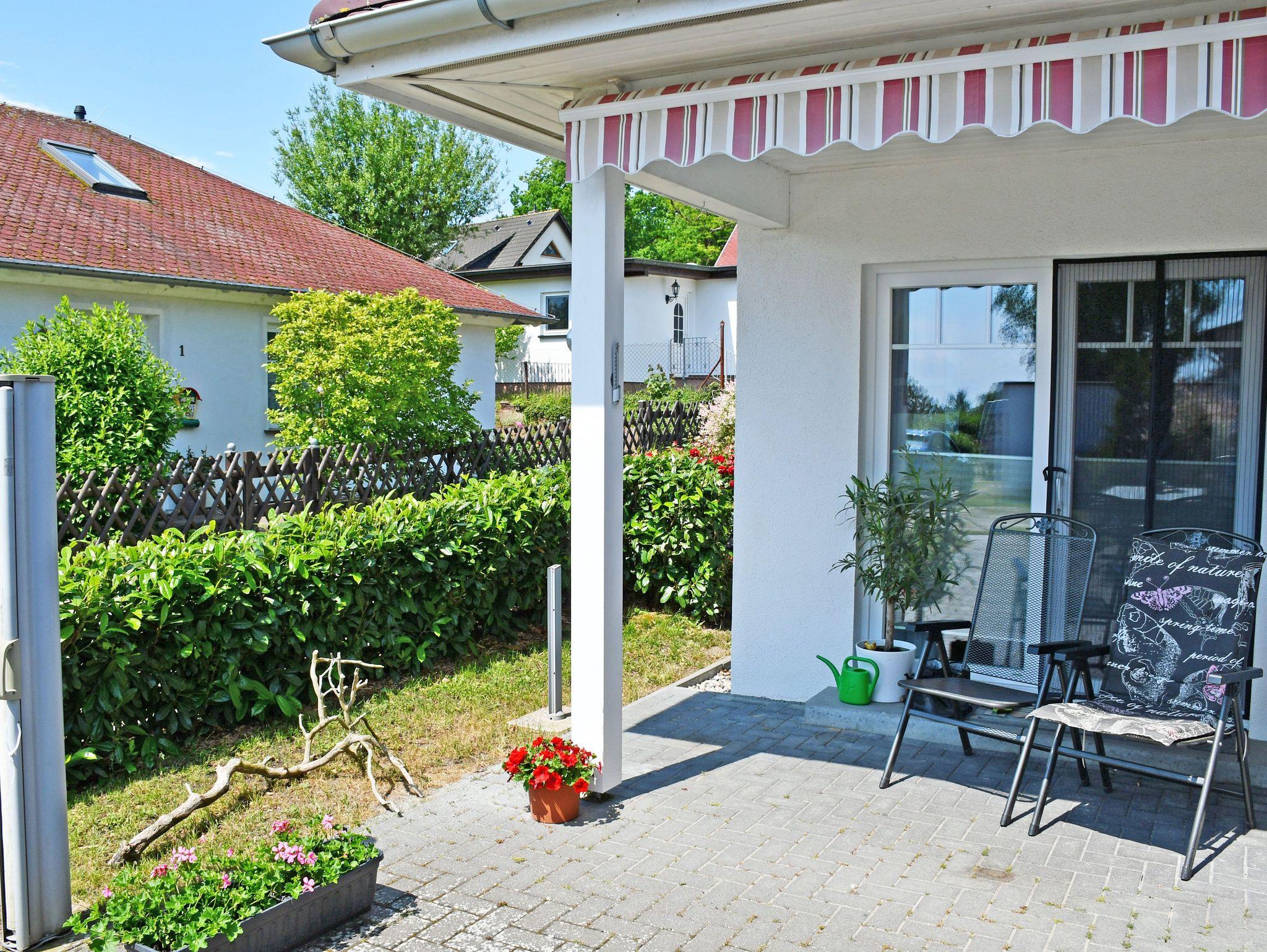 Zur Ferienwohnung gehört auch eine schöne Terrasse mit Gartenmöbeln. Da die Terasse nach Westen geht, haben Sie den ganzen Tag Sonne. Eine Markise spendet bei Bedarf Schatten.