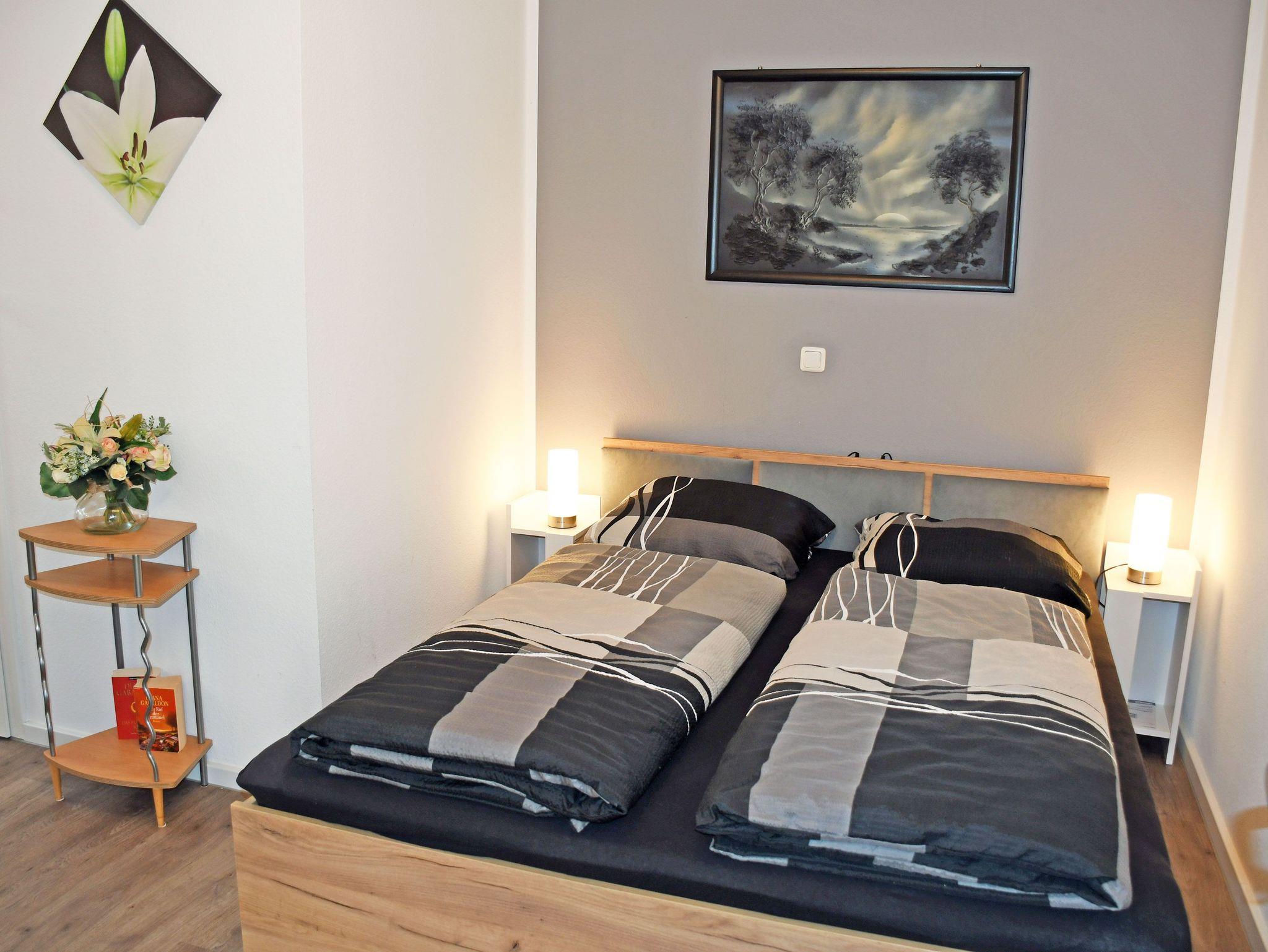 Im Schlafzimmer befinden sich ein bequemes Doppelbett (160mx200m, durchgehende Matratze) mit Nachttischen und Leselampe, ein Kleiderschrank sowie ein modernes Flachbild-TV-Gerät. Gegen Aufpreis liegen bei Ihrer Anreuse frische Handtücher bereit und die Betten sind bereits mit Bettwäsche bezogen, bitte mitbuchen.