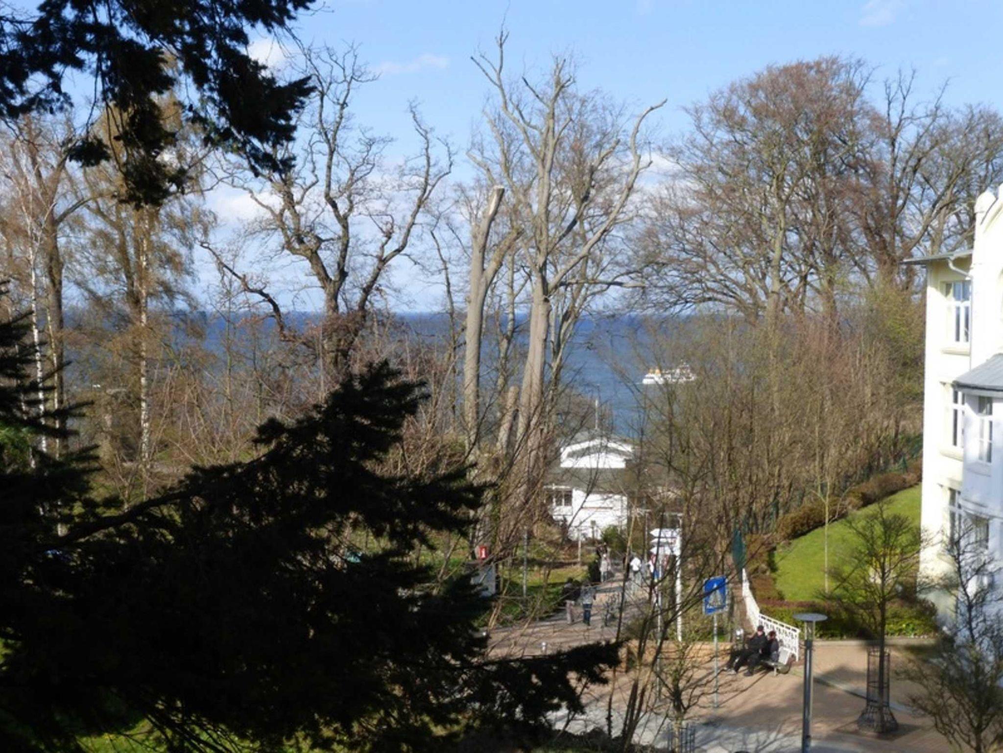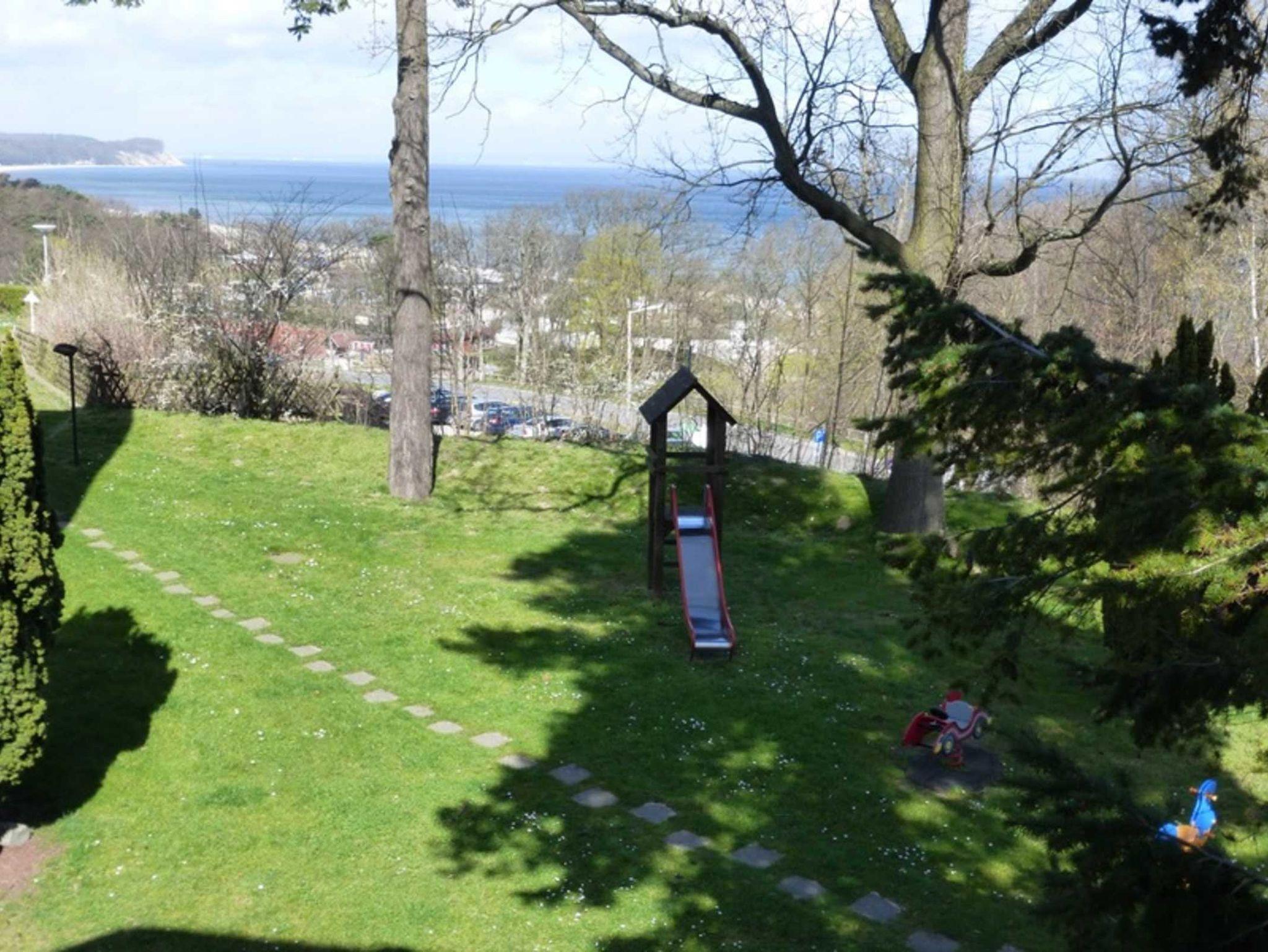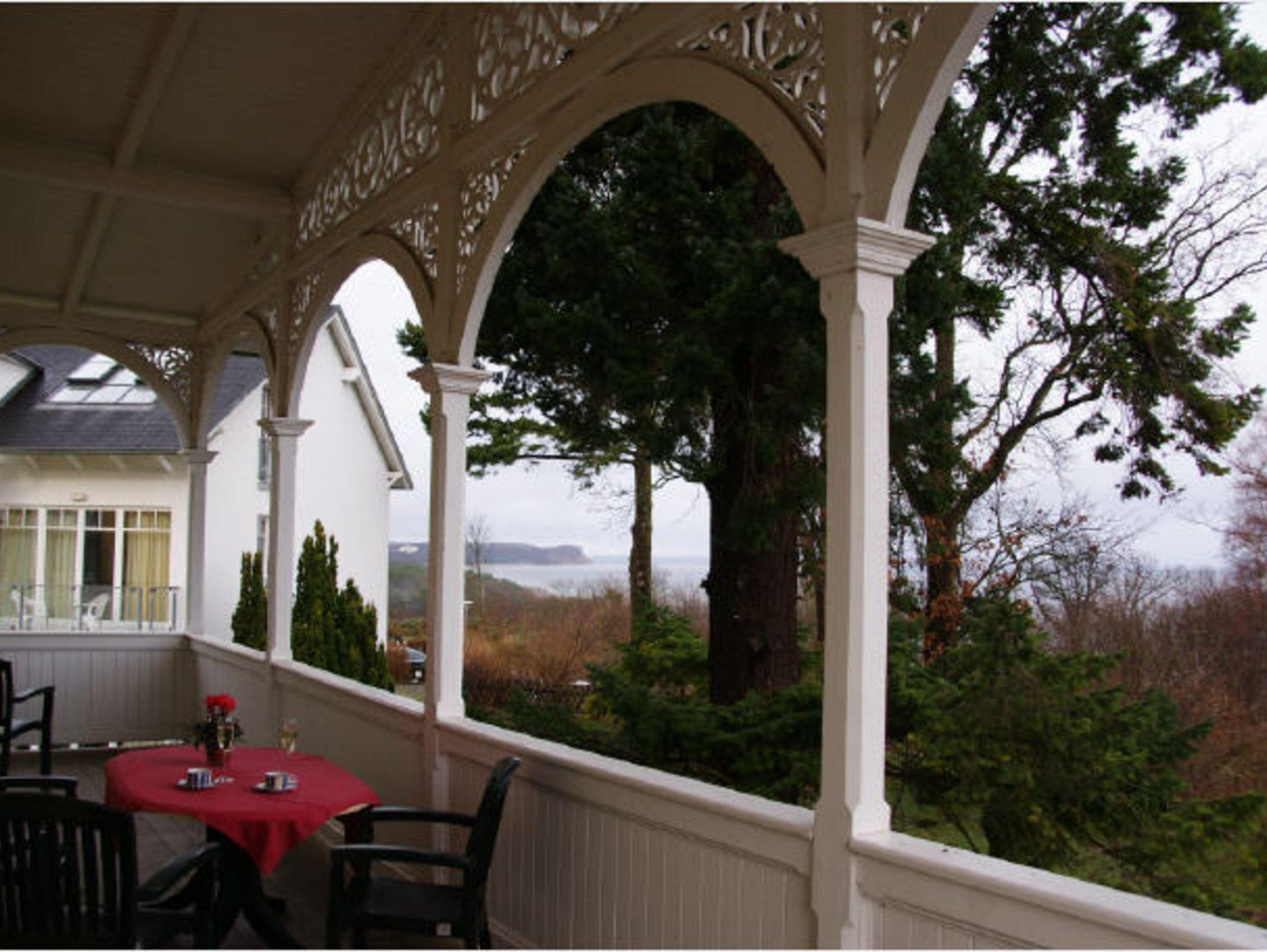 Vom riesigen Holzbalkon sowie der Wohnung aus, genießen Sie einen unvergesslichen Blick auf die angrenzende See bis hin zur Steilküste mit ihren Kreidefelsen und dem Garten.