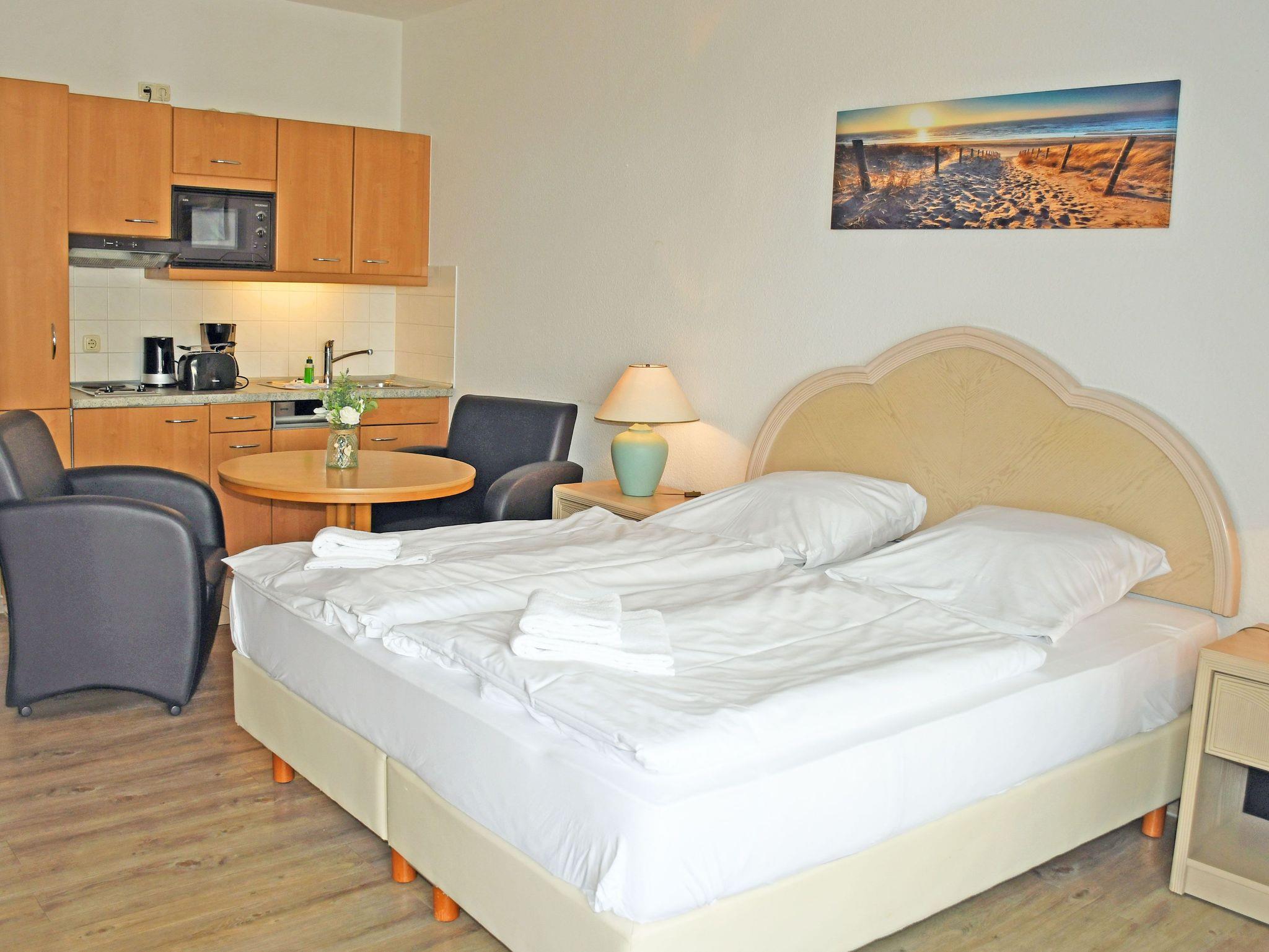 Gemütliches 1-Raum-Apartment mit Balkon, Seeblick und Strandnähe in Göhren, ideal für entspannte Ostseeurlaube.