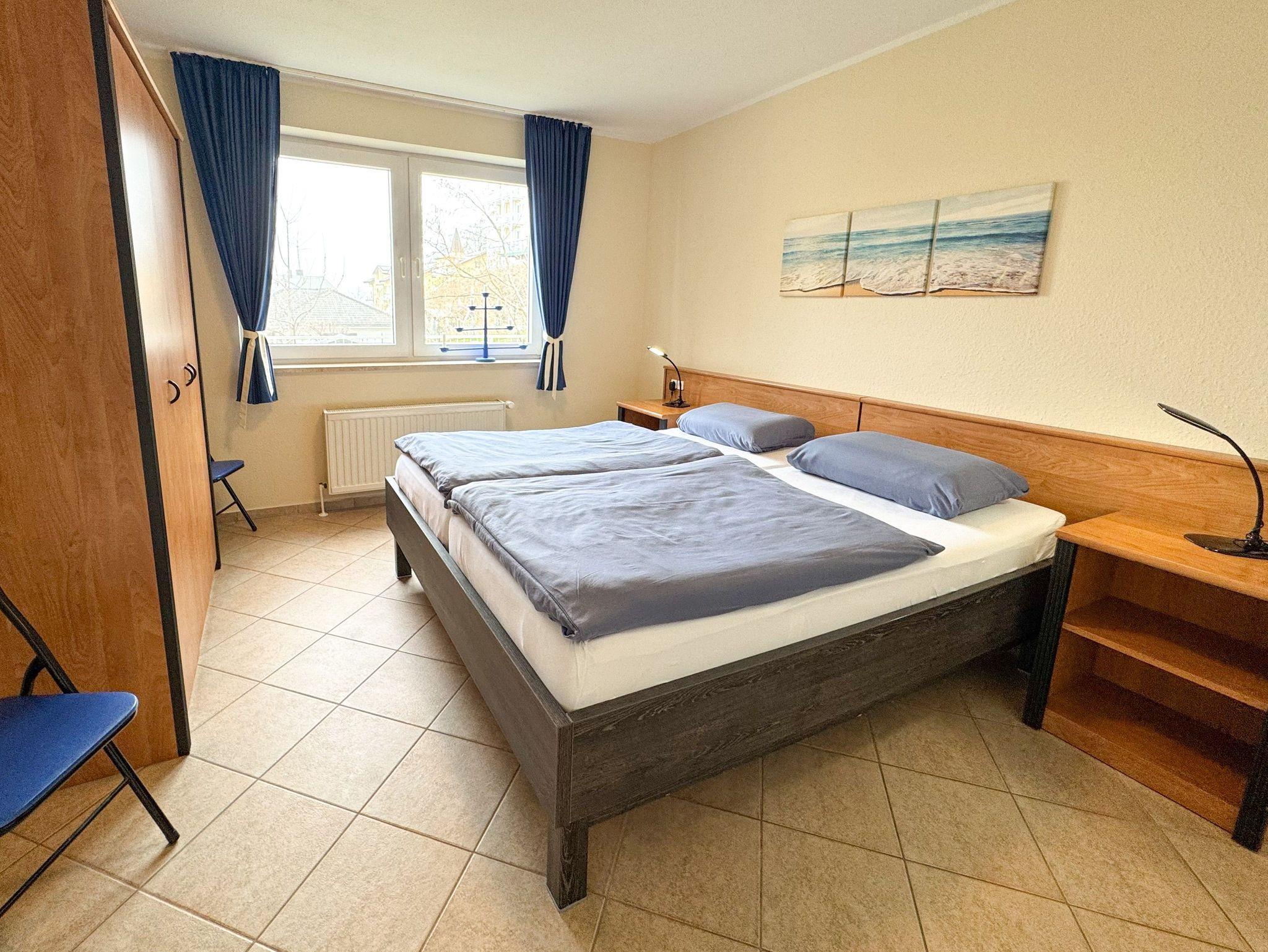 Aufgeteilt ist die Wohnung wie folgt: Schlafzimmer mit Doppelbett, Wohnzimmer mit gemütlicher Sitzecke inkl. Doppelbett-Schlafcouch und TV als auch kostenfreie Nutzung von WLAN. Das WLAN ist eine zusätzlich angebotene, kostenfreie Leistung und berechtigt nicht zur Mietminderung bei Einschränkung der Funktion. (Touristenzugang - nicht geeignet zum Herunter- bzw. Hochladen von großen Datenmengen)
