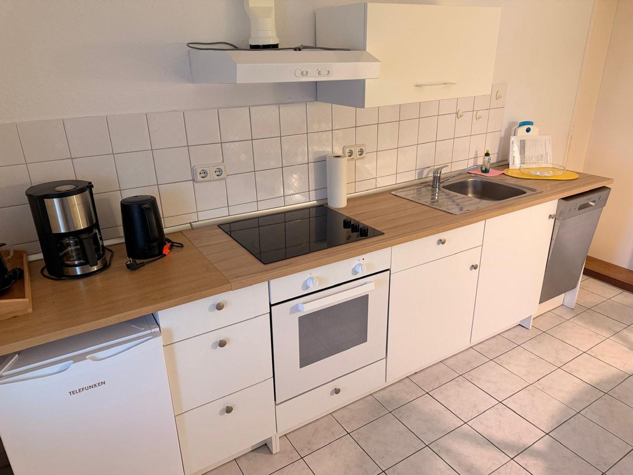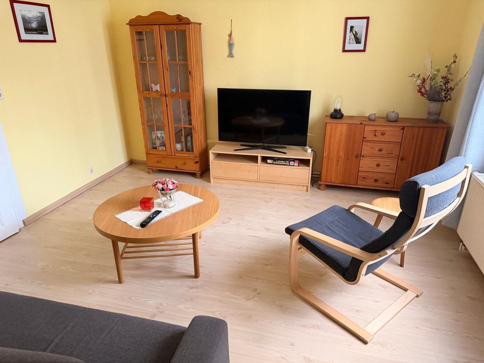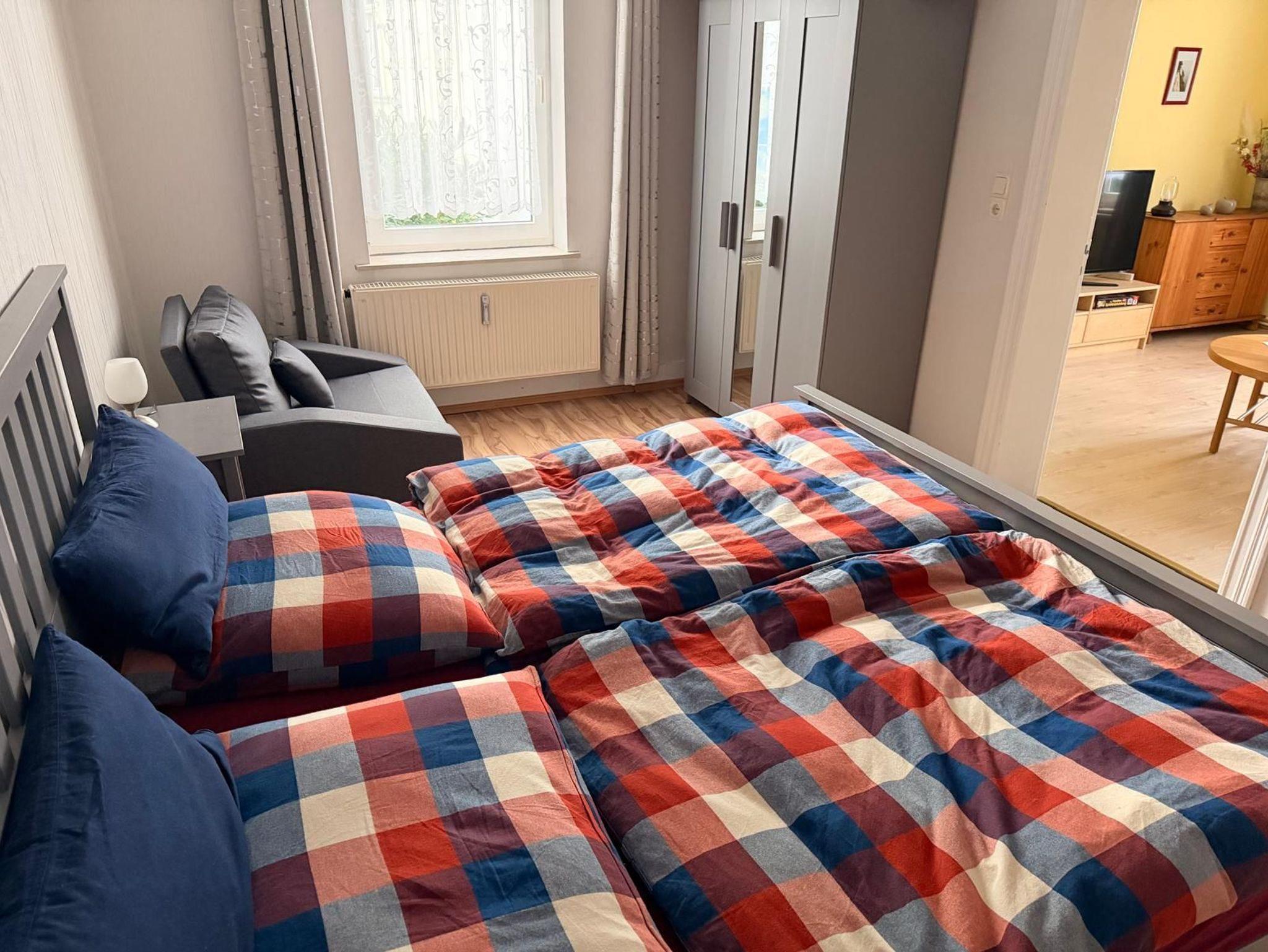 Die 2 Raum-Ferienwohnung befindet sich im Erdgeschoß und besteht aus einem Schlafzimmer mit Doppelbett und Aufbettung, einem Wohnzimmer mit Sitzecke und TV (auch hier ist eine Aufbettung möglich), abgeschlossener - komplett eingerichteter Küche ( Kaffeemaschine, Wasserkocher, Toaster, Geschirrspüler und Herd mit Backofen und Ceranfeld) und Dusche/WC. Im Garten gibt es Sitz- und Grillmöglichkeit.